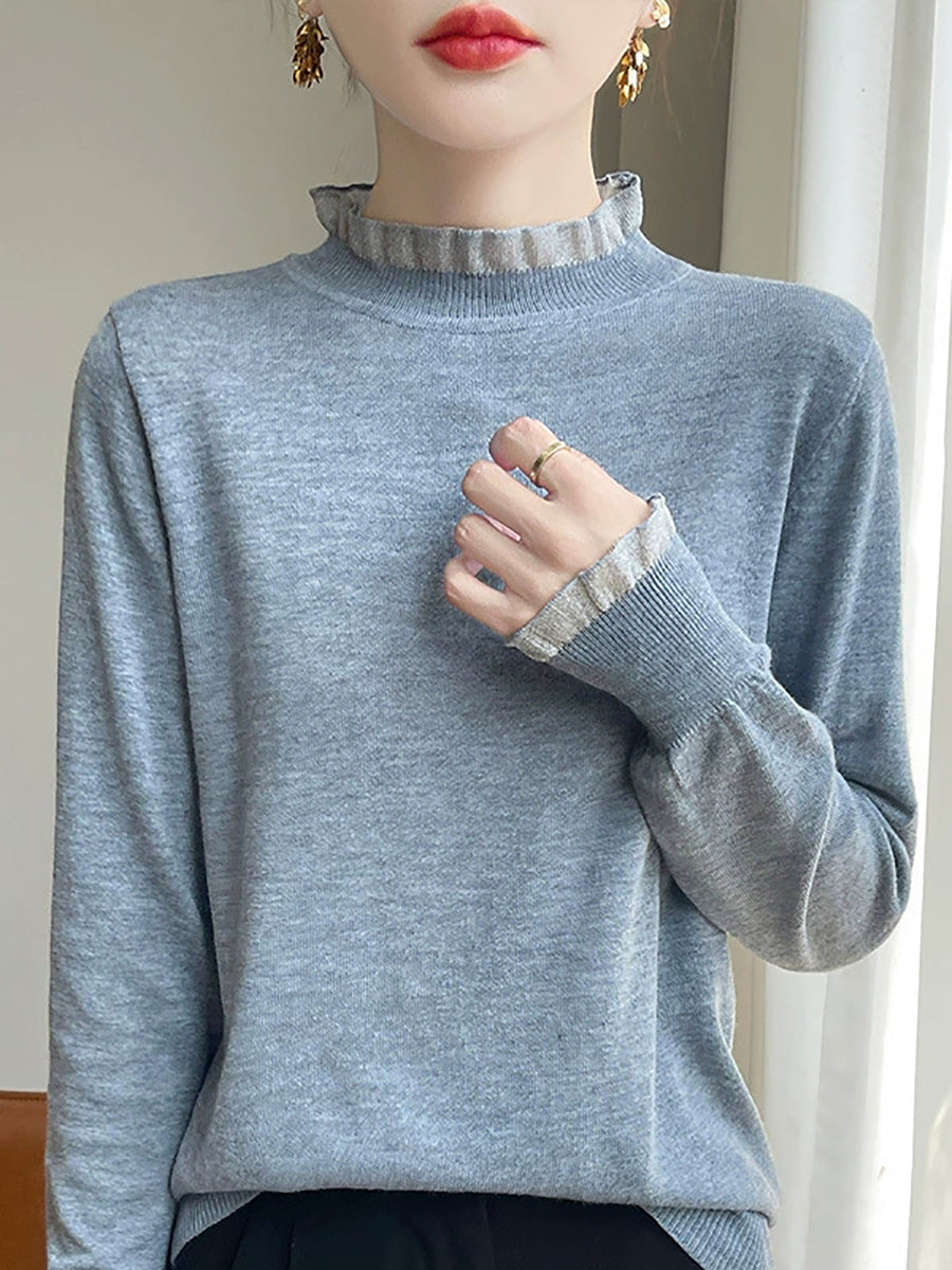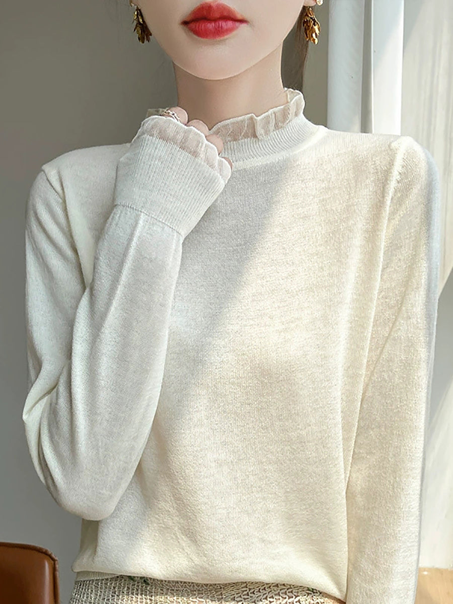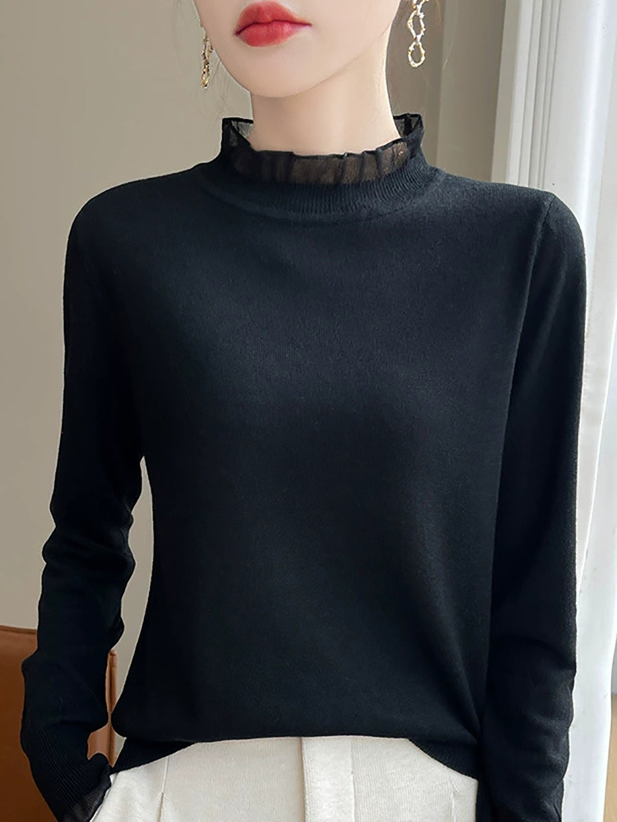 Ženski zimski umjetnički pulover s čipkastim ovratnikom u čistoj boji