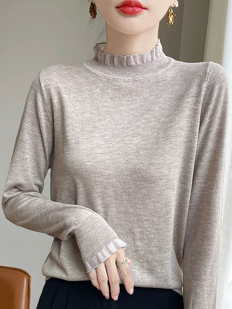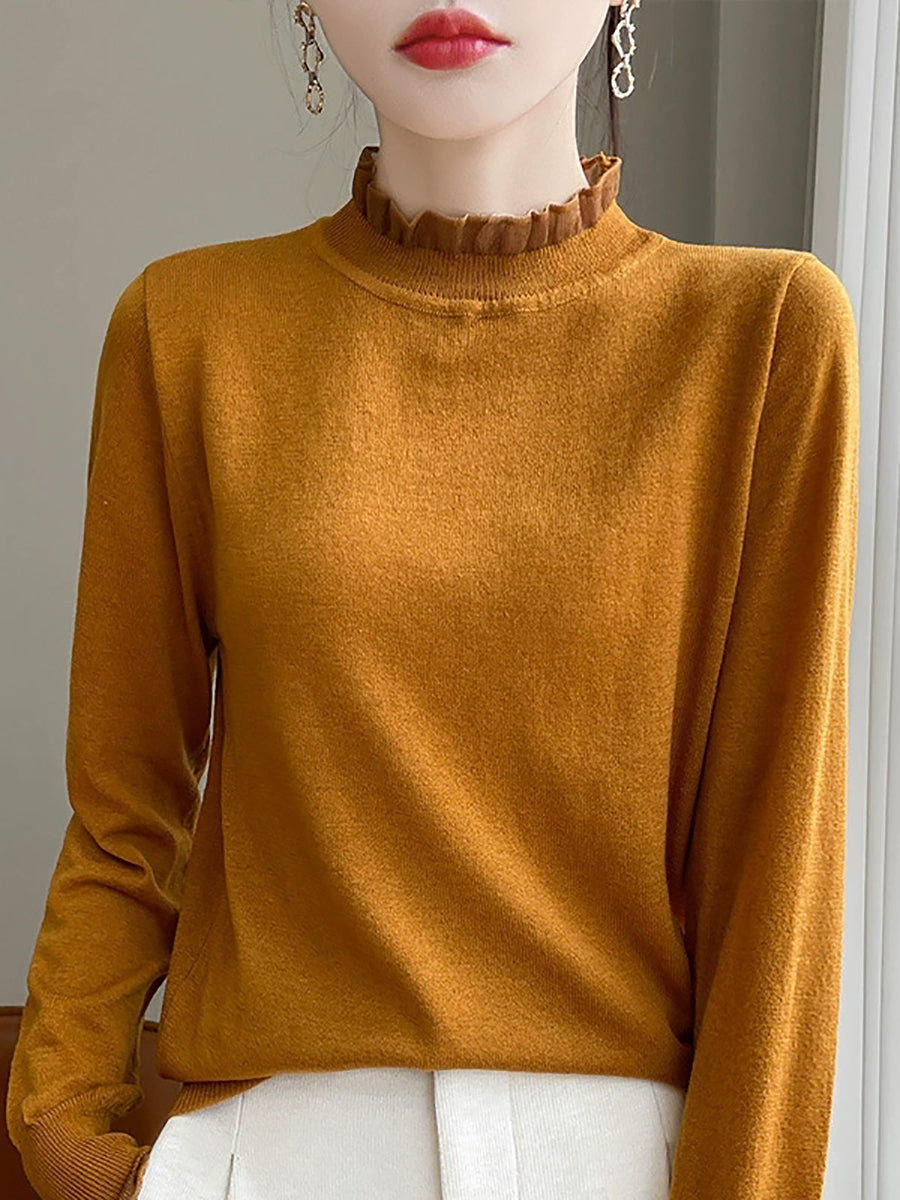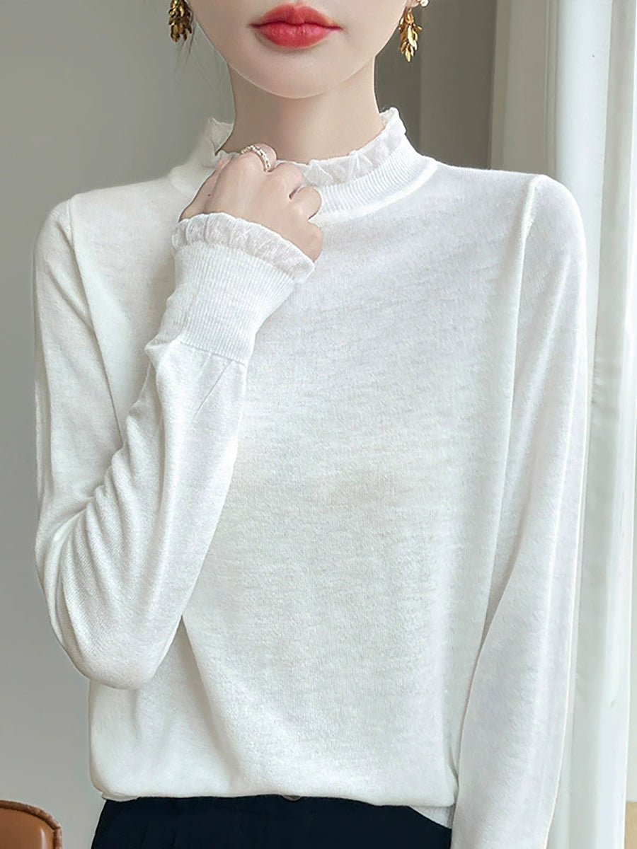Ženski zimski umjetnički pulover s čipkastim ovratnikom u čistoj boji