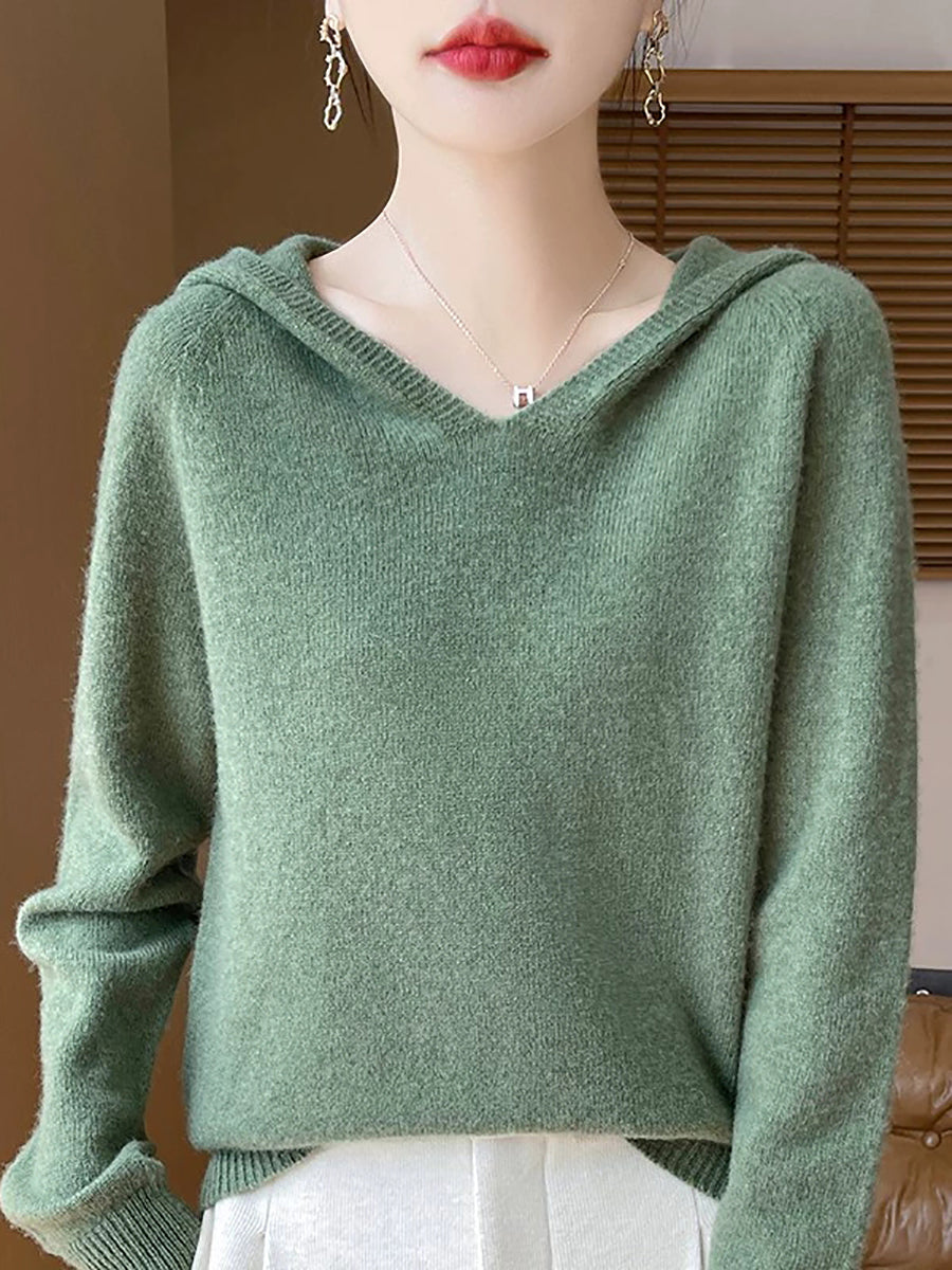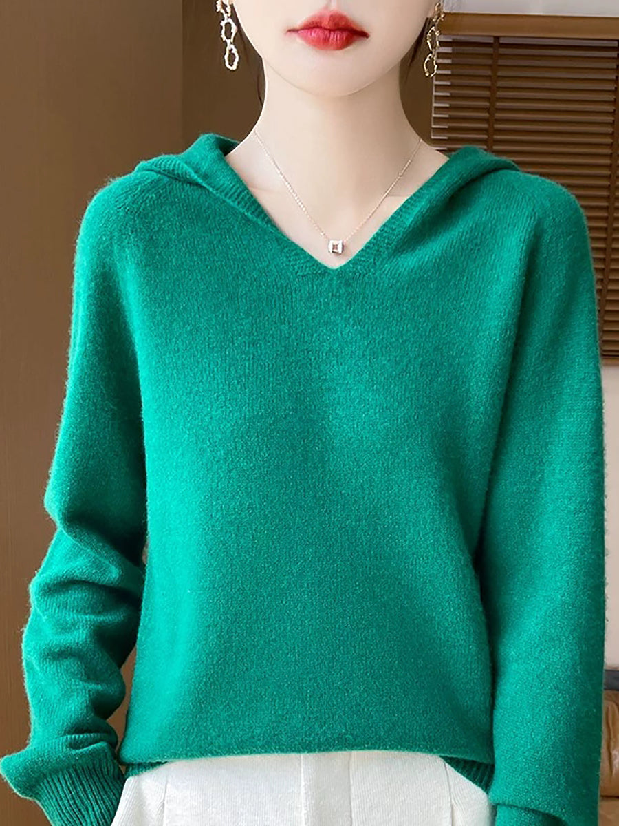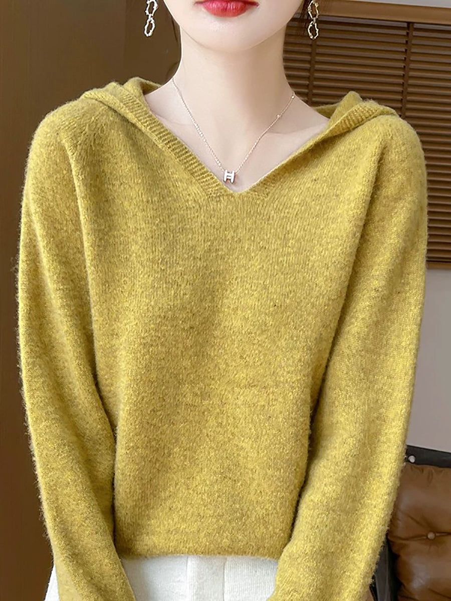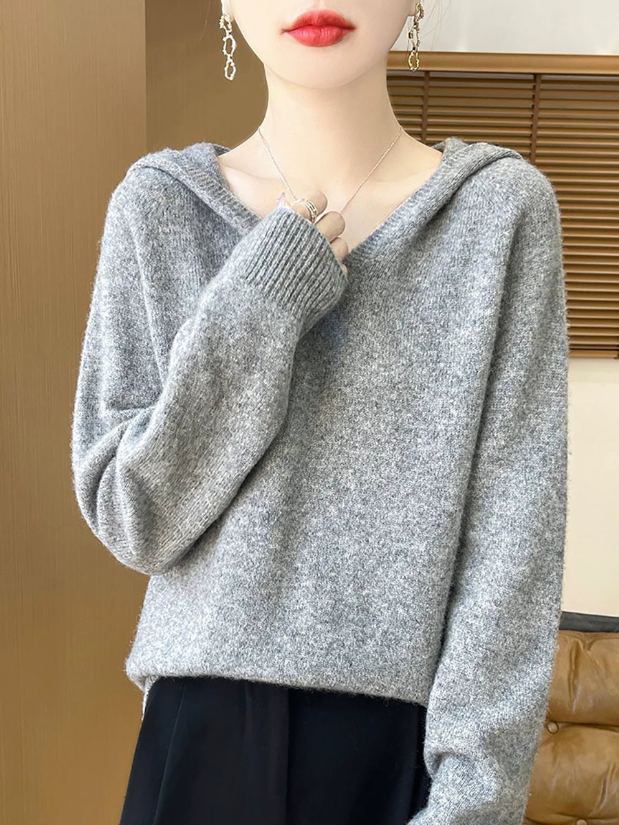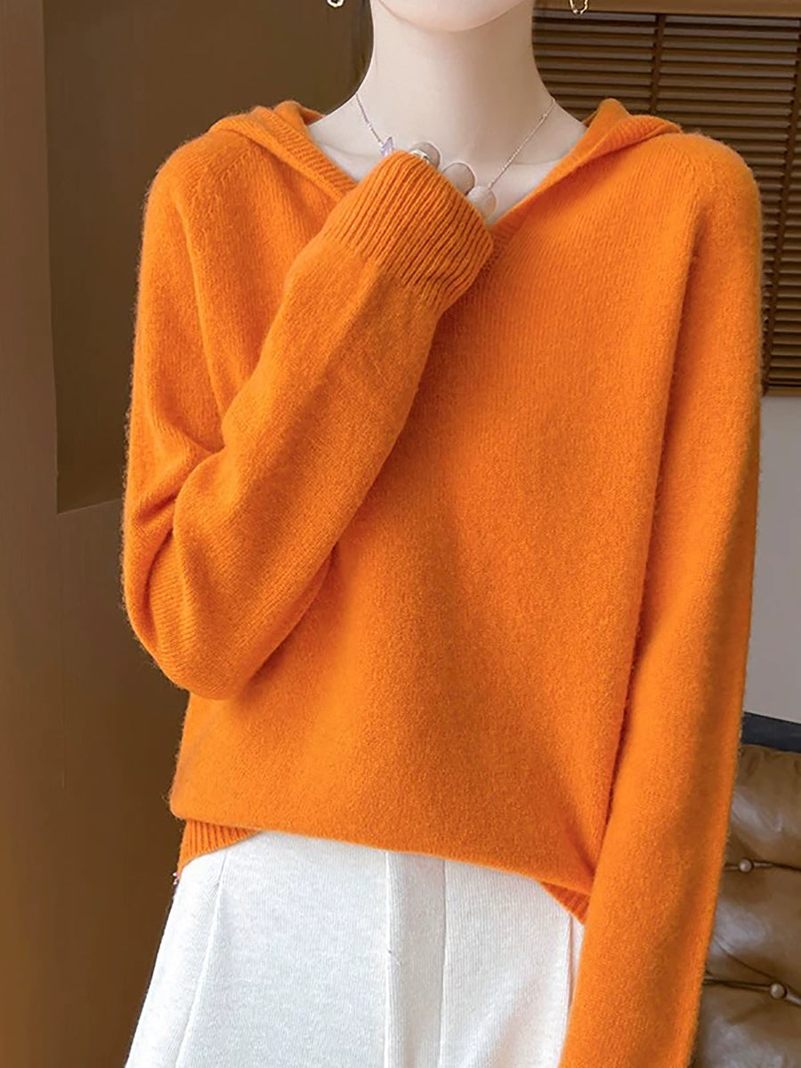 Ženski zimski ležerni pulover s kapuljačom u čistoj boji