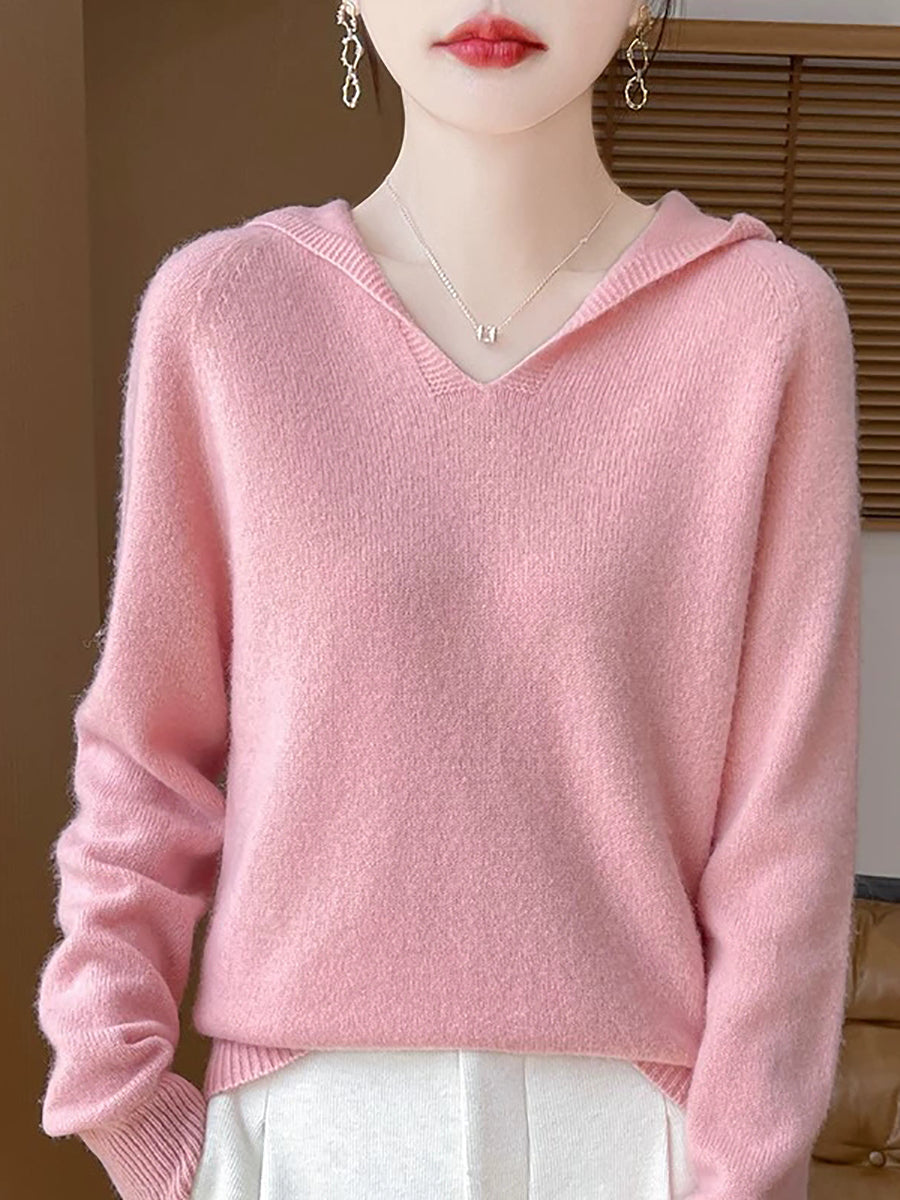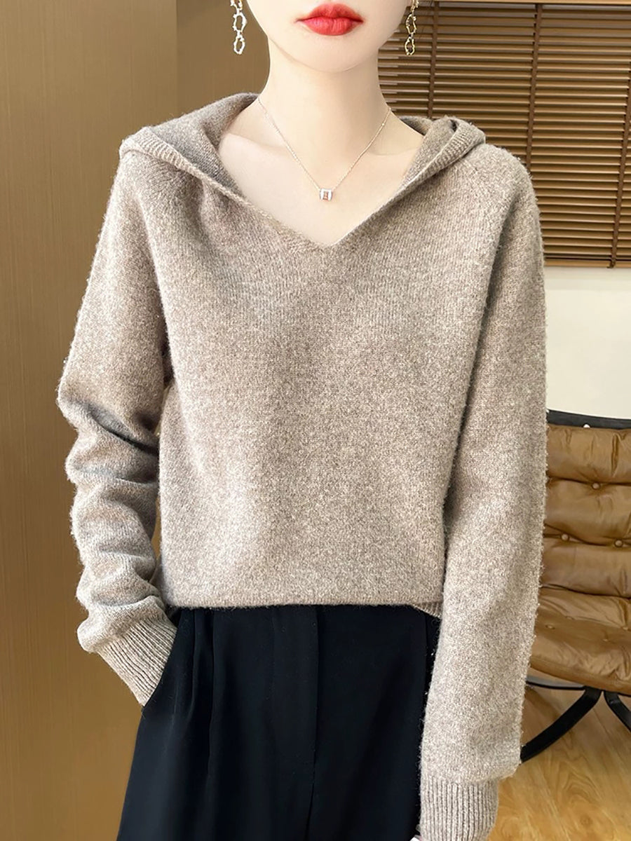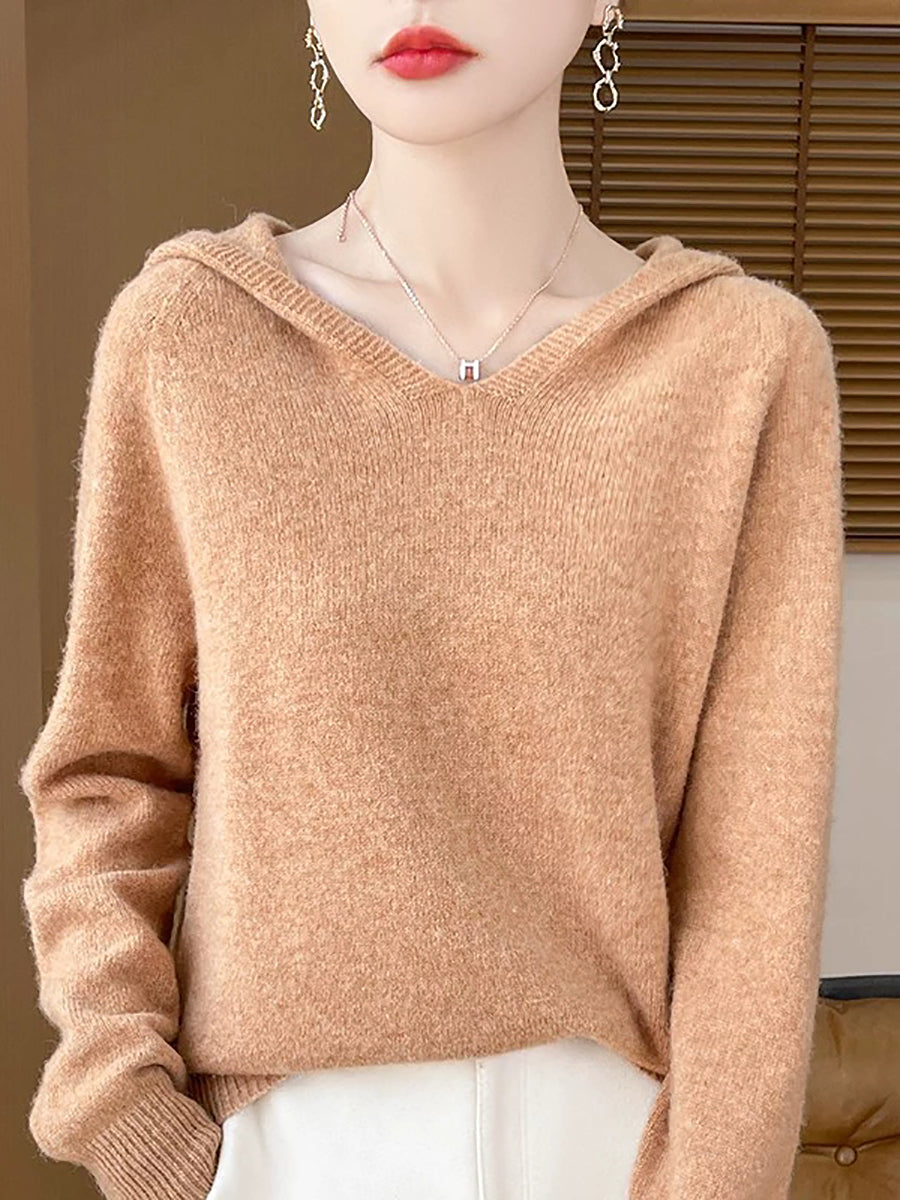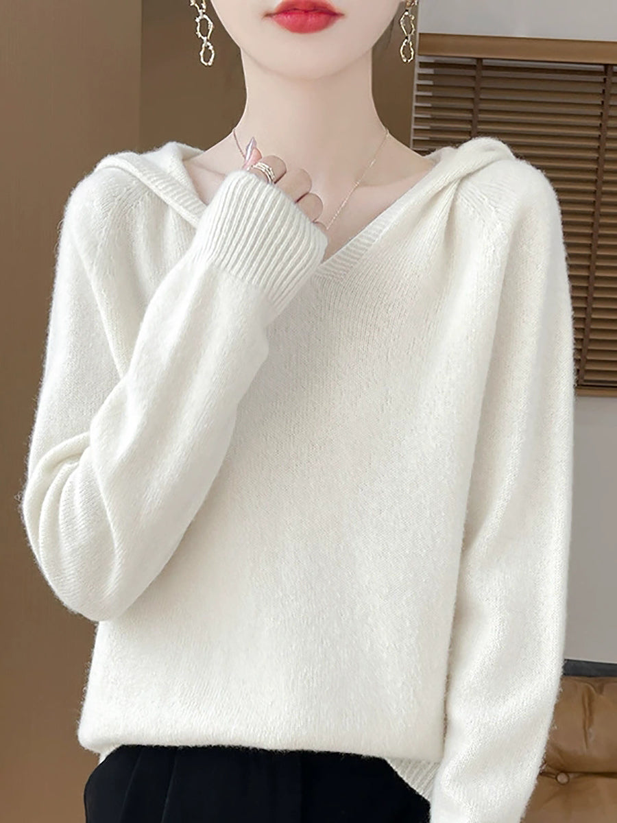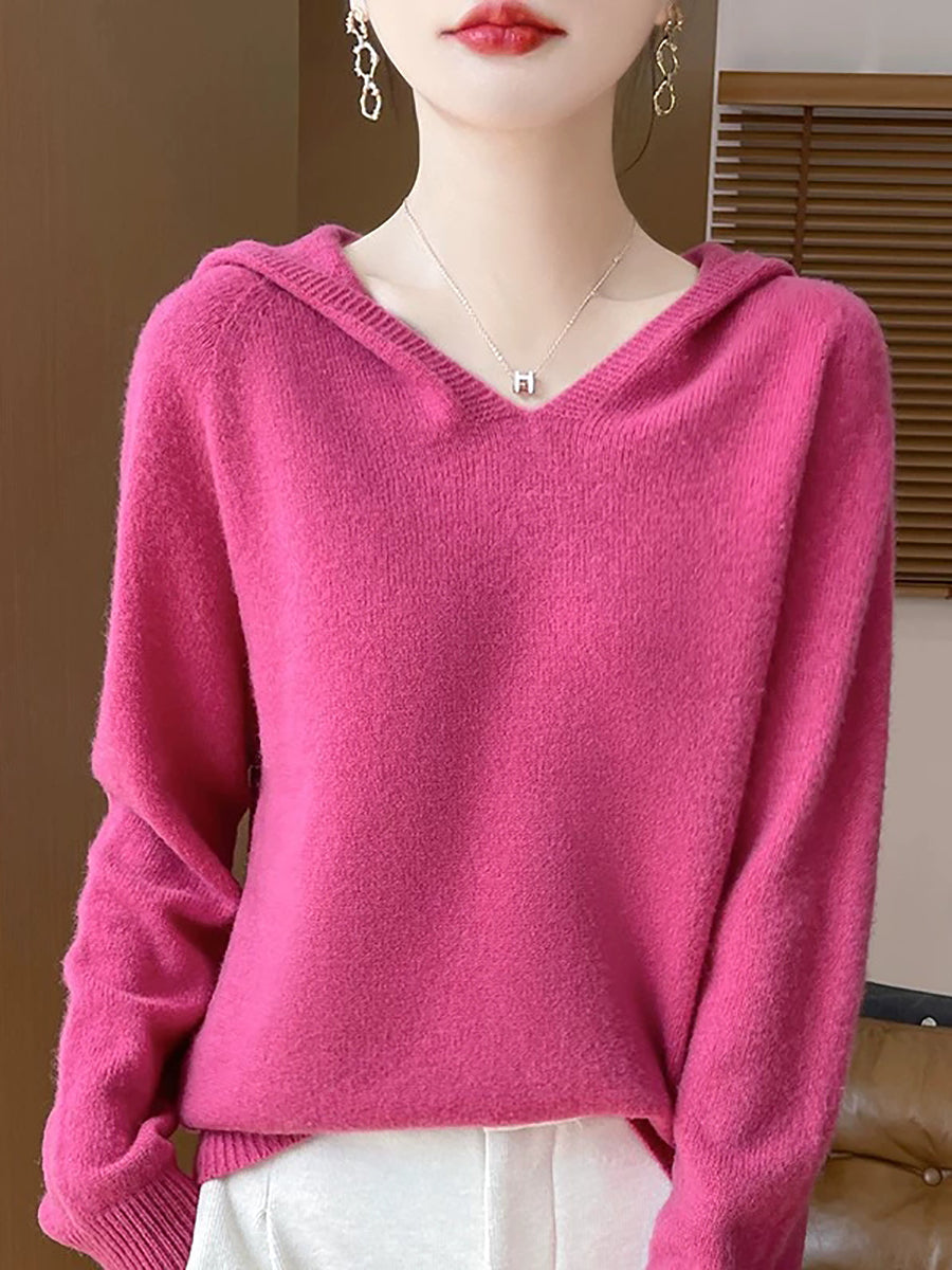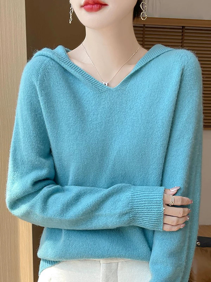 Ženski zimski ležerni pulover s kapuljačom u čistoj boji