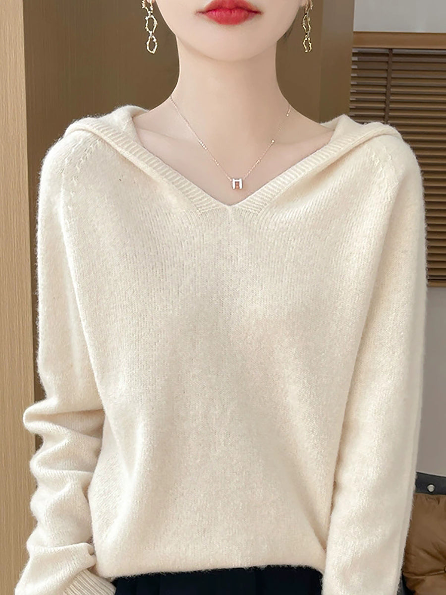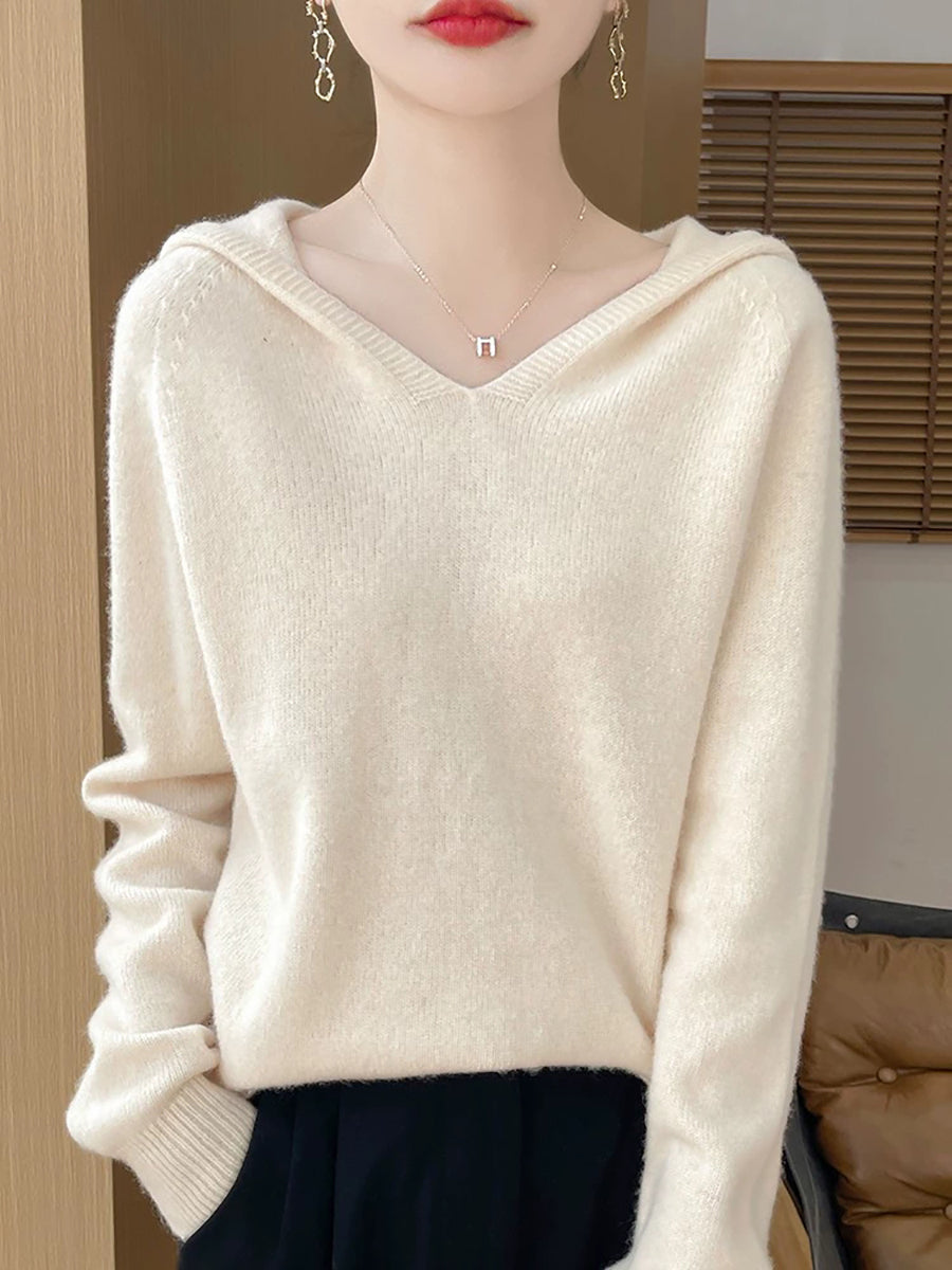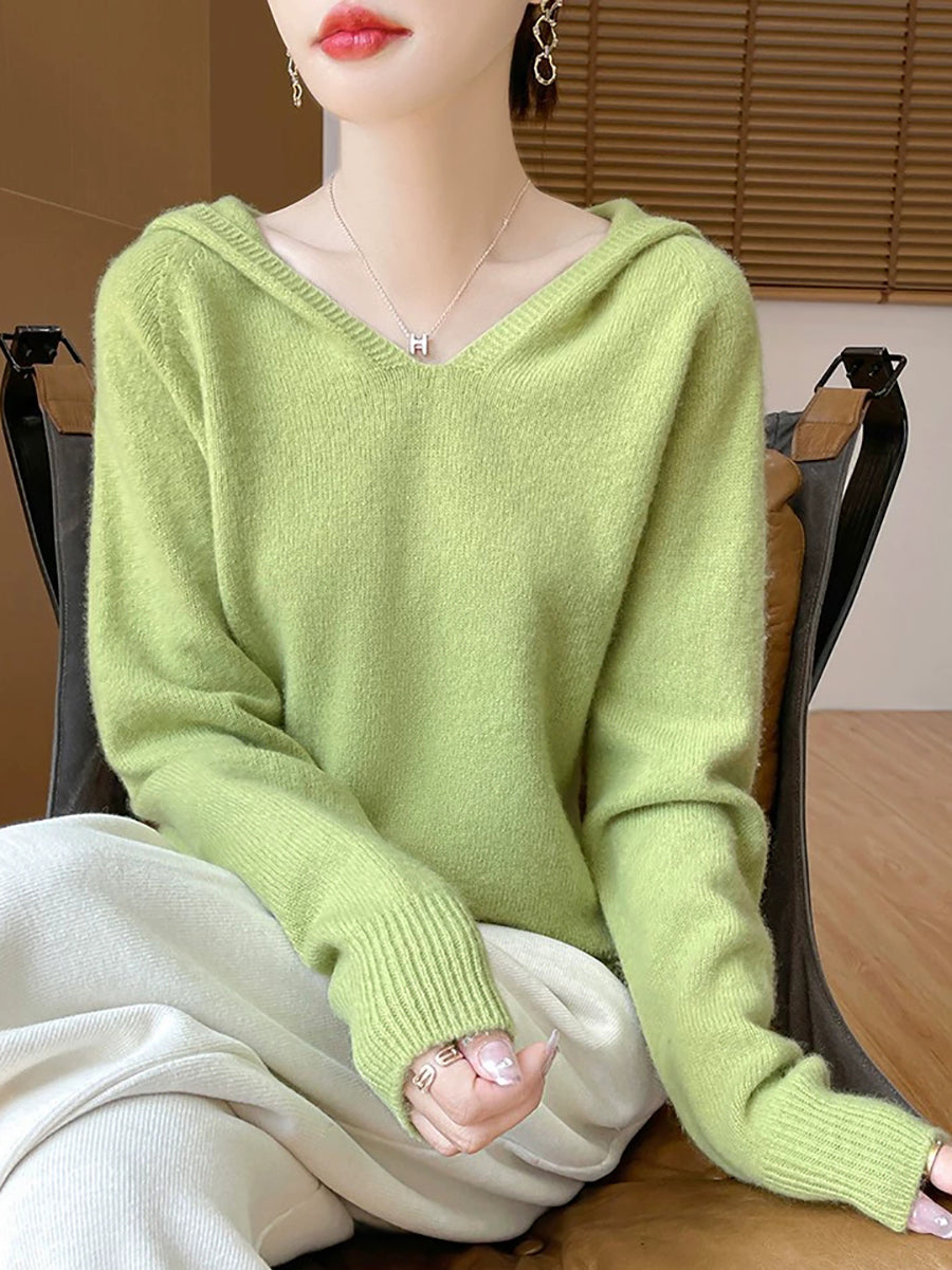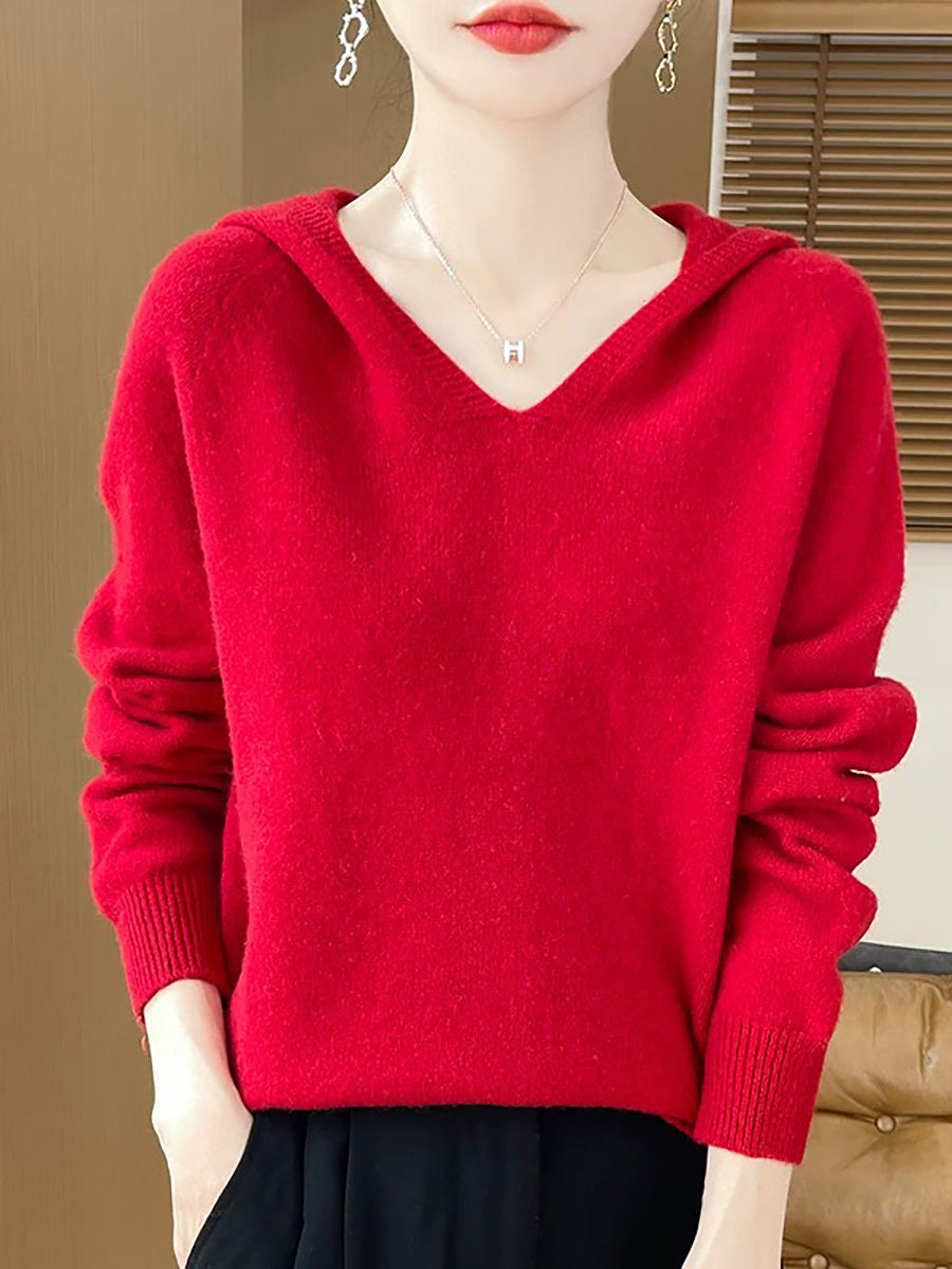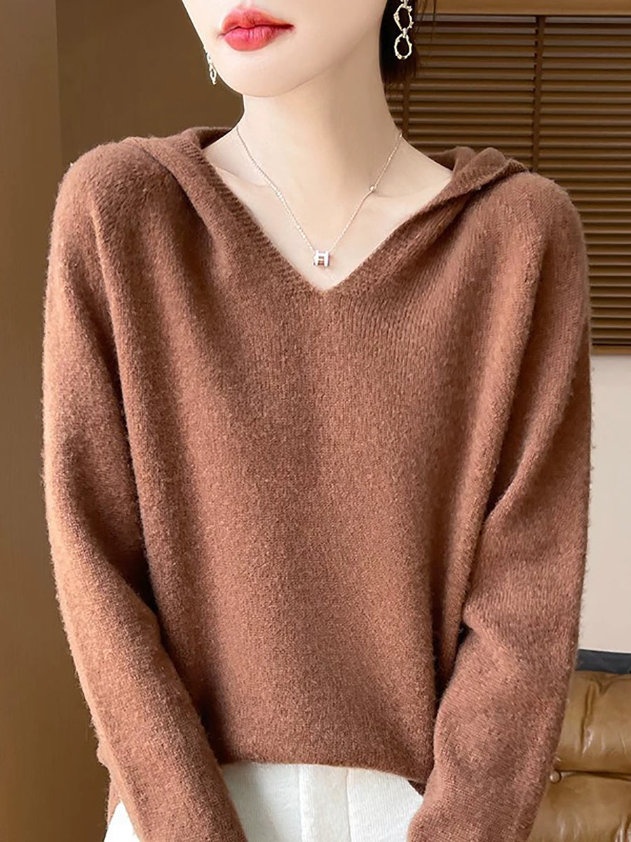 Ženski zimski ležerni pulover s kapuljačom u čistoj boji