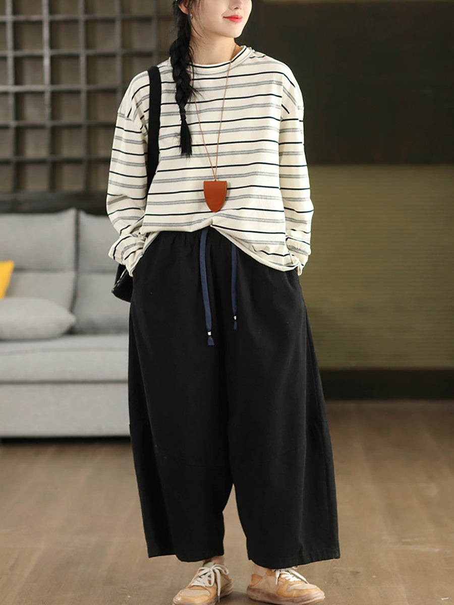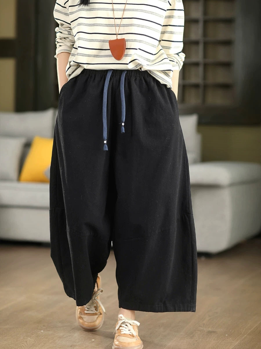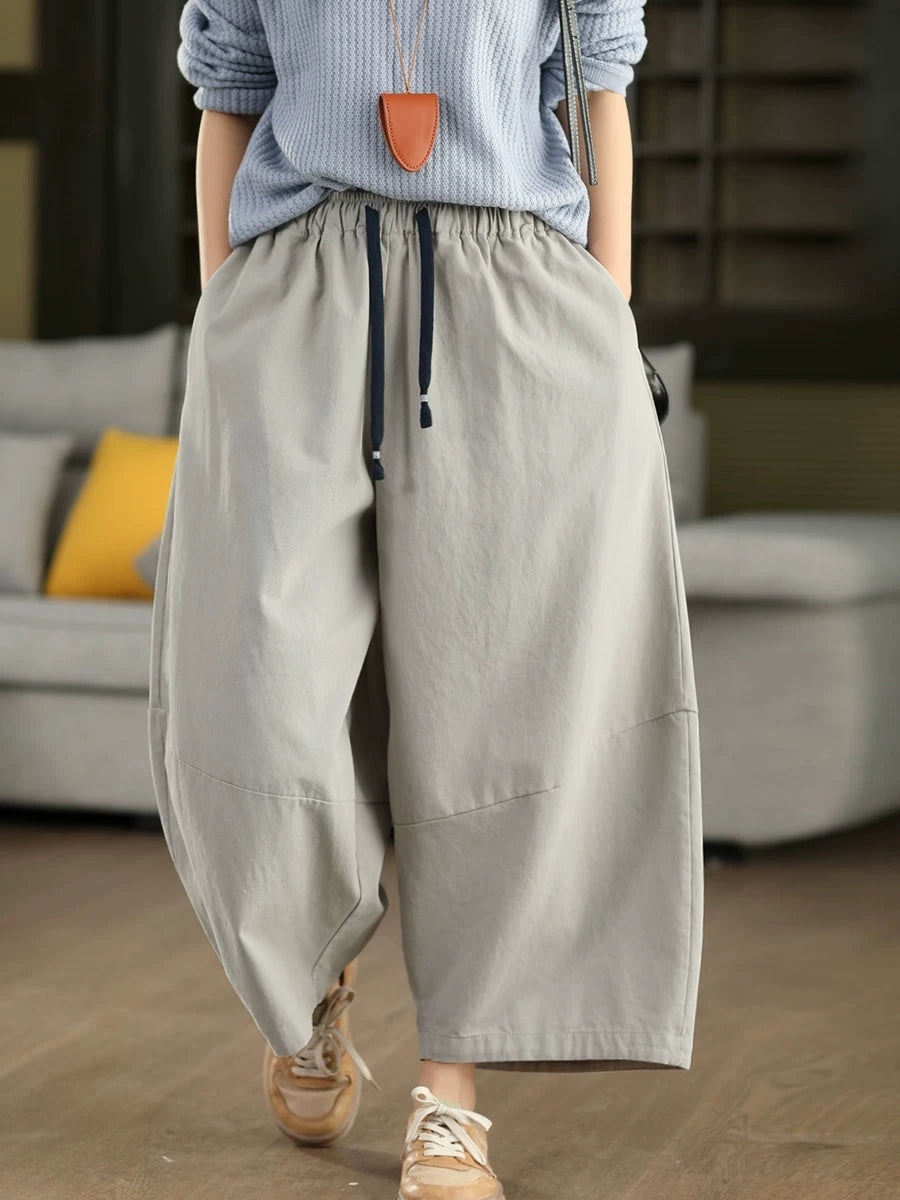 Ženske zimske ležerne hlače širokih nogavica, čistog izgleda, 100% pamuk