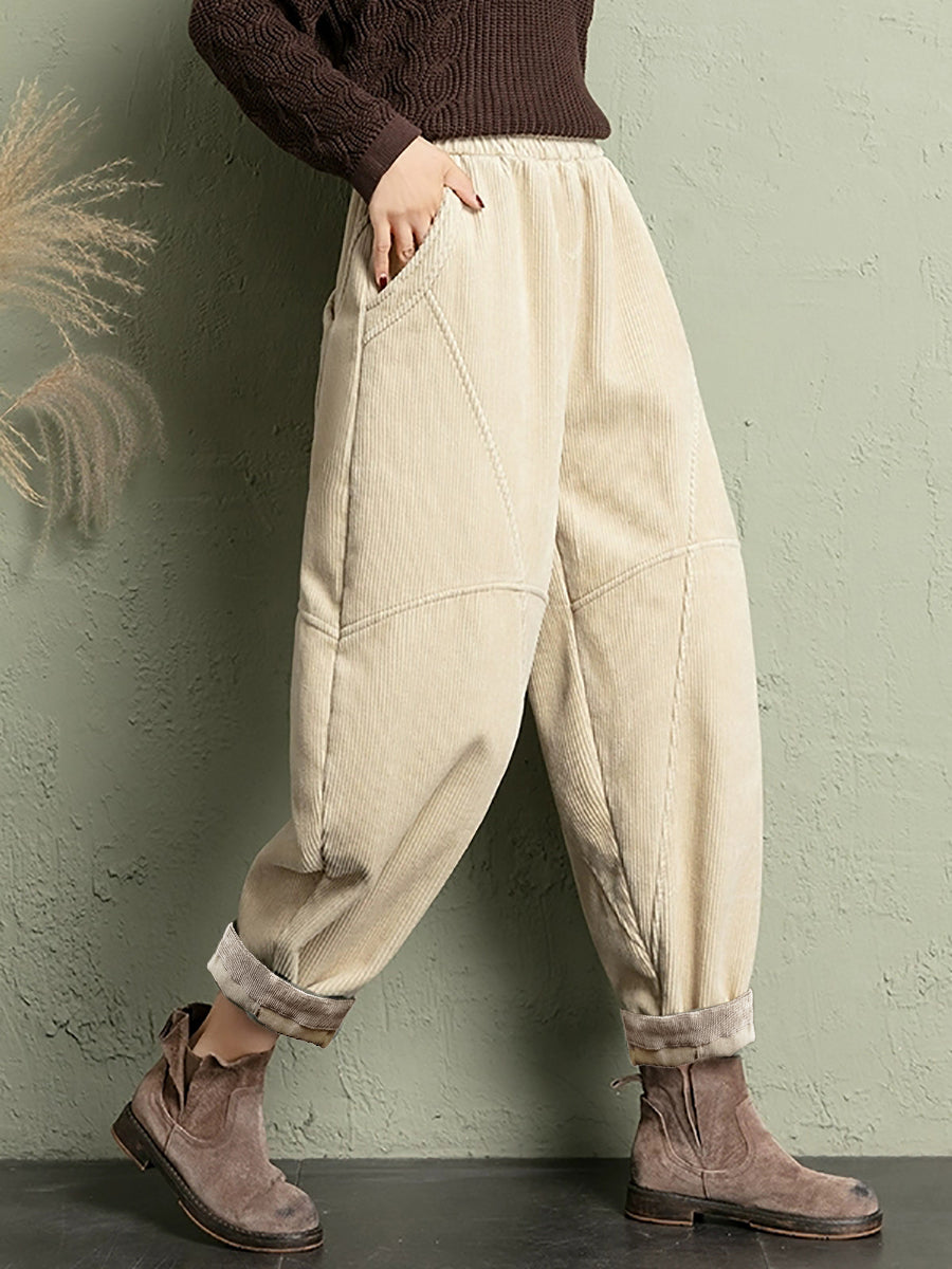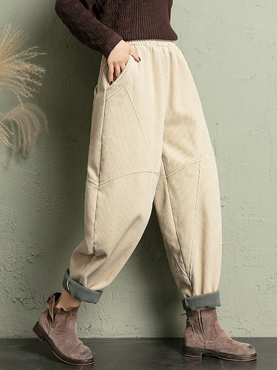 Ženske zimske ležerne harem hlače od čistog korduroja