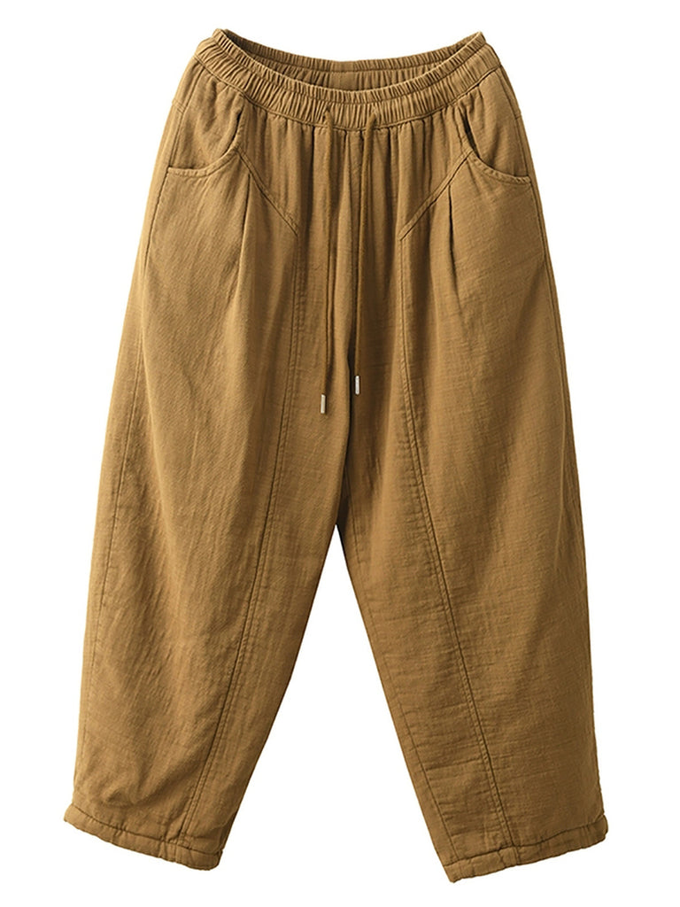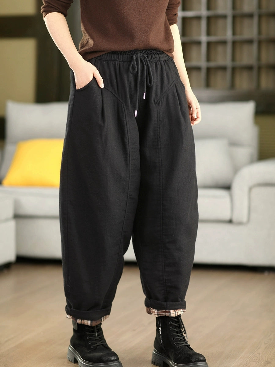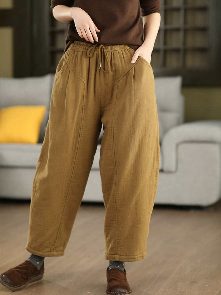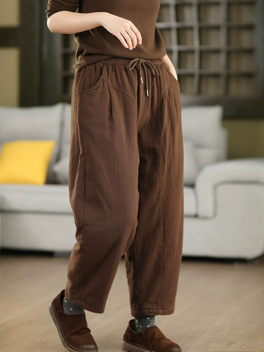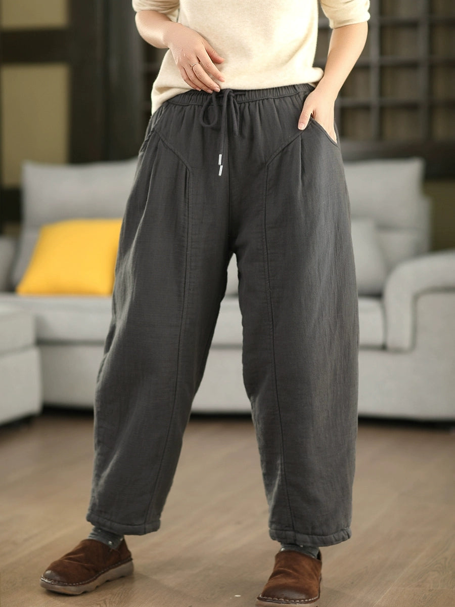 Ženske zimske ležerne harem hlače od čistog pamuka s podstavom od čistog pamuka