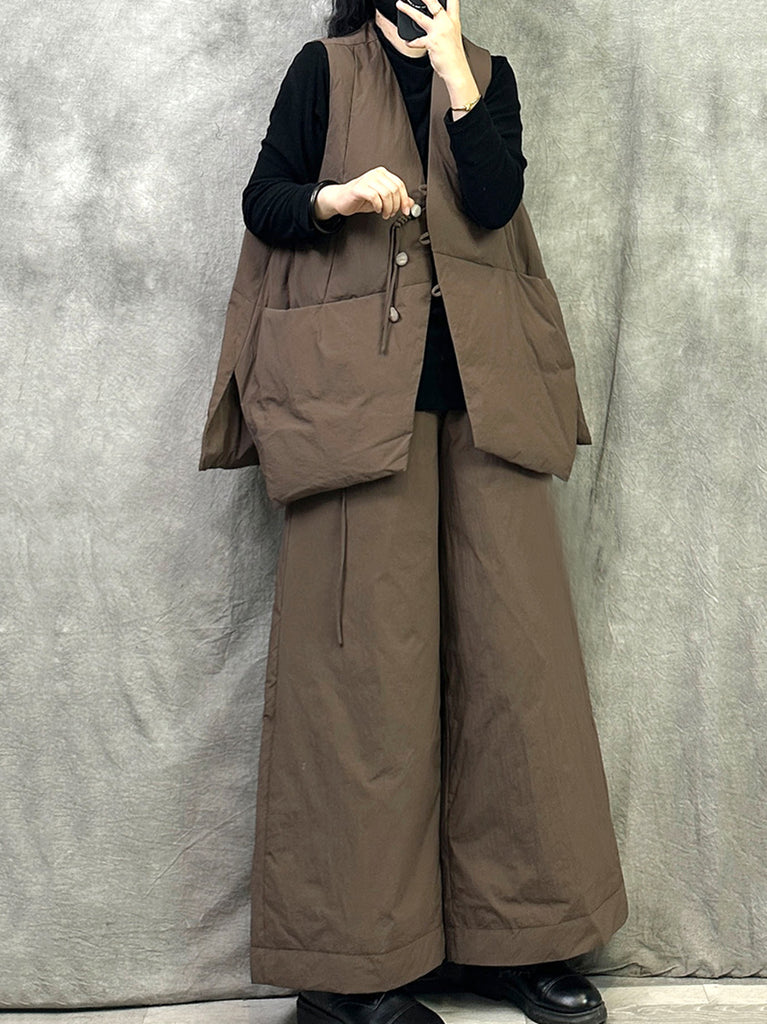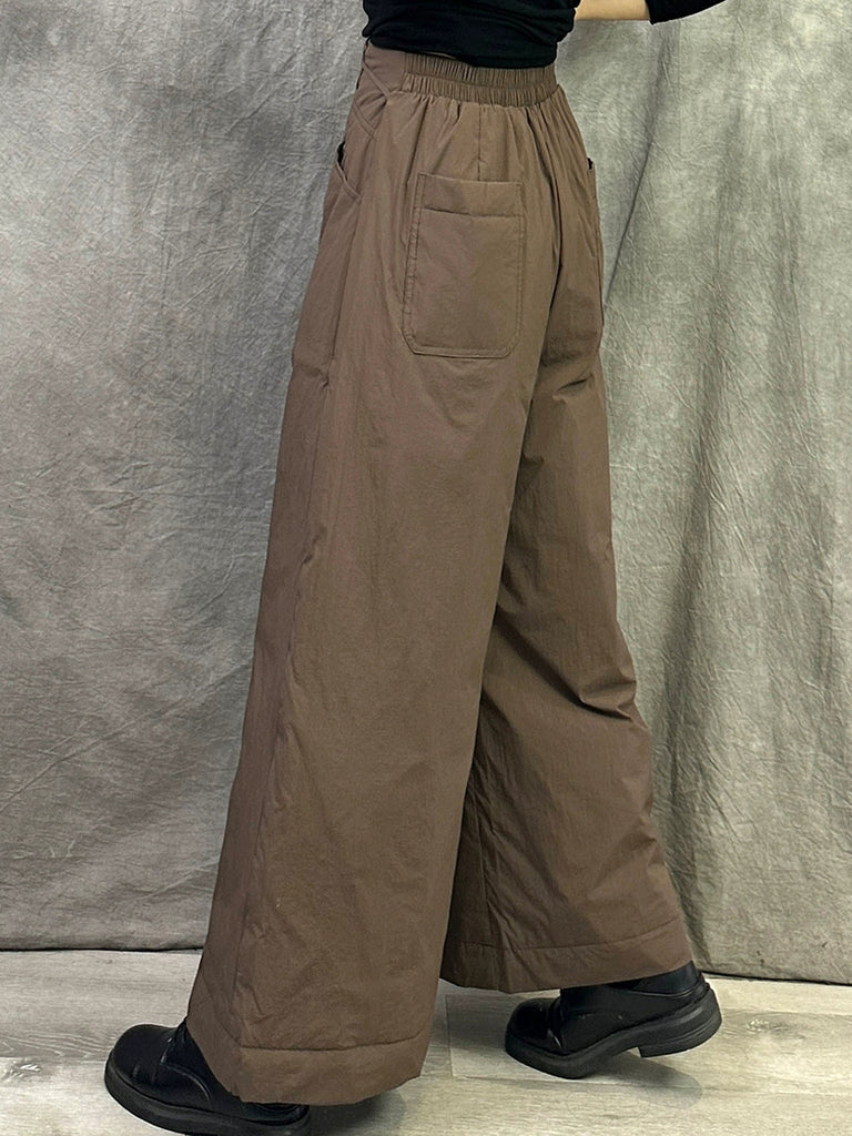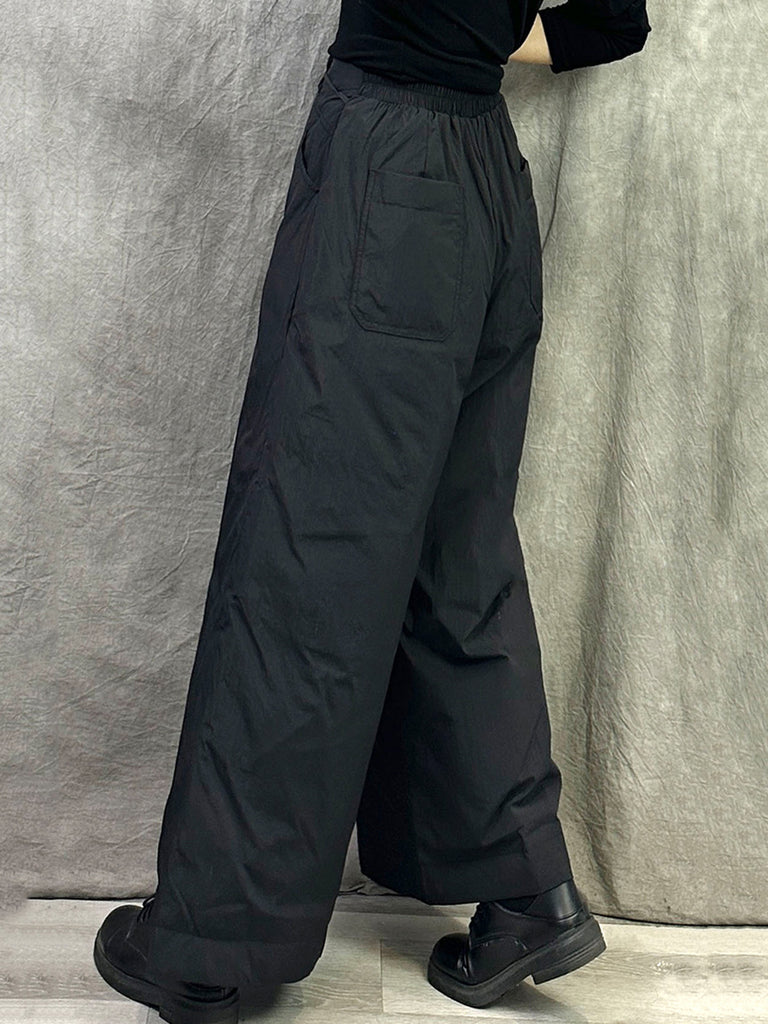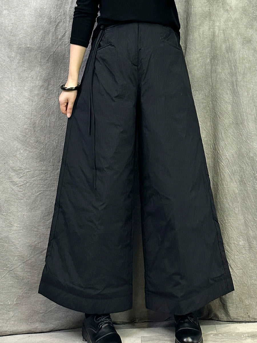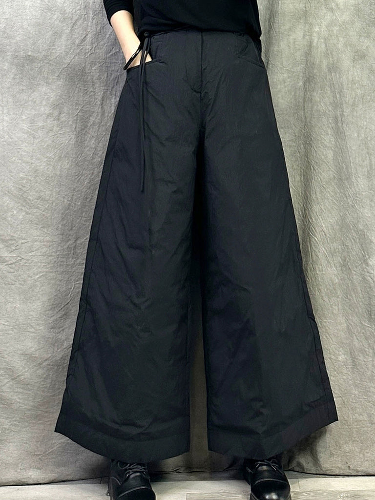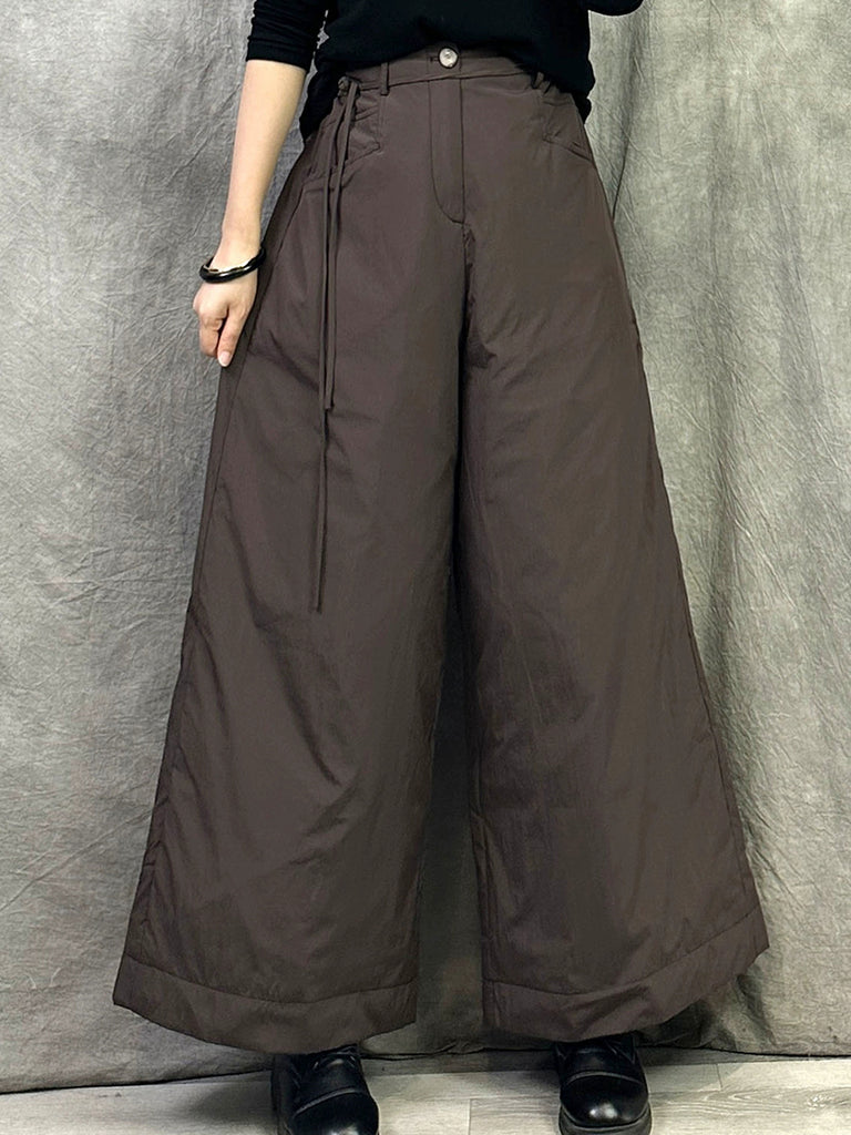 Ženske zimske ležerne hlače širokih nogavica u čistoj boji