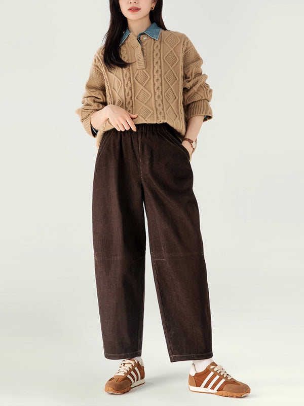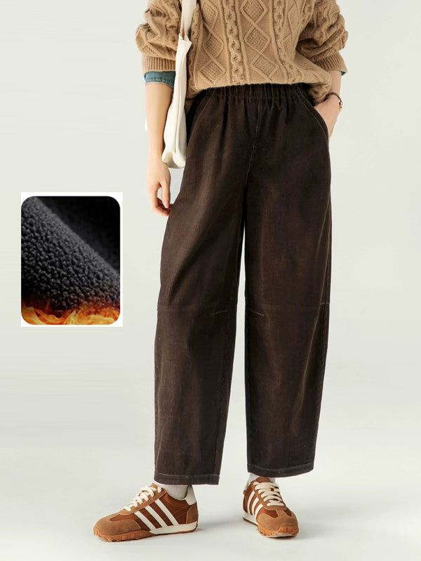 Ženske zimske ležerne harem hlače s flis podstavom u čistoj boji