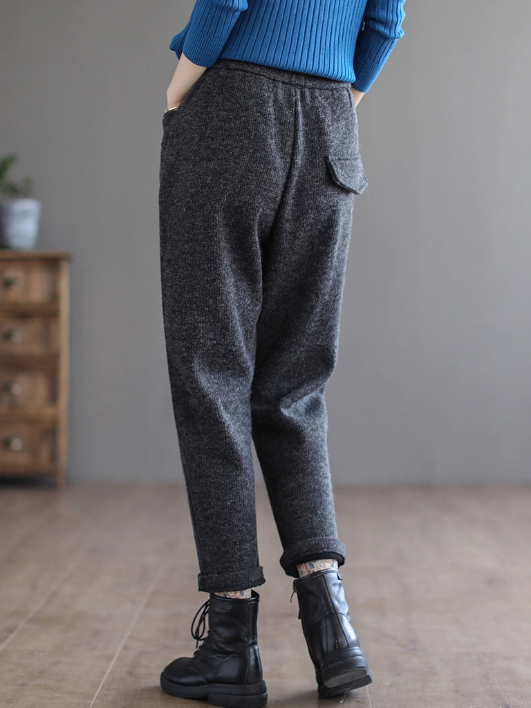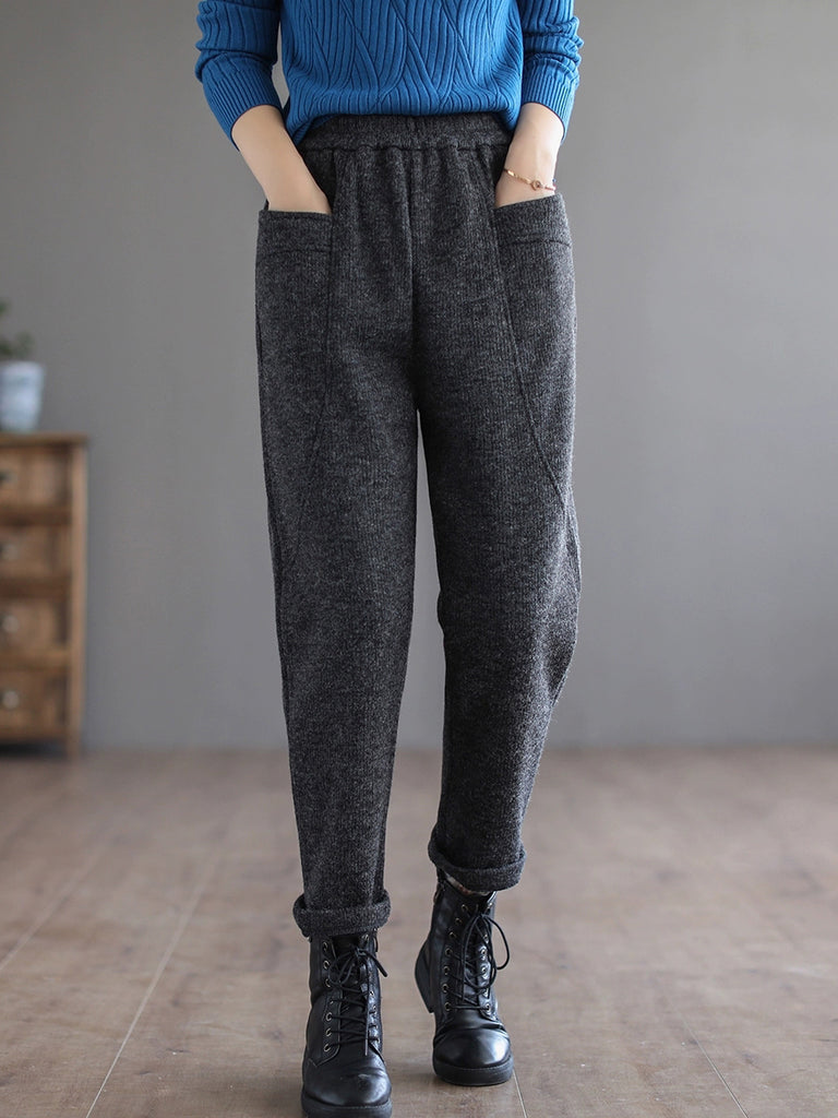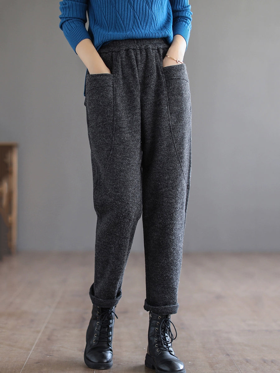 Ženske zimske ležerne harem hlače s flis podstavom u čistoj boji
