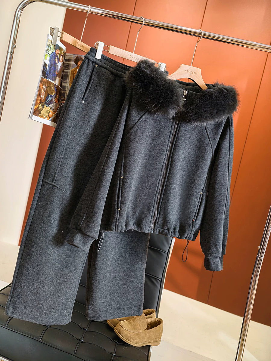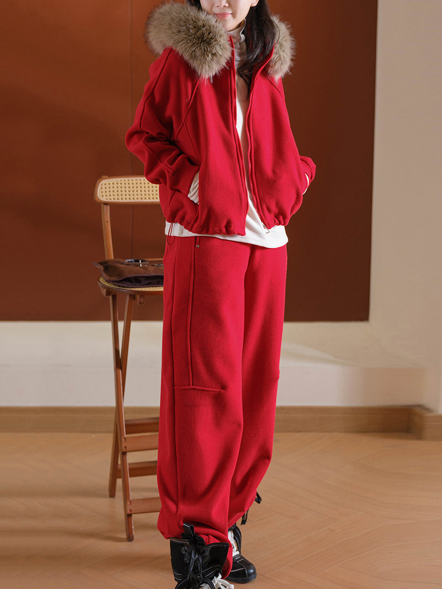 Ženska zimska ležerna odijela s kapuljačom u čistim bojama