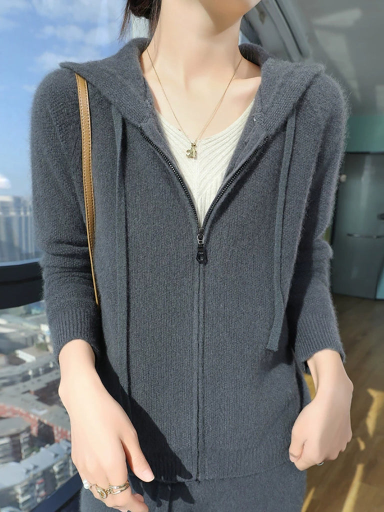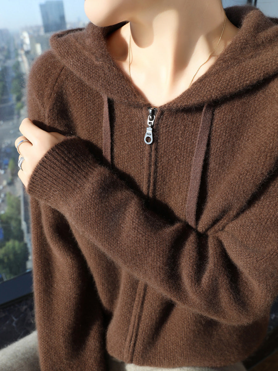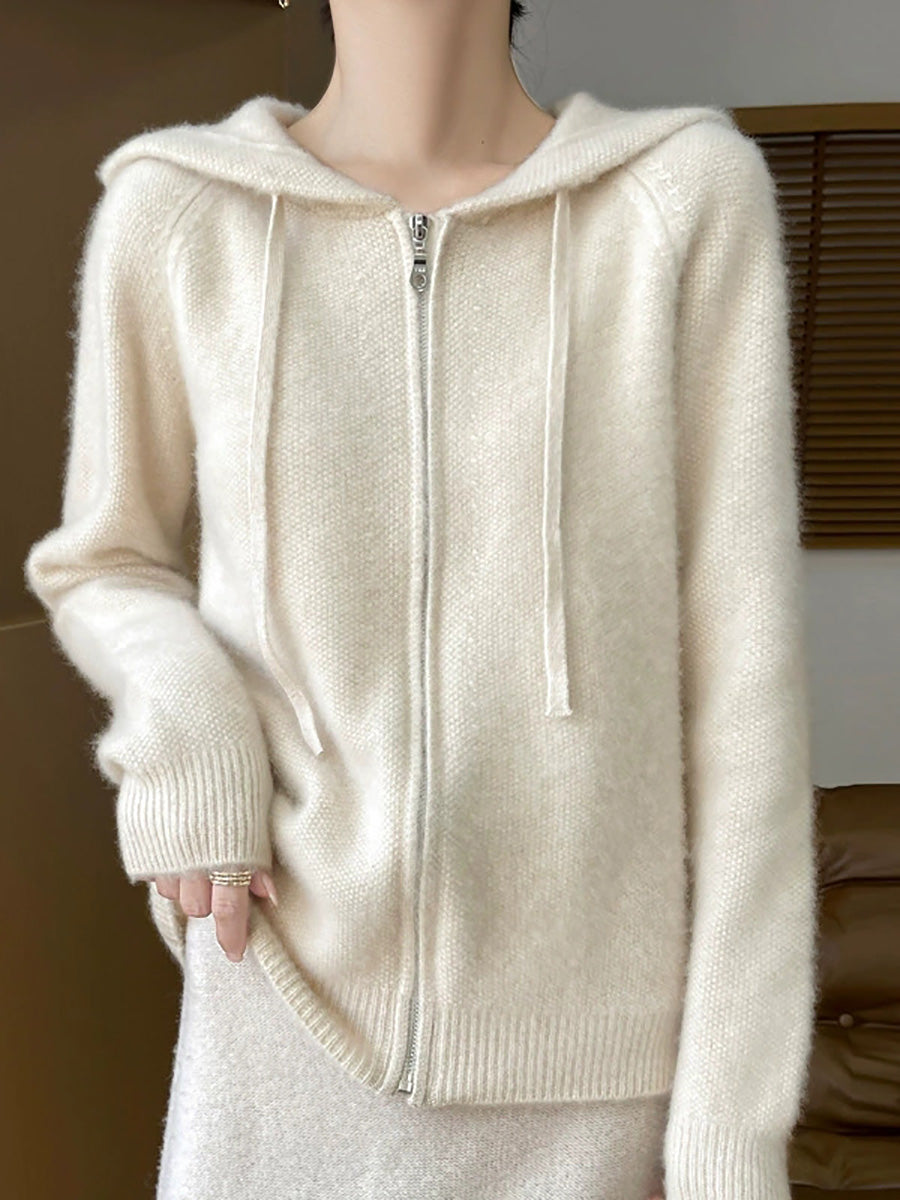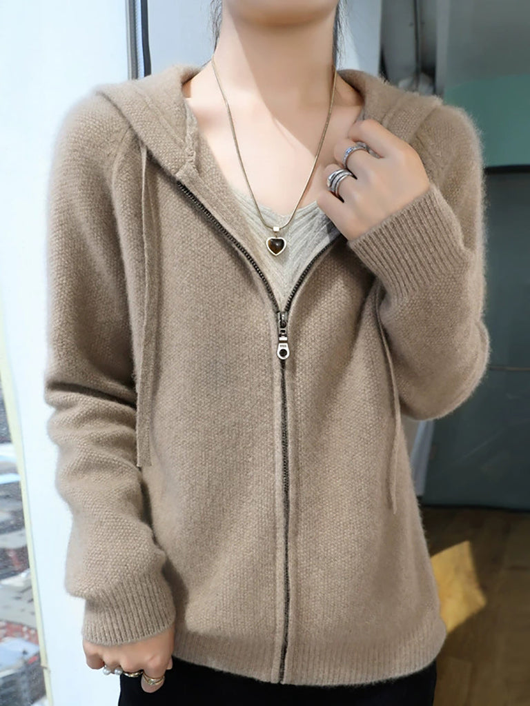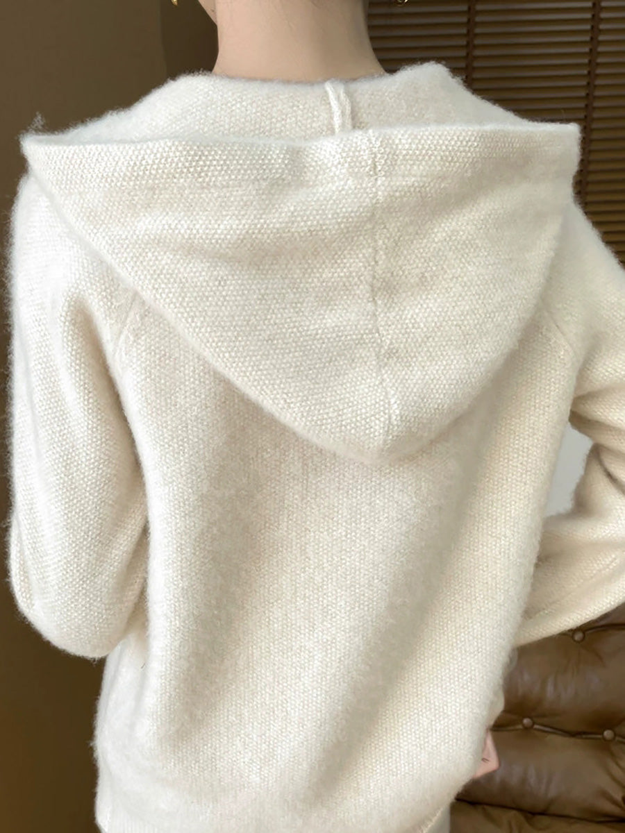 Ženski zimski ležerni pulover s kapuljačom u čistim bojama