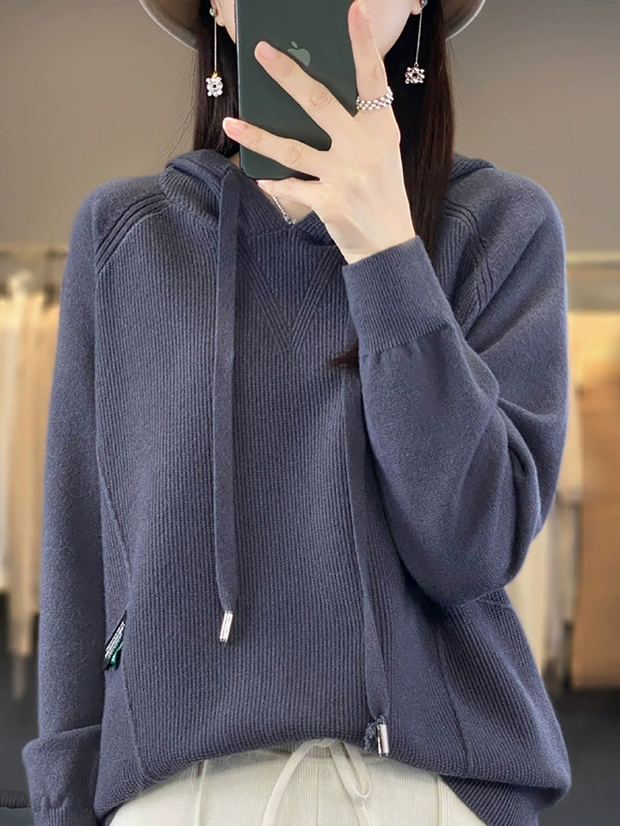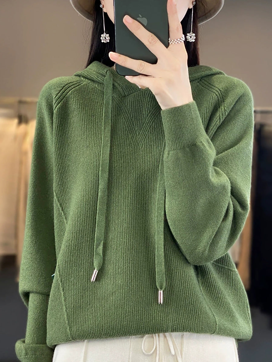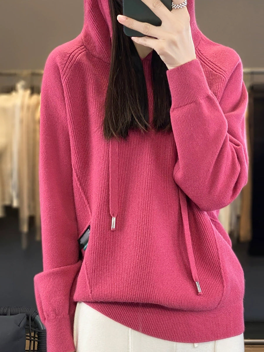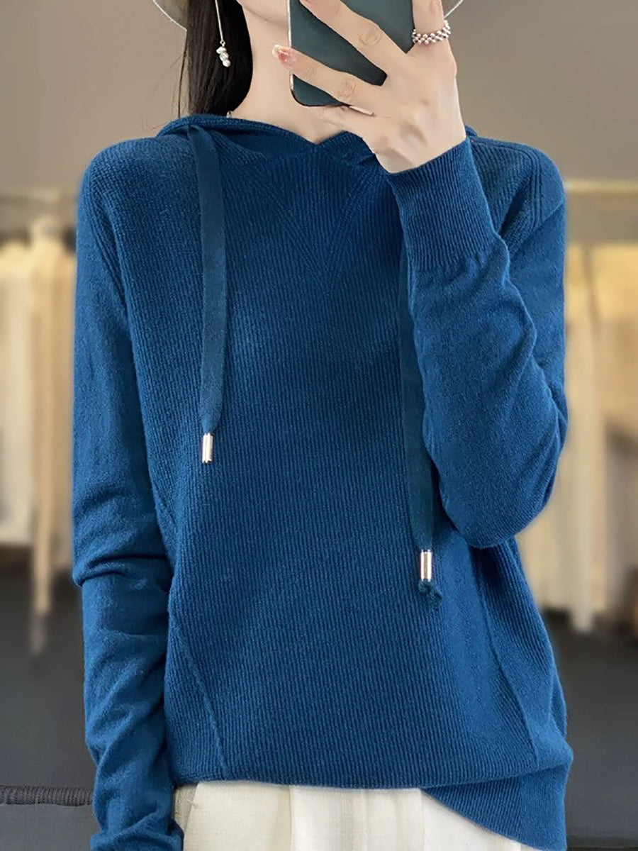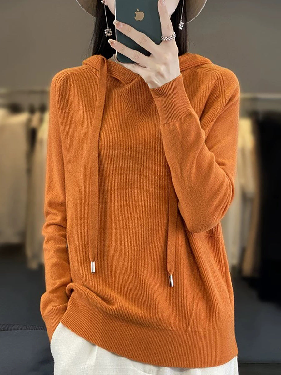 Ženska zimska ležerna pletena majica s kapuljačom u čistim bojama