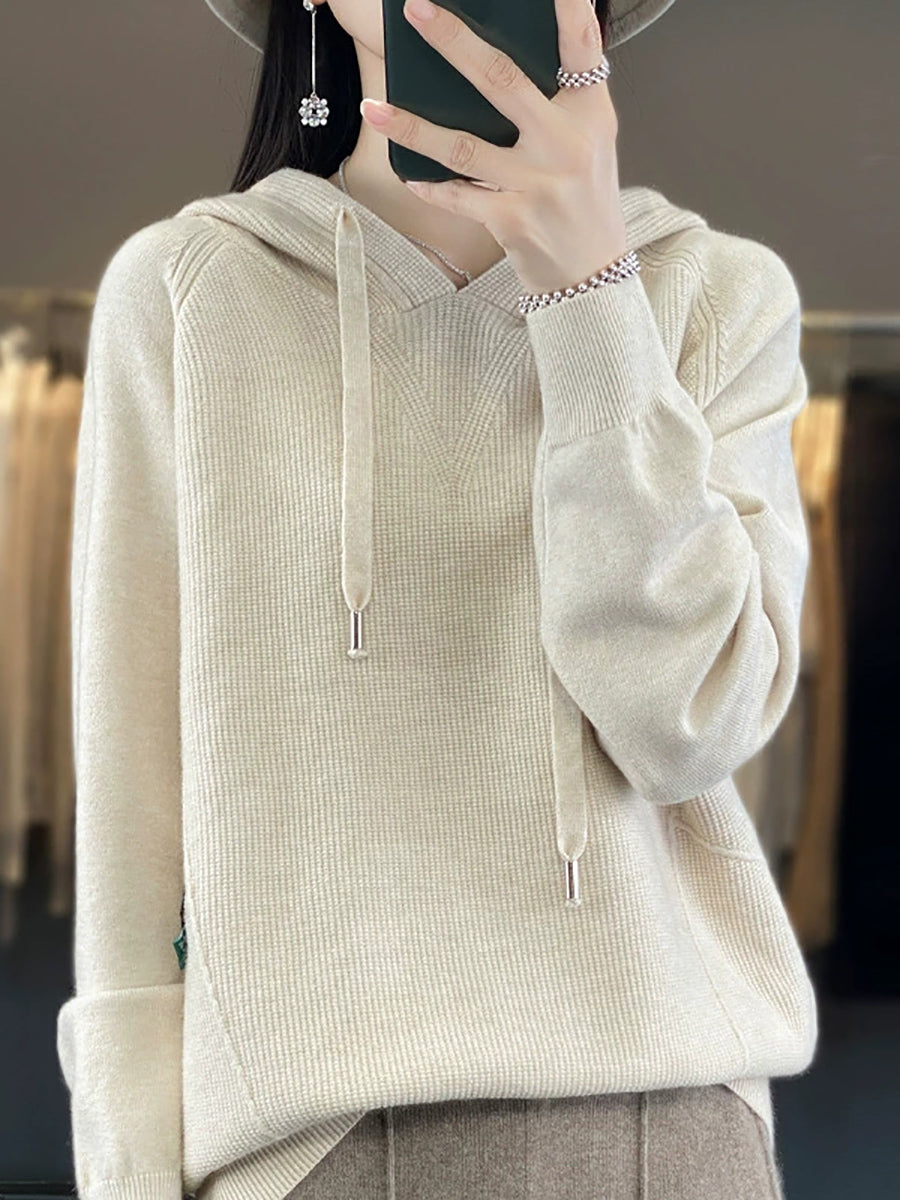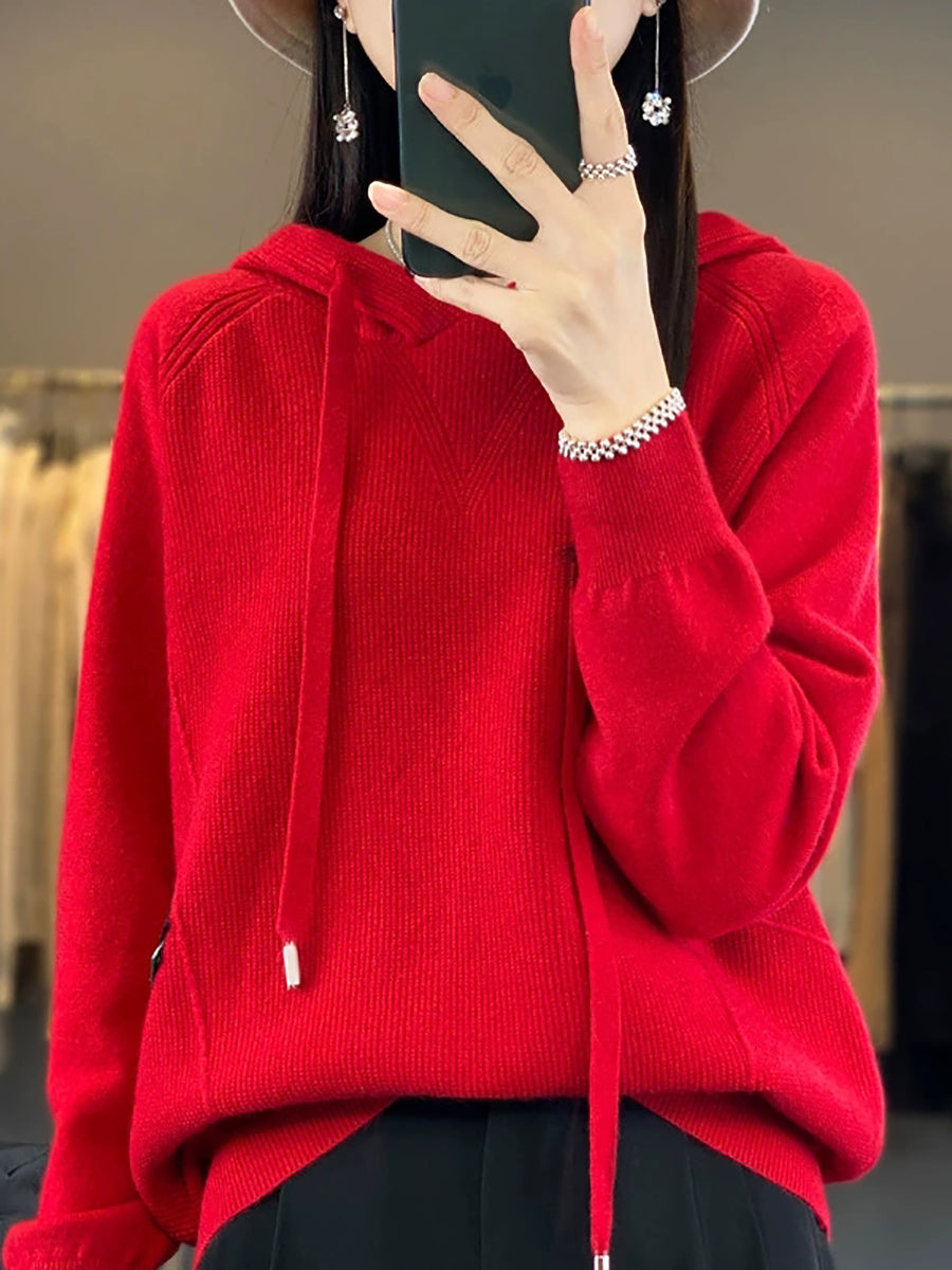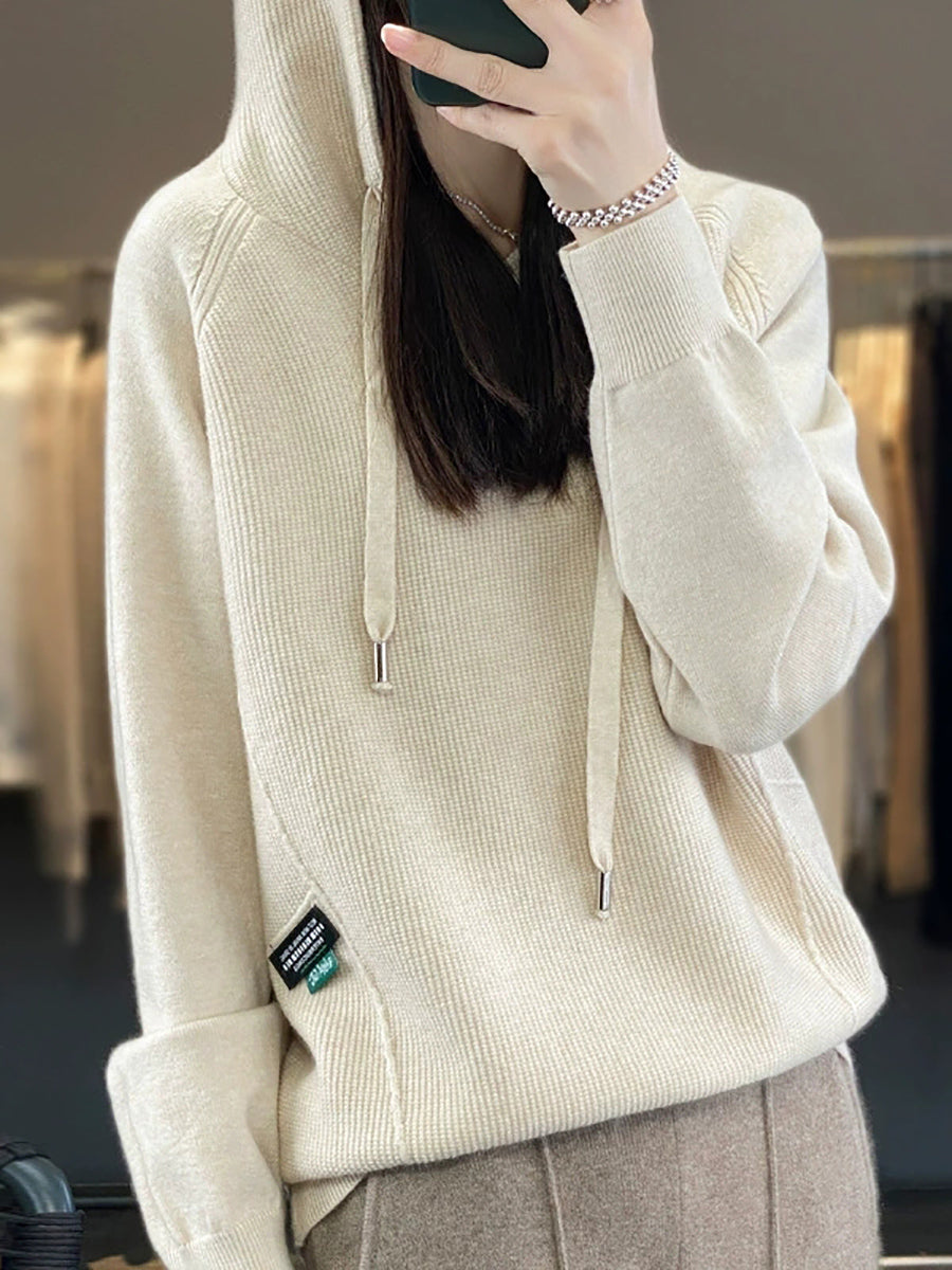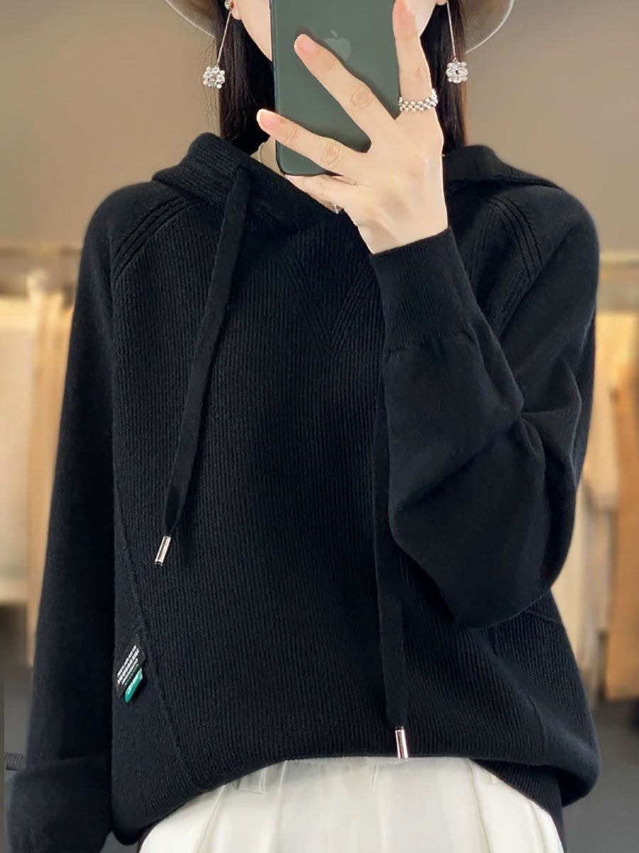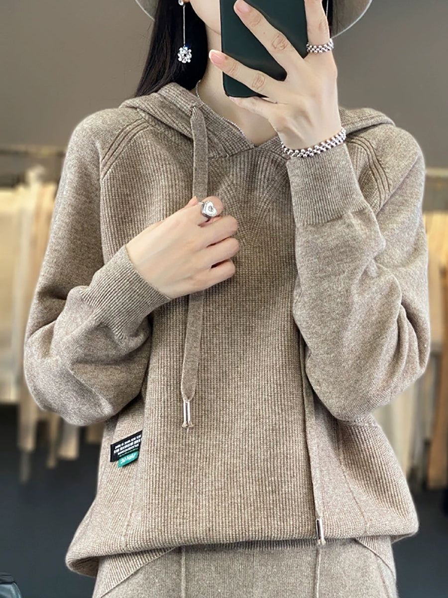 Ženska zimska ležerna pletena majica s kapuljačom u čistim bojama
