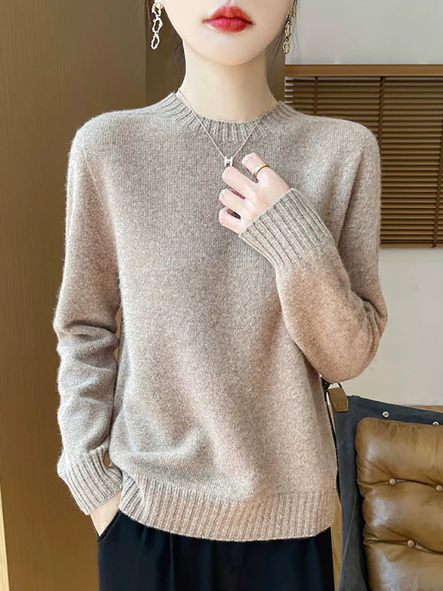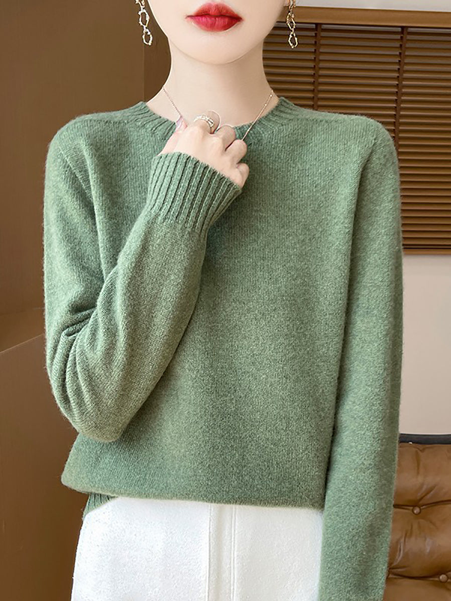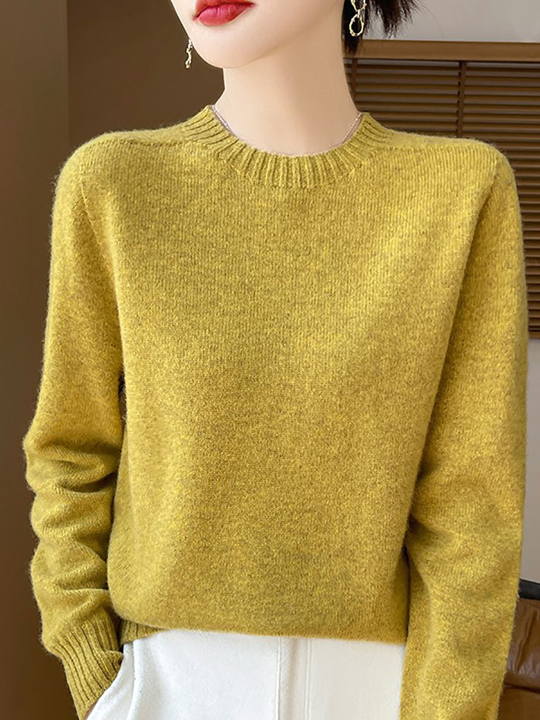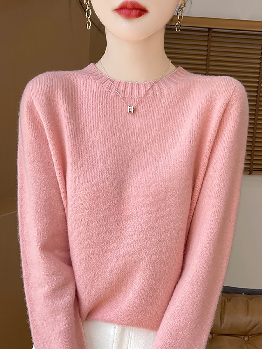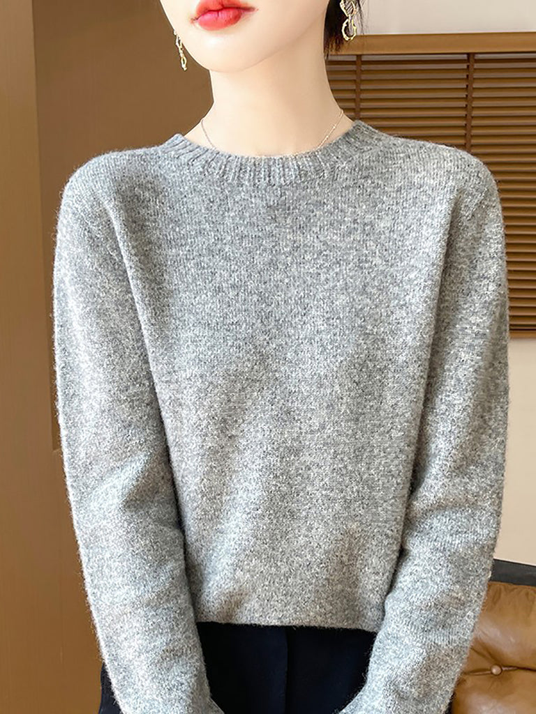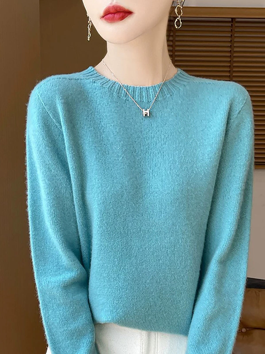 Ženski zimski ležerni pleteni pulover s O-izrezom u čistoj boji