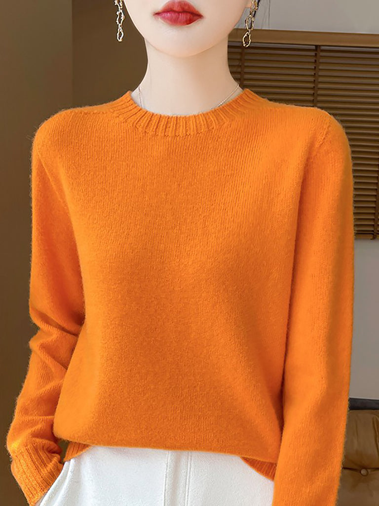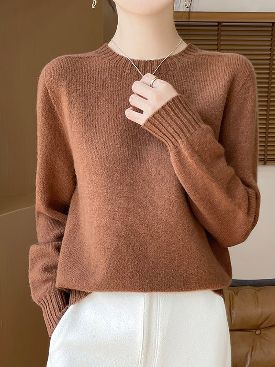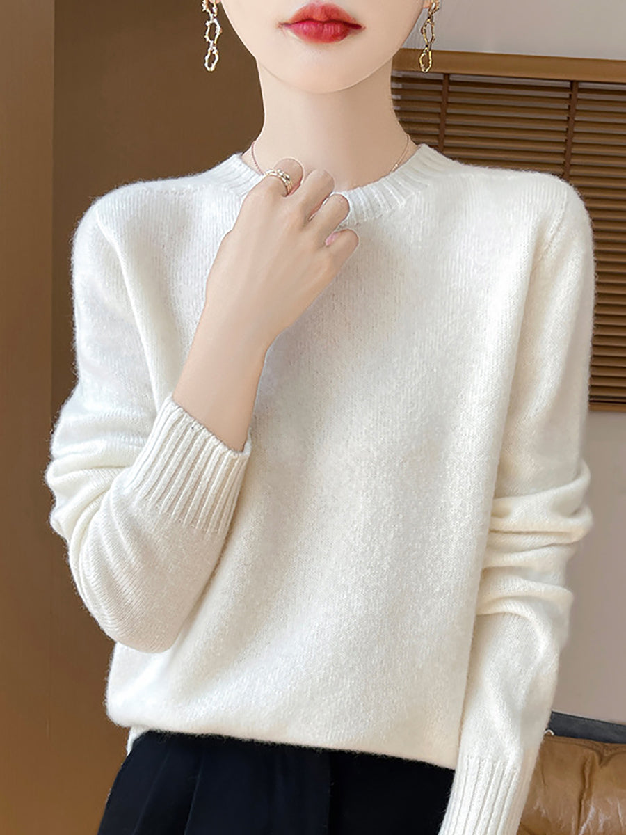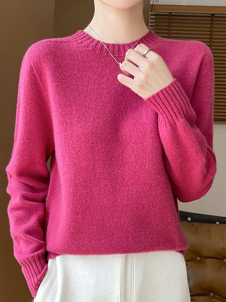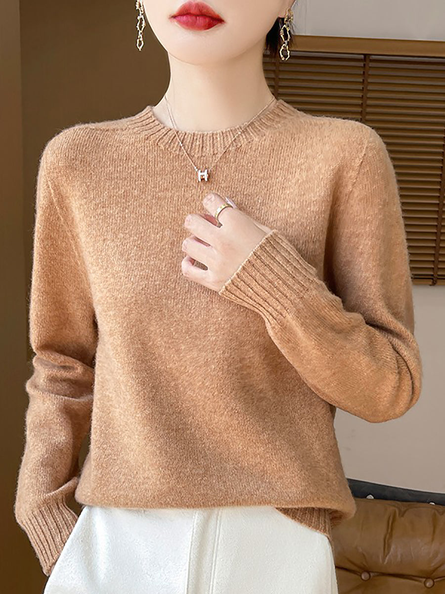 Ženski zimski ležerni pleteni pulover s O-izrezom u čistoj boji