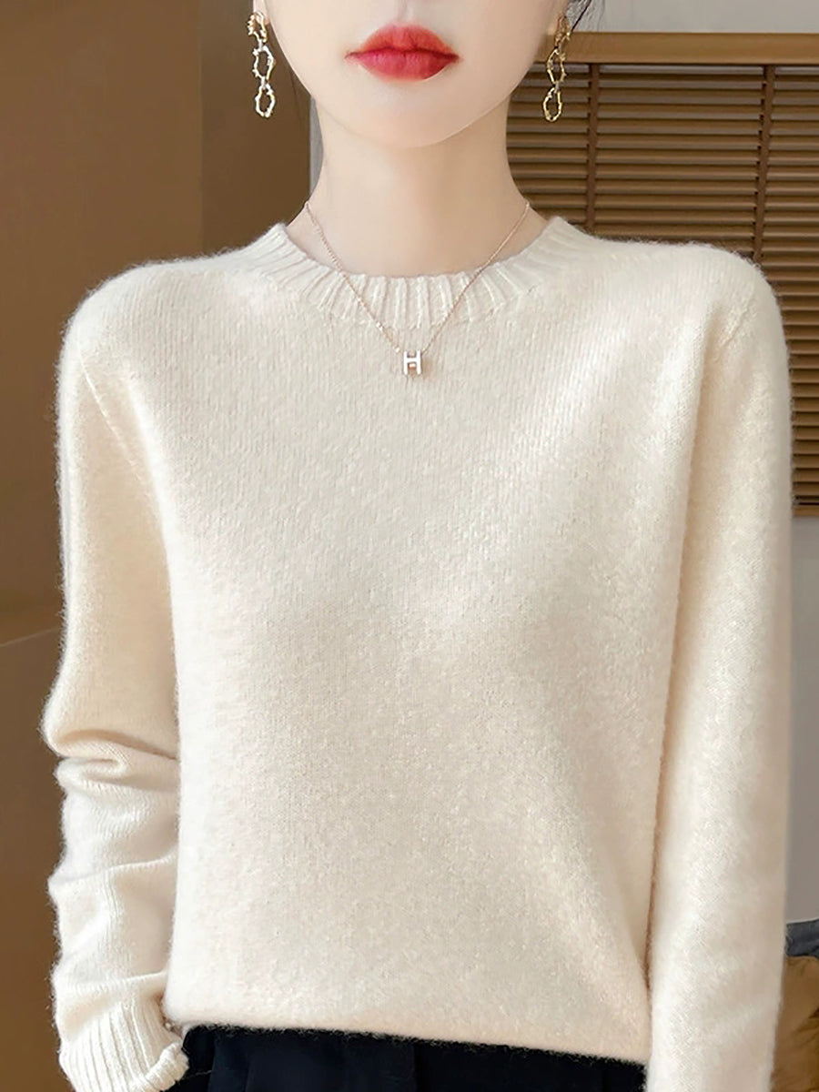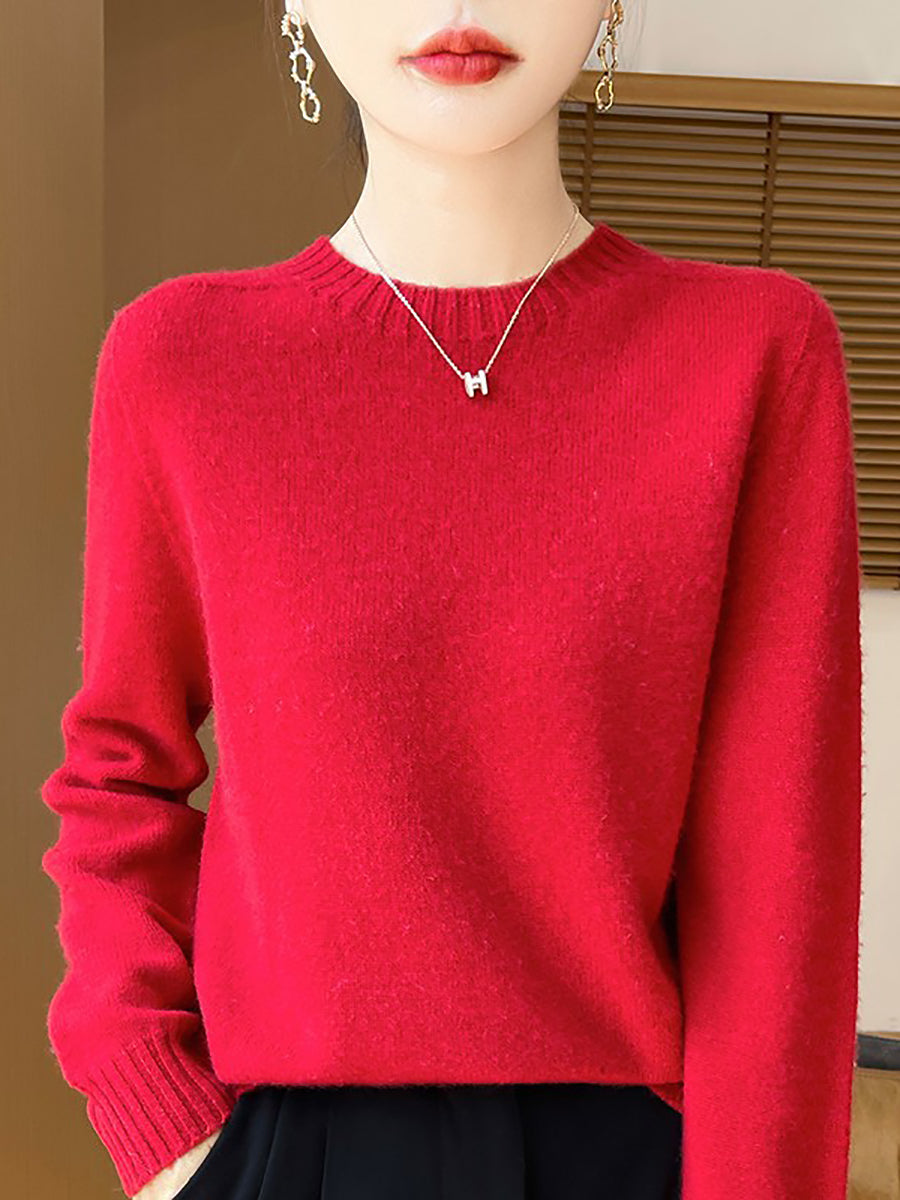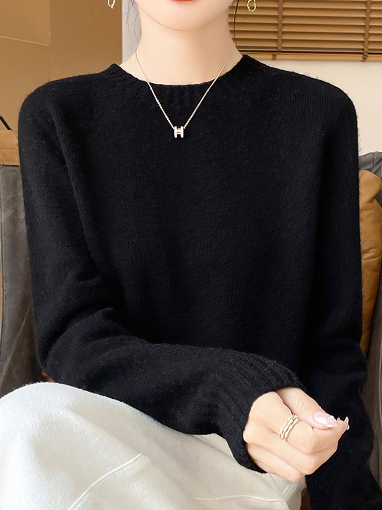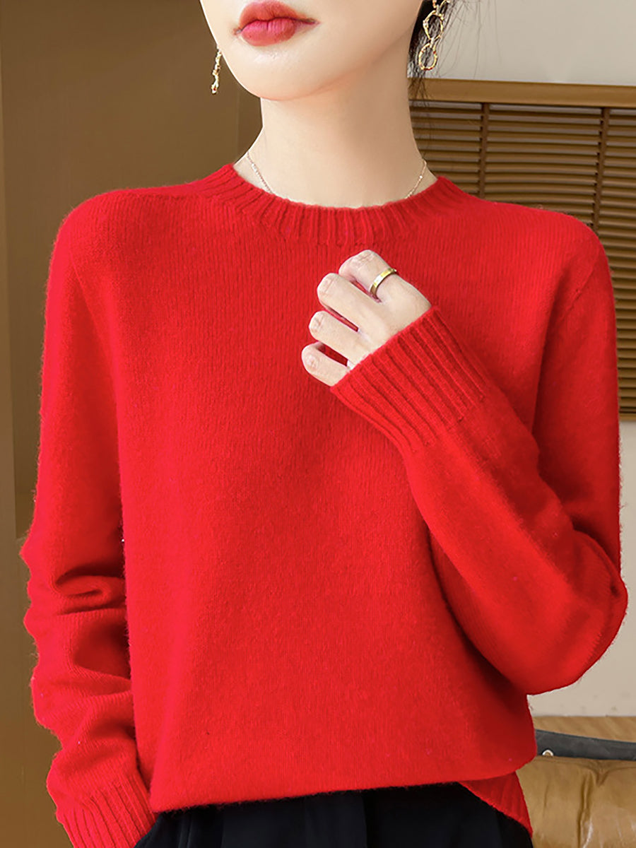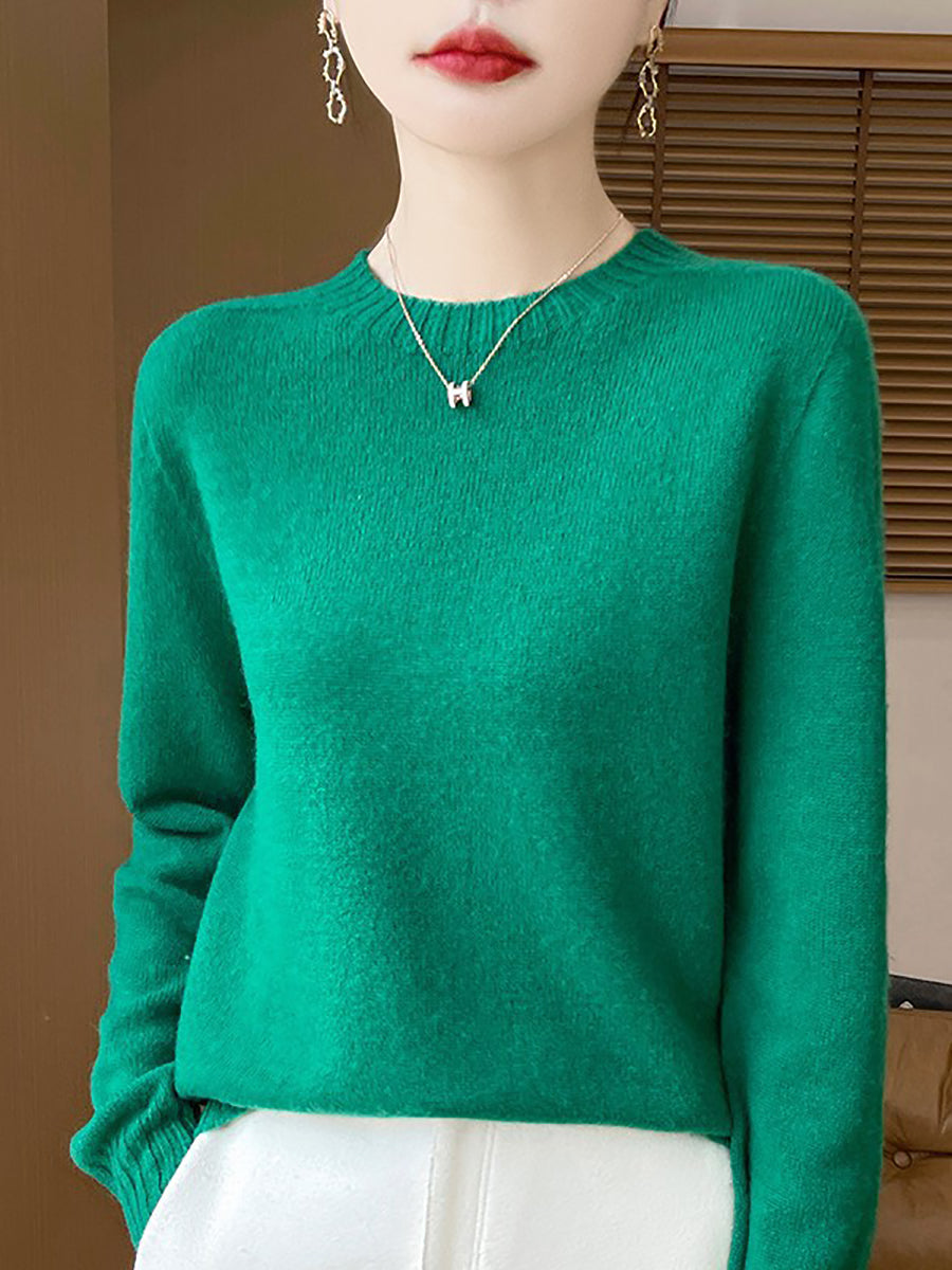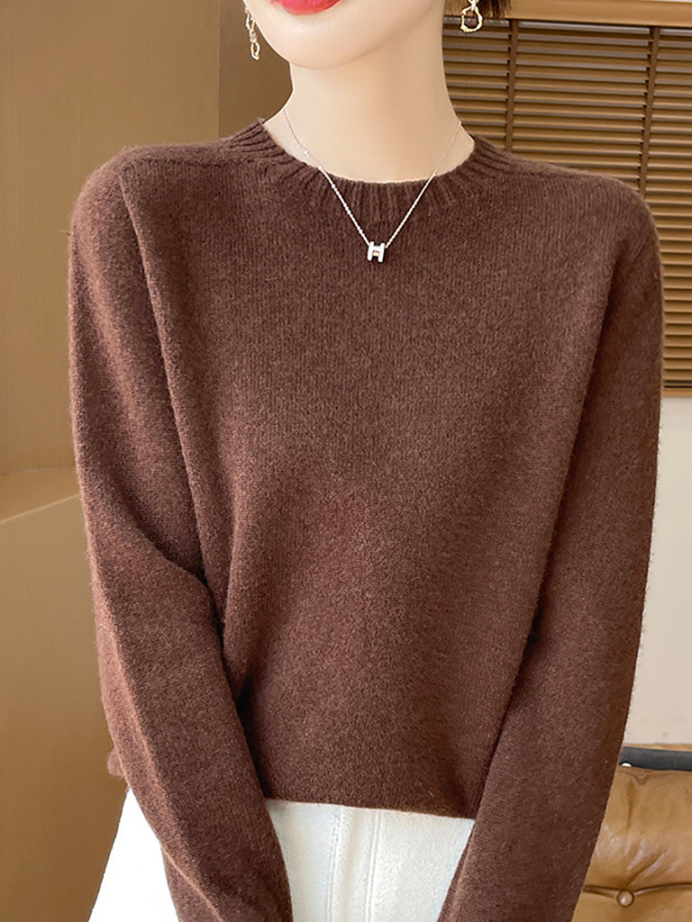 Ženski zimski ležerni pleteni pulover s O-izrezom u čistoj boji