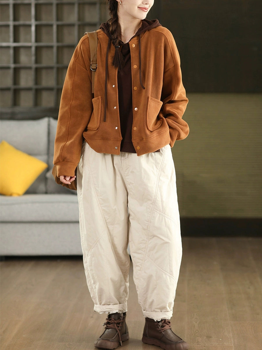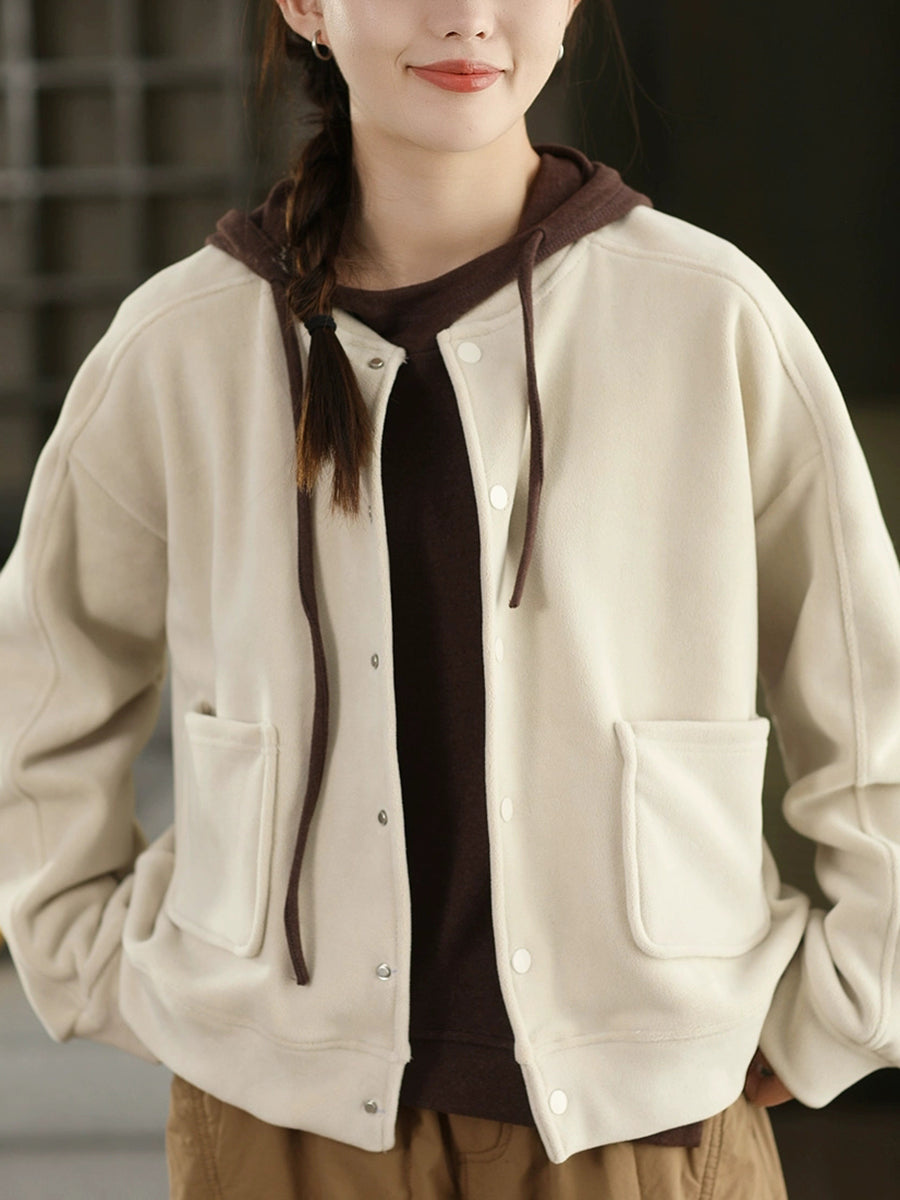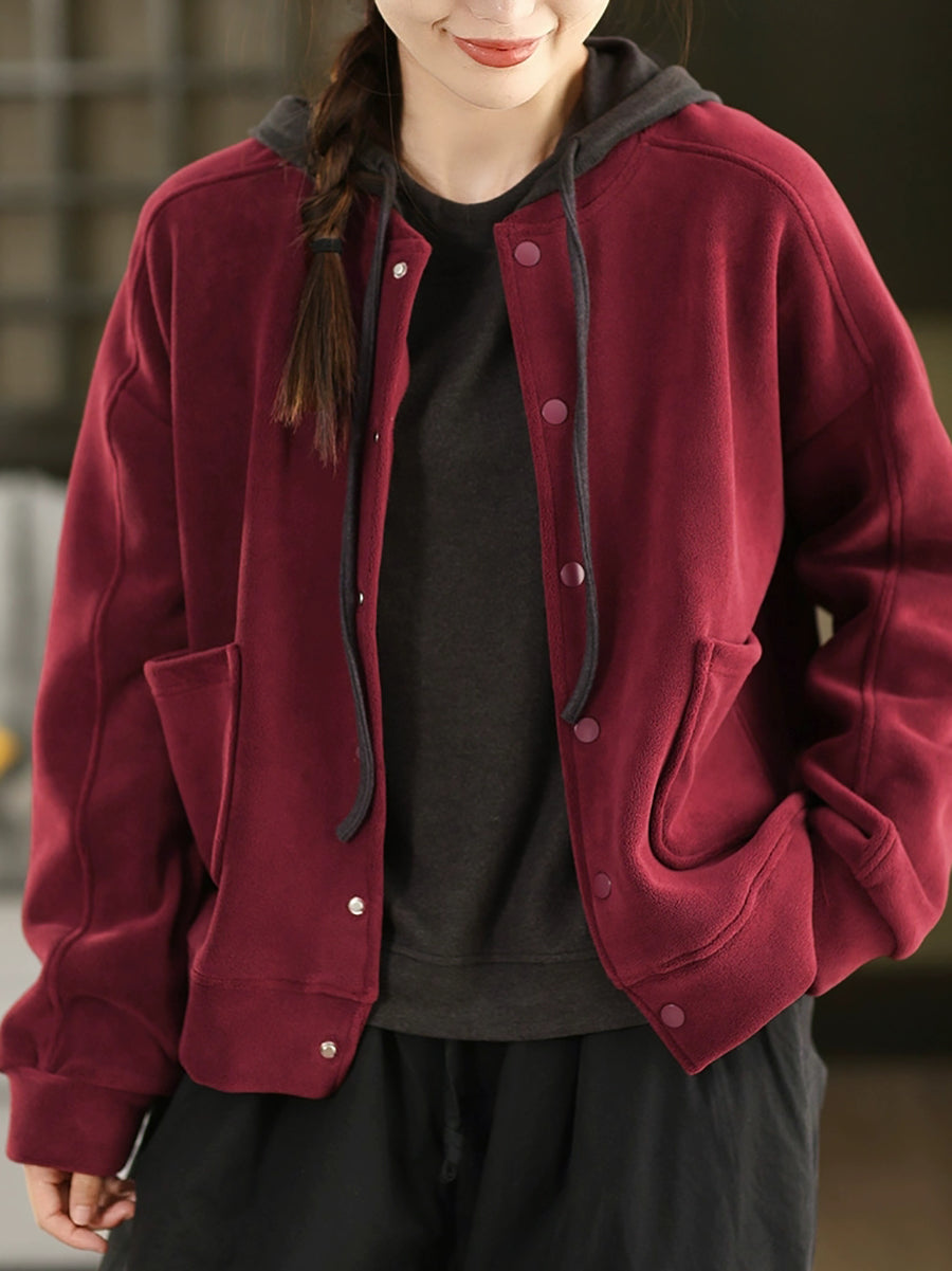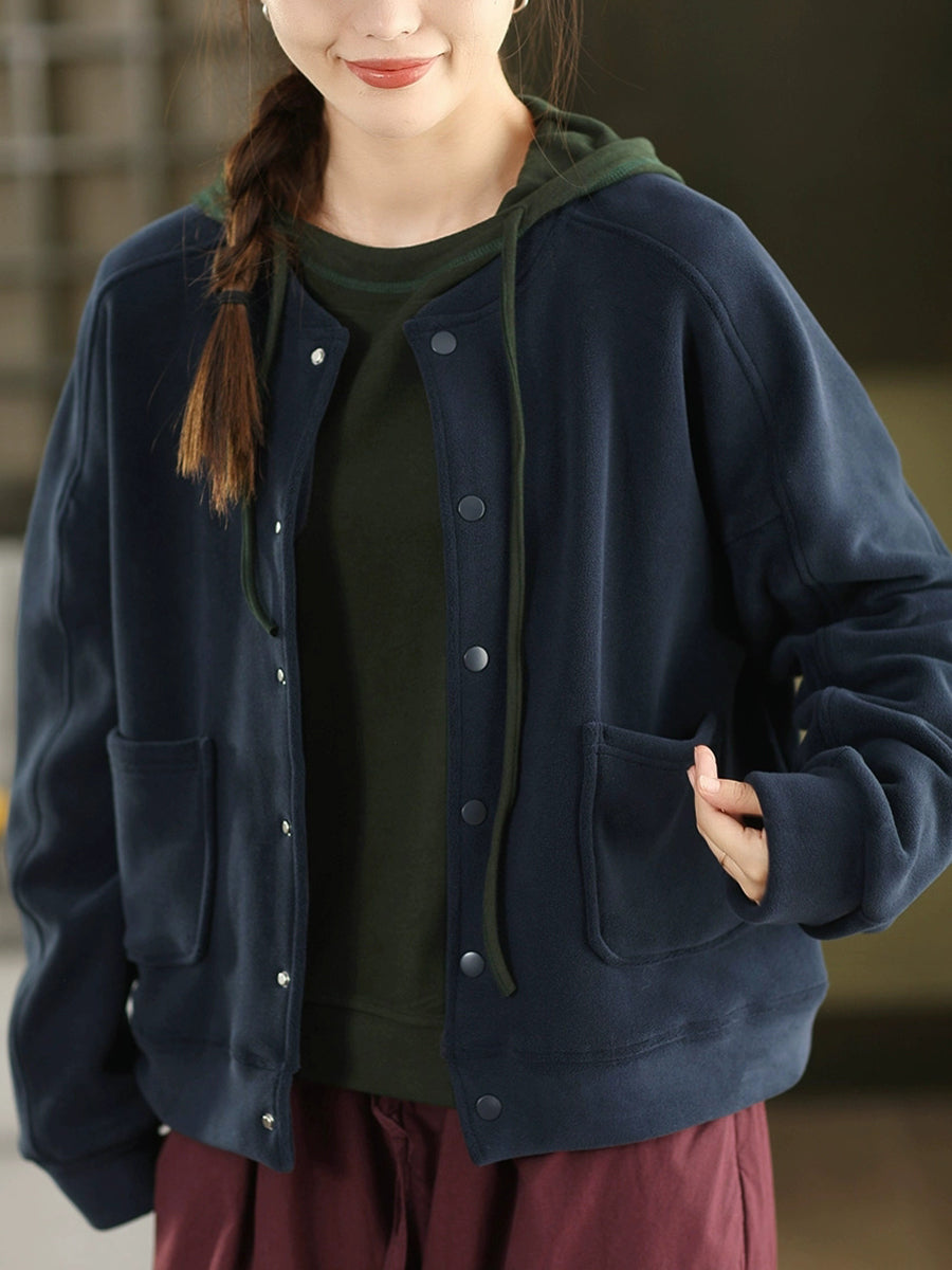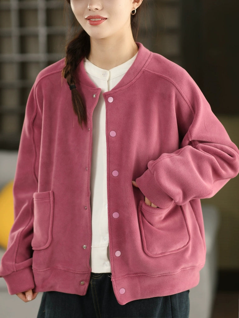 Ženski zimski ležerni flis kaput s O-izrezom u čistim bojama