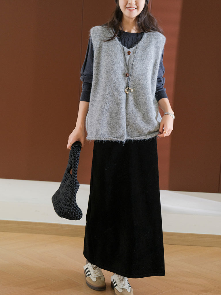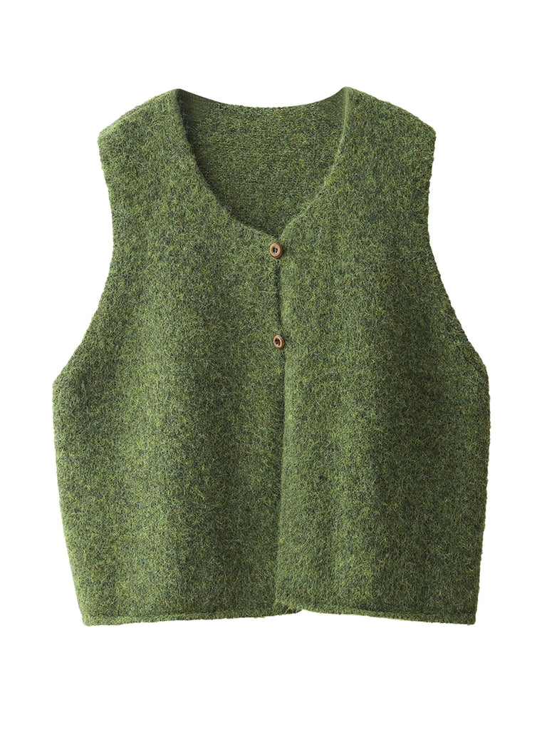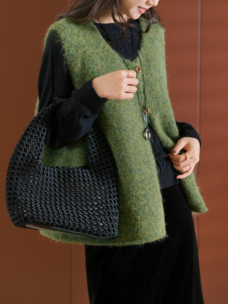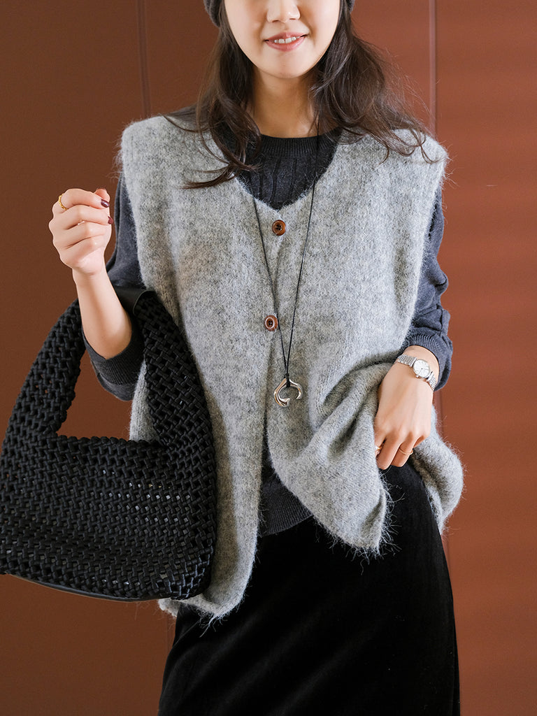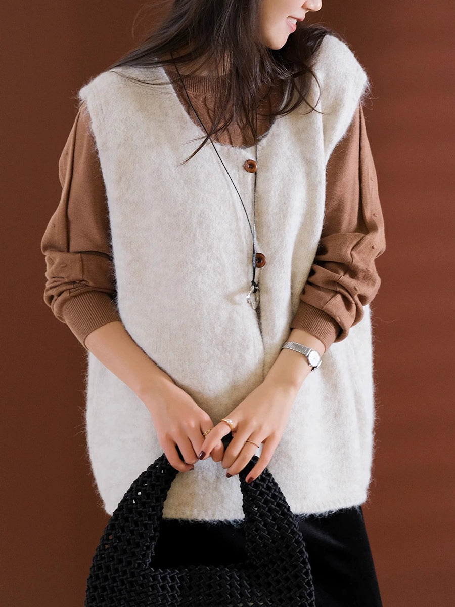 Ženski zimski ležerni vuneni prsluk s V-izrezom u čistoj boji