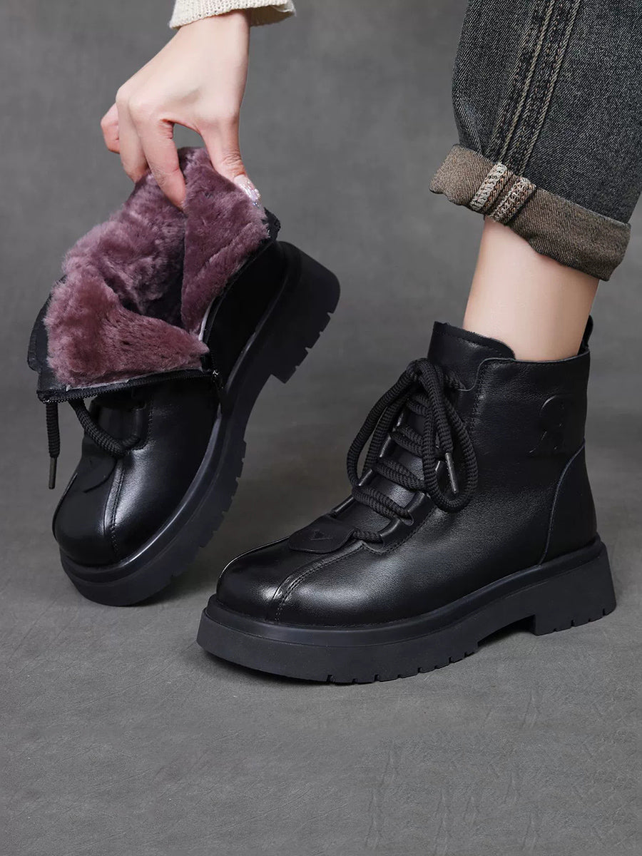 Ženske zimske čizme do gležnjeva od prave kože s flis podstavom