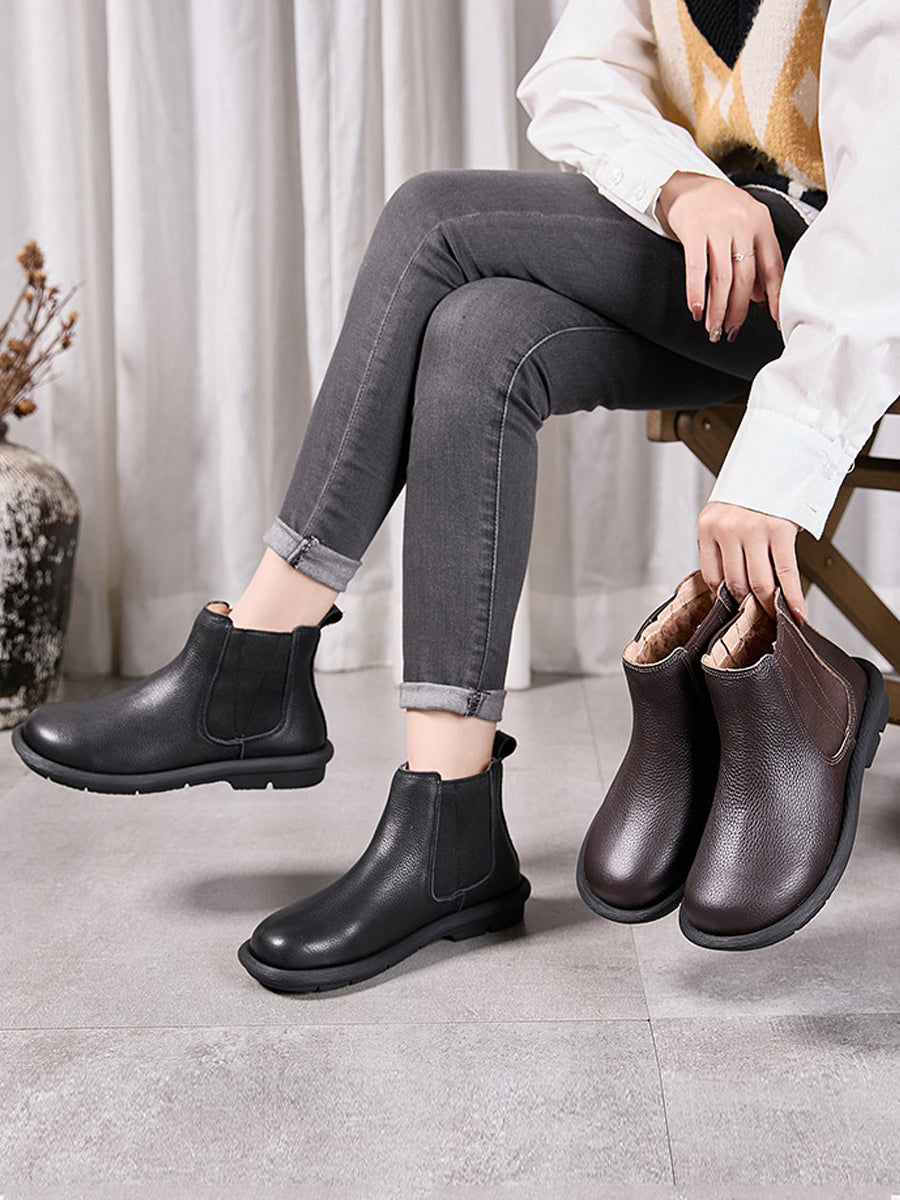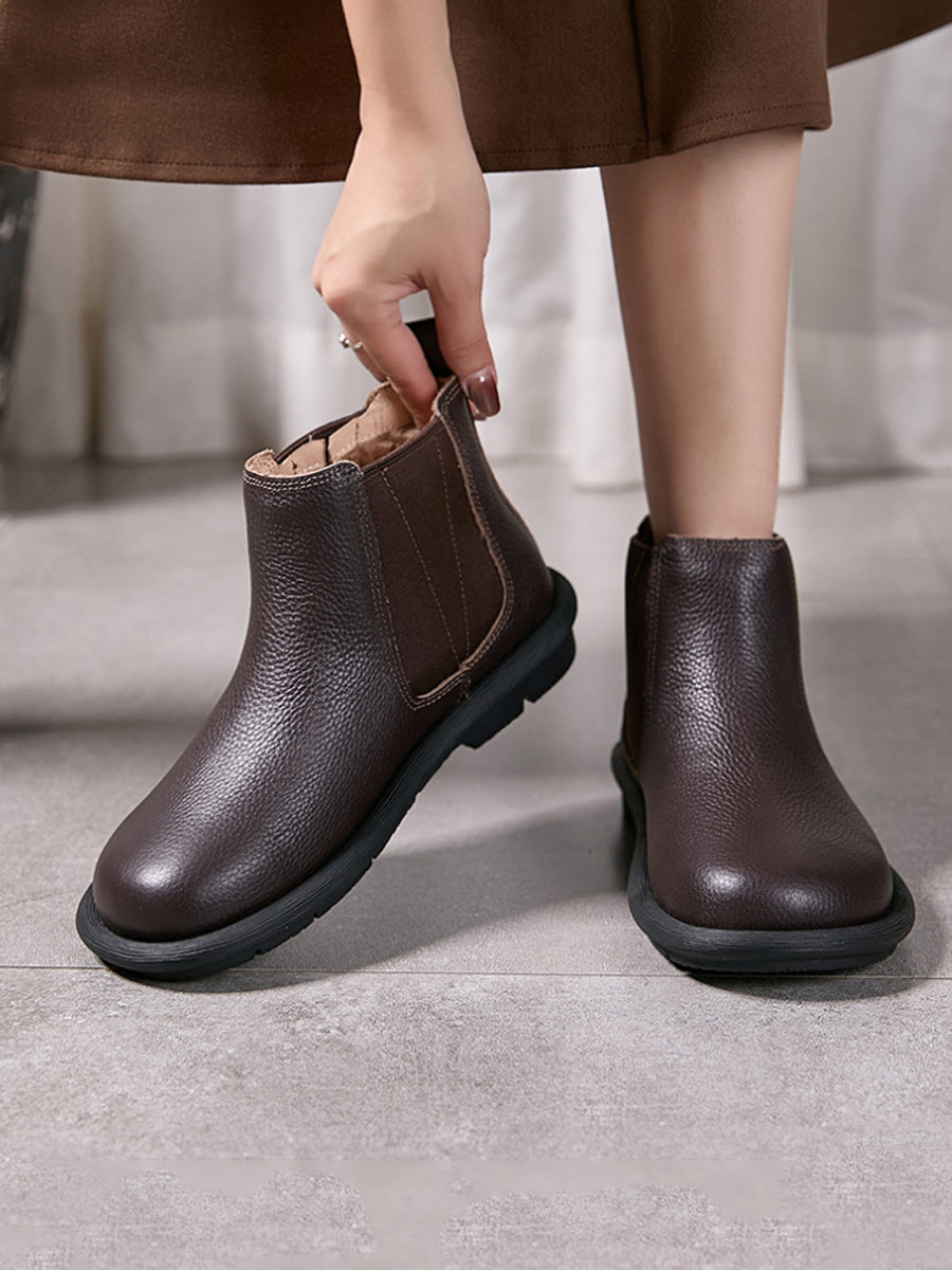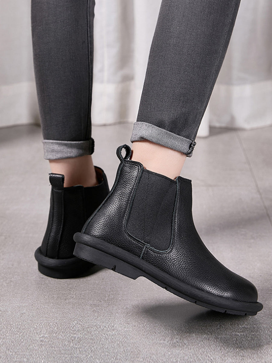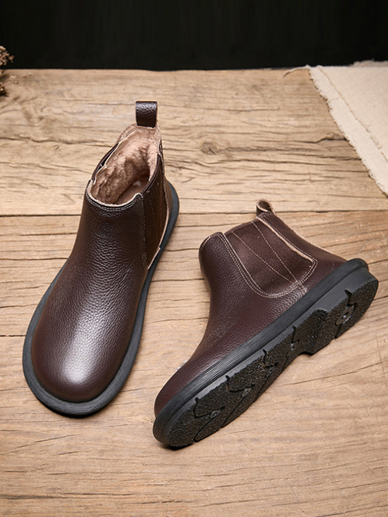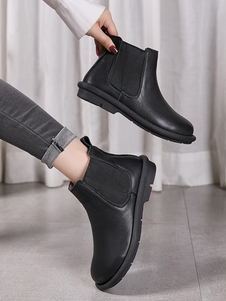 Ženske zimske Chelsea čizme od prave kože s flis podstavom