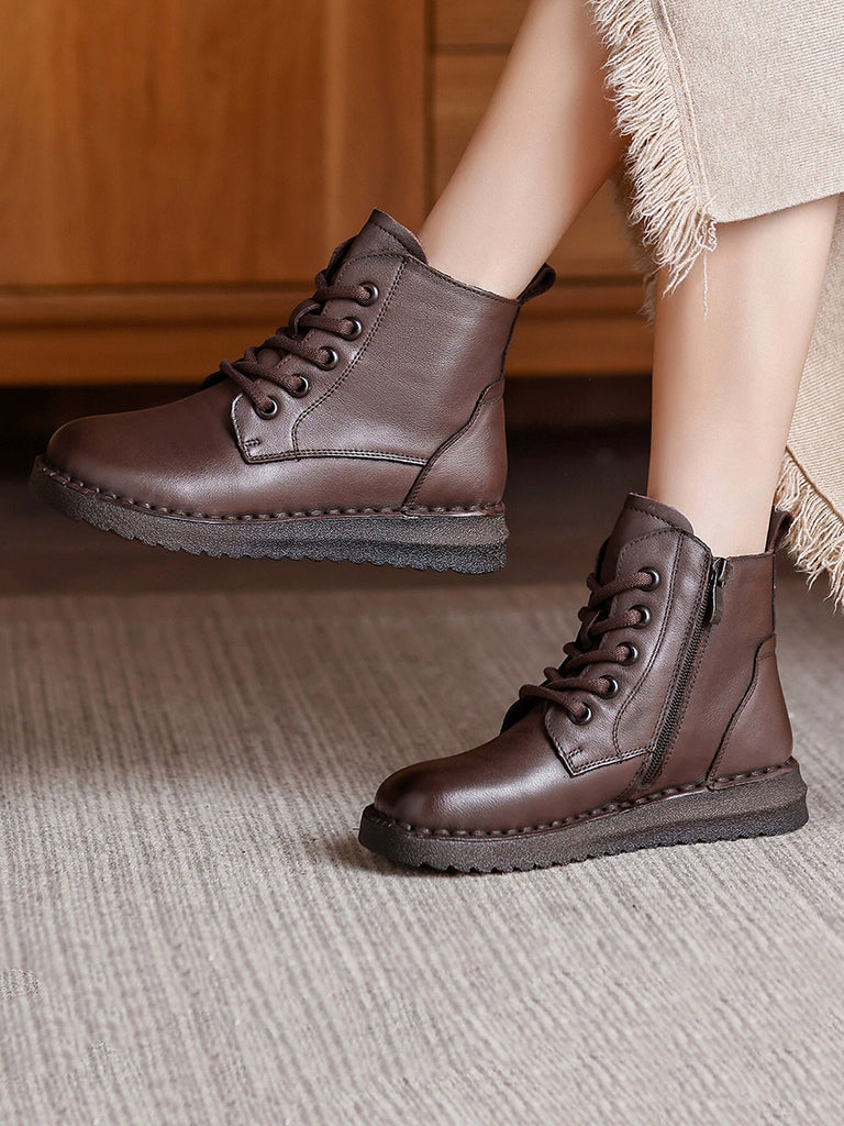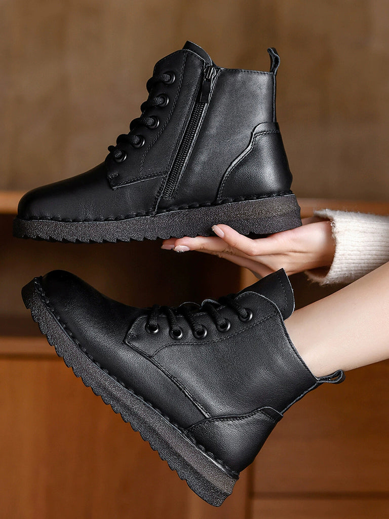 Ženske zimske martin čizme od prave kože s flis podstavom