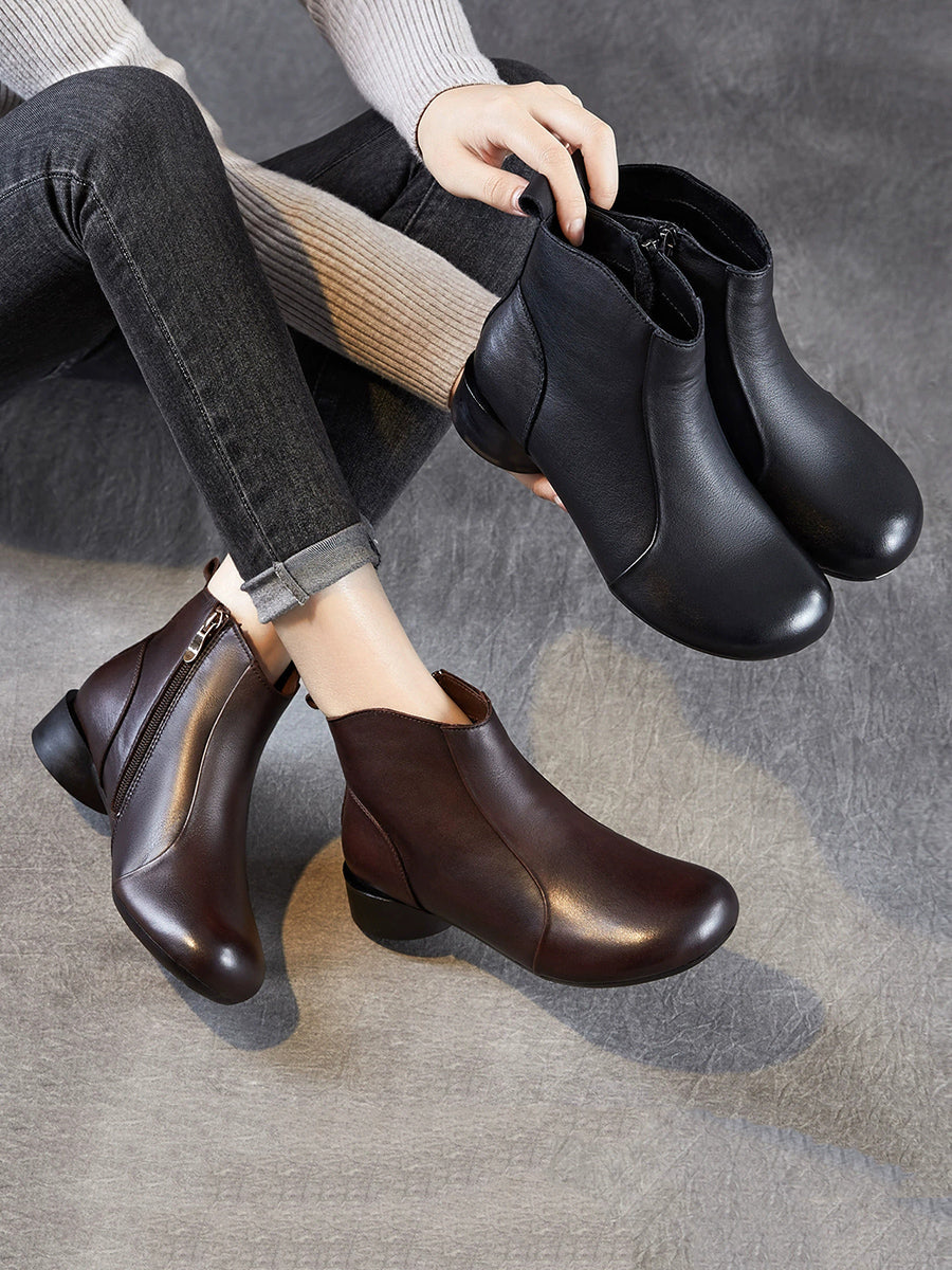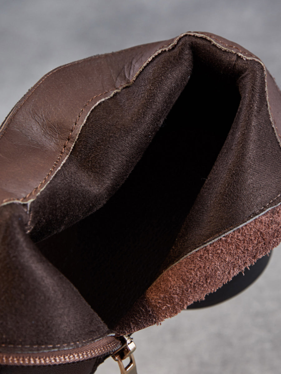 Ženske zimske čizme od prave kože s niskom petom