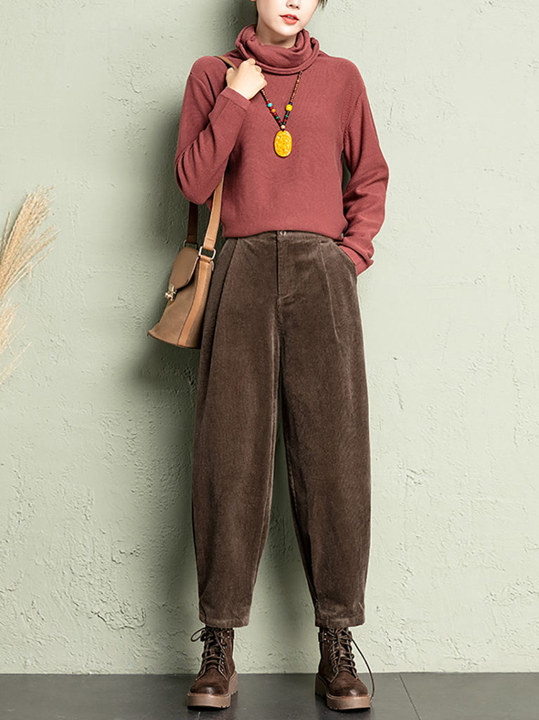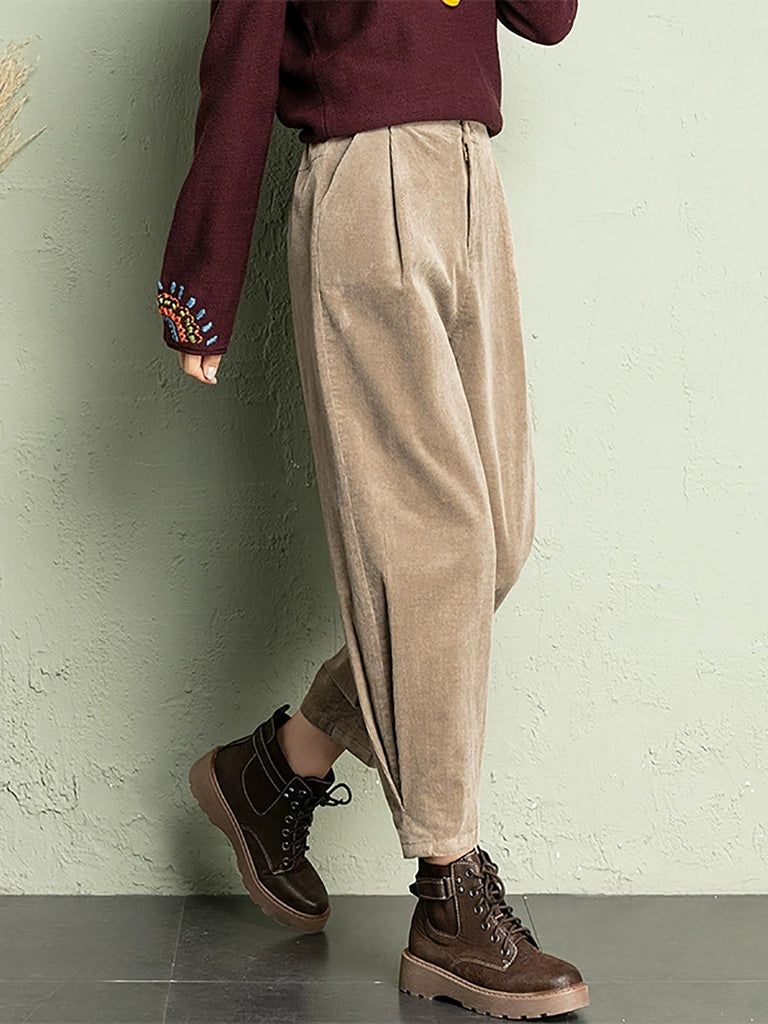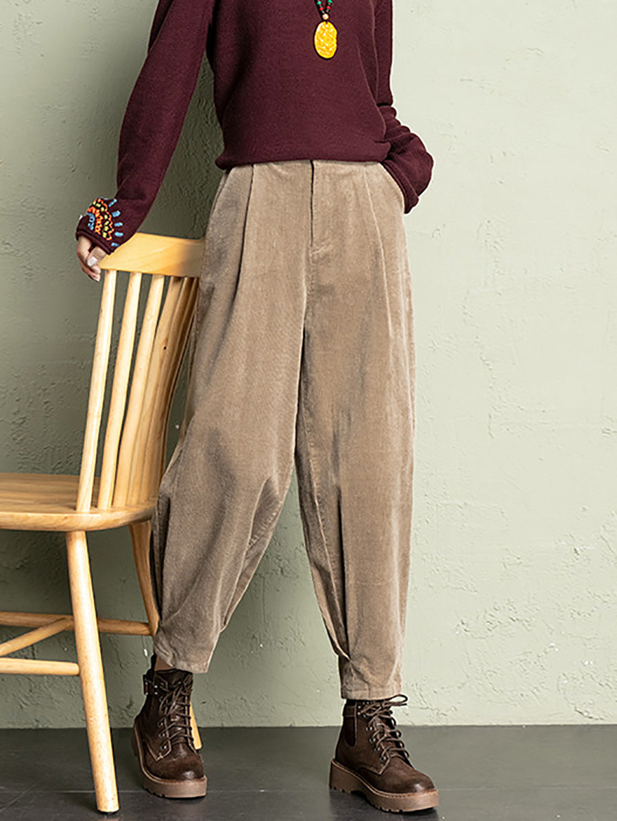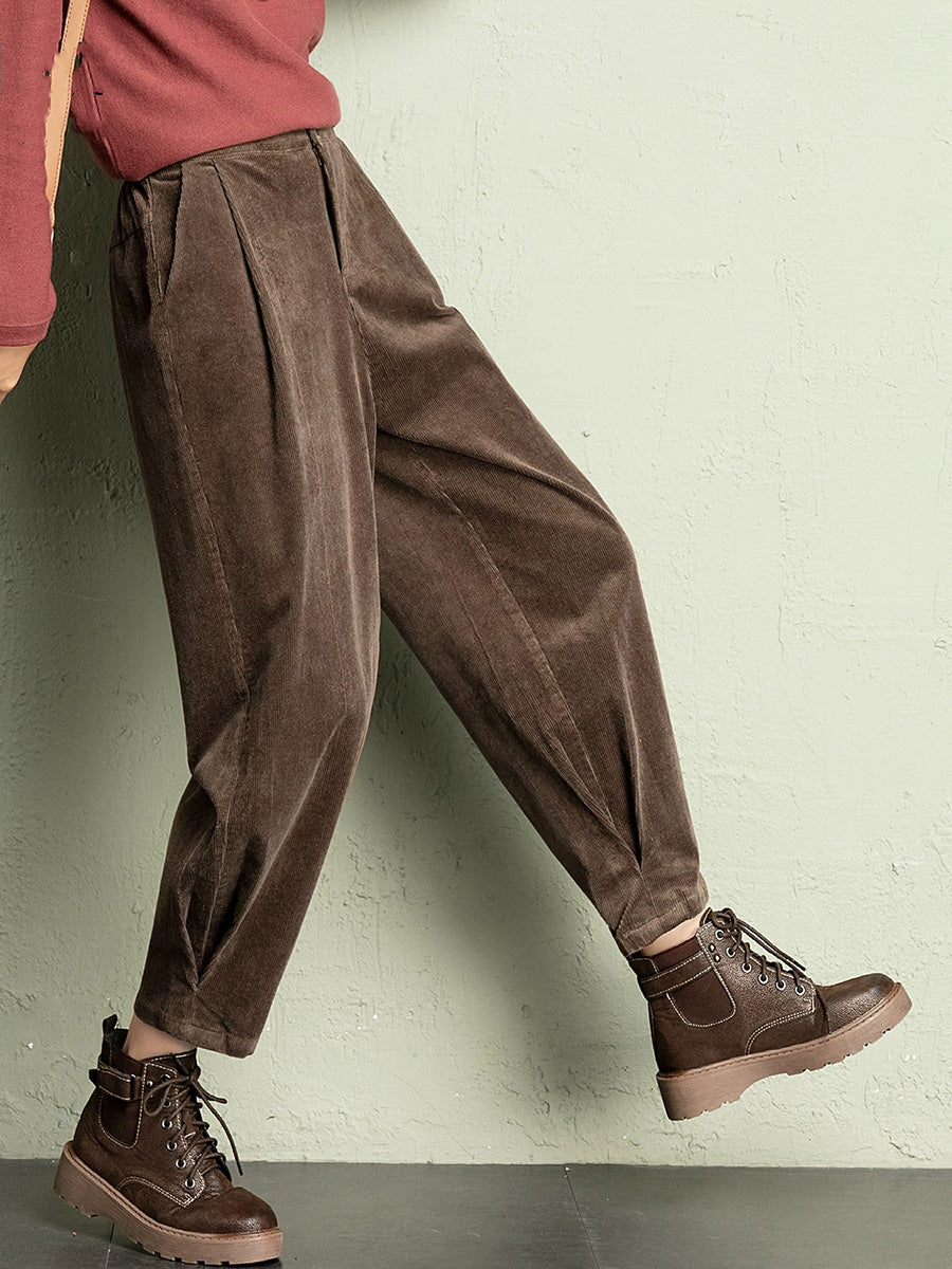 Ženske zimske harem hlače od korduroja u čistoj boji