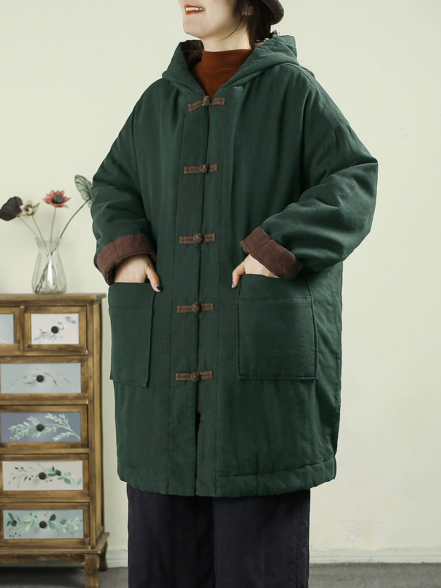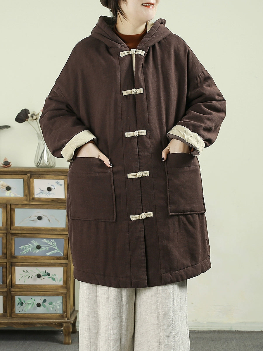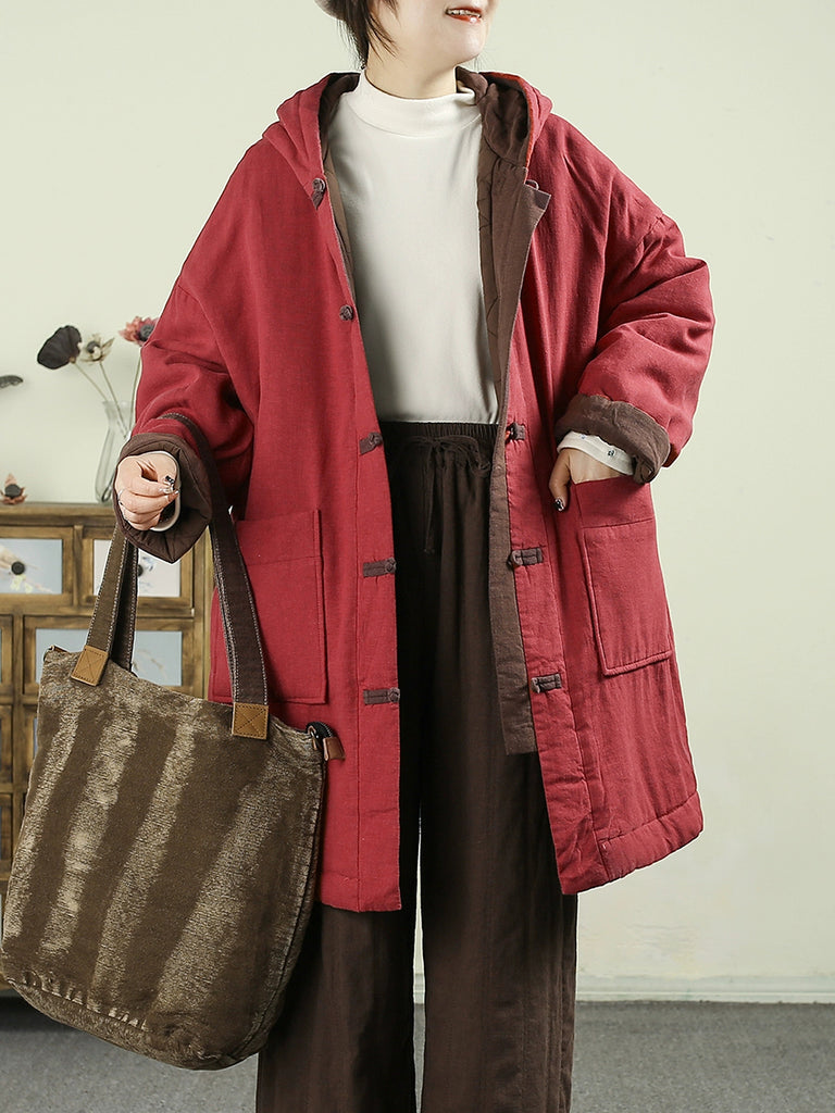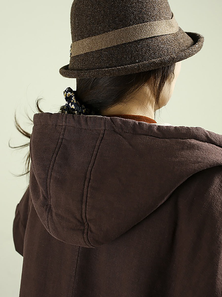 Ženski zimski kaput s kapuljačom od 100% lana, čistog izgleda