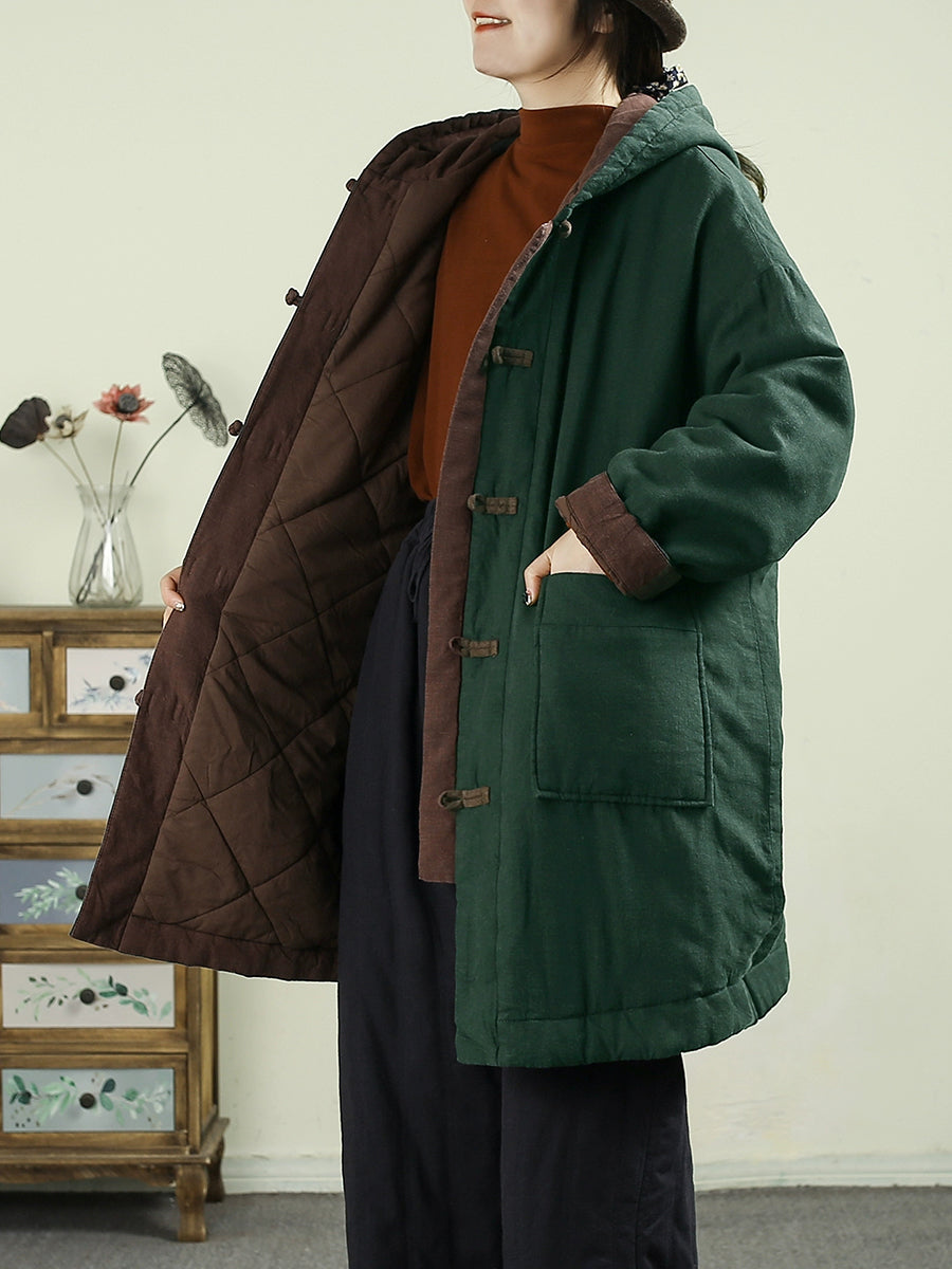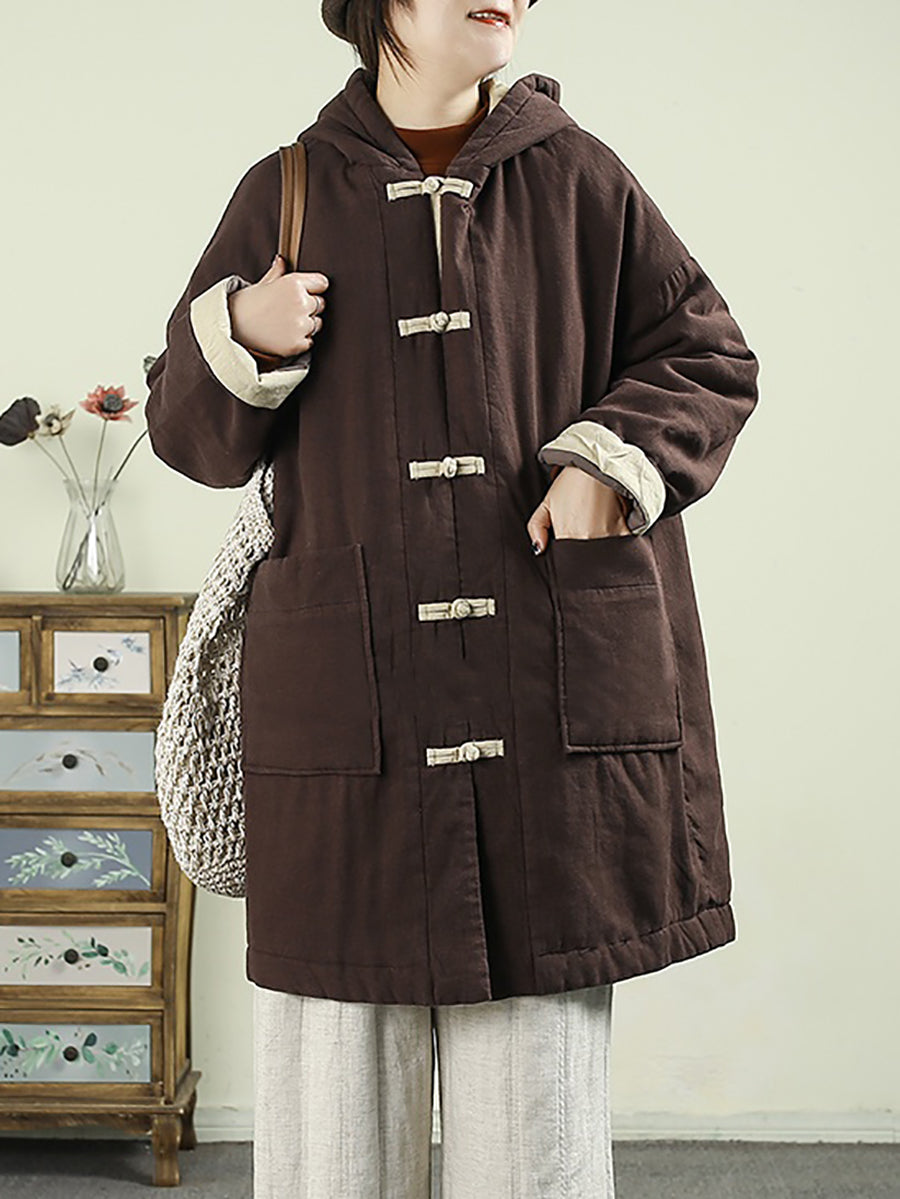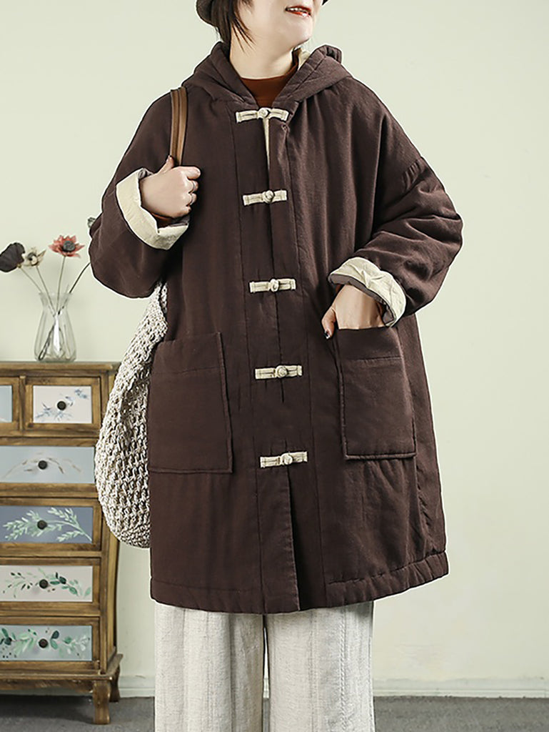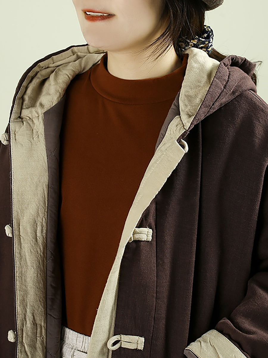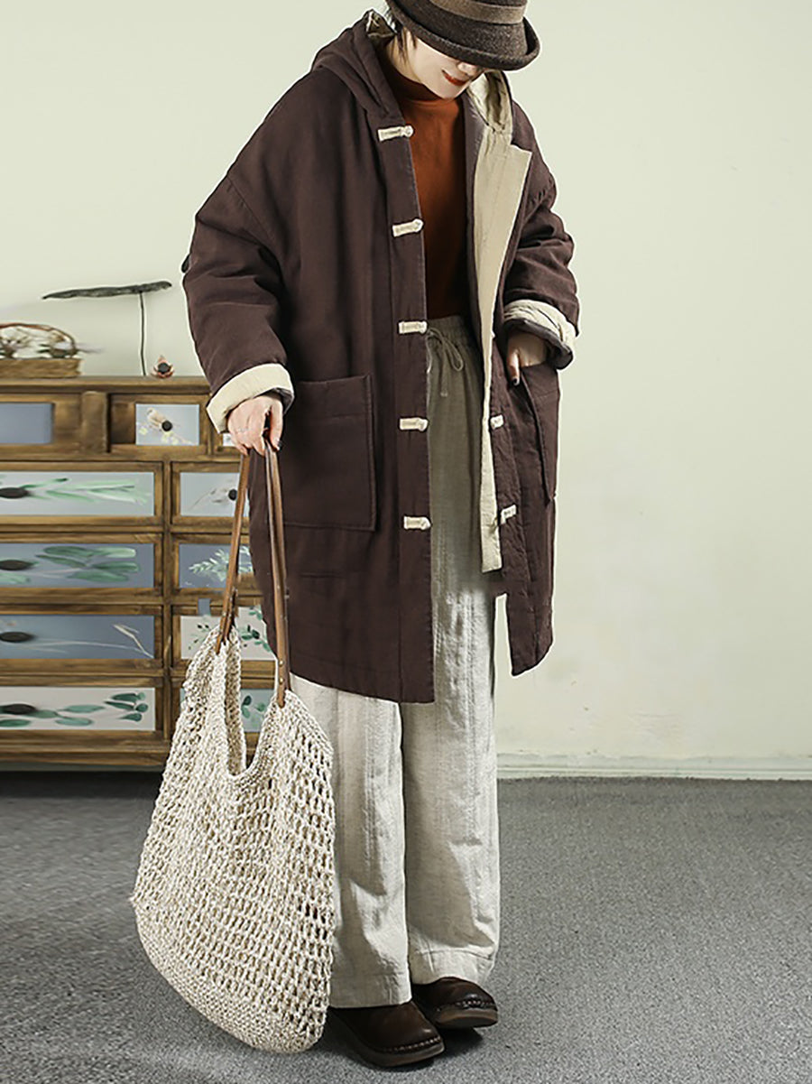 Ženski zimski kaput s kapuljačom od 100% lana, čistog izgleda