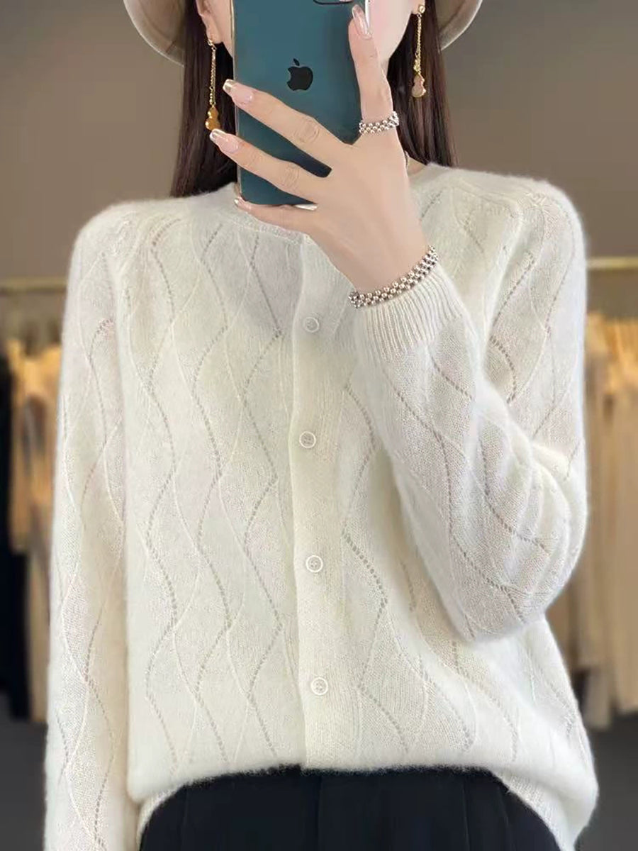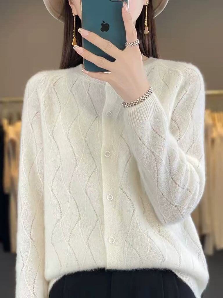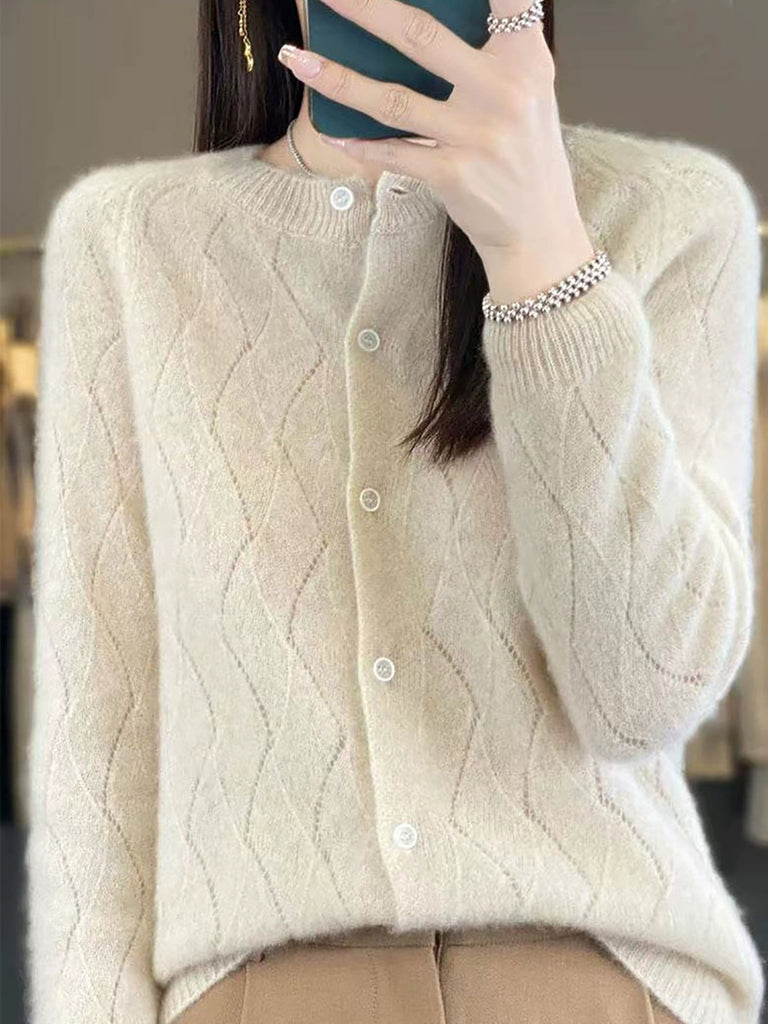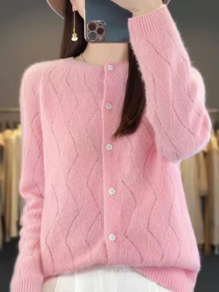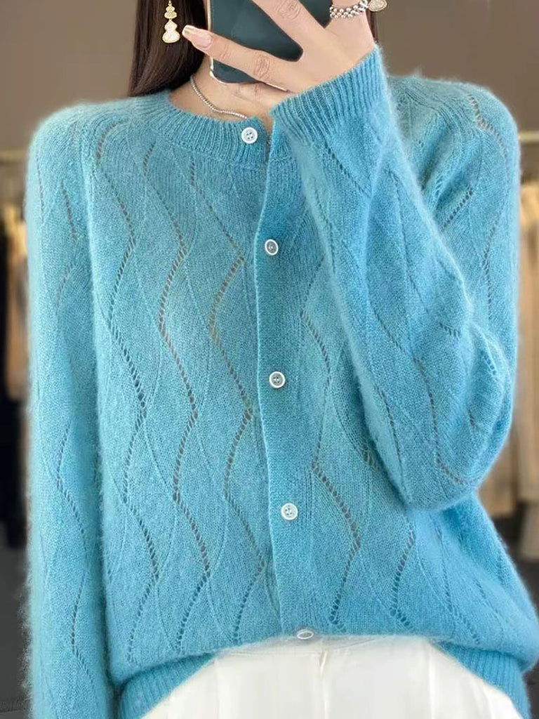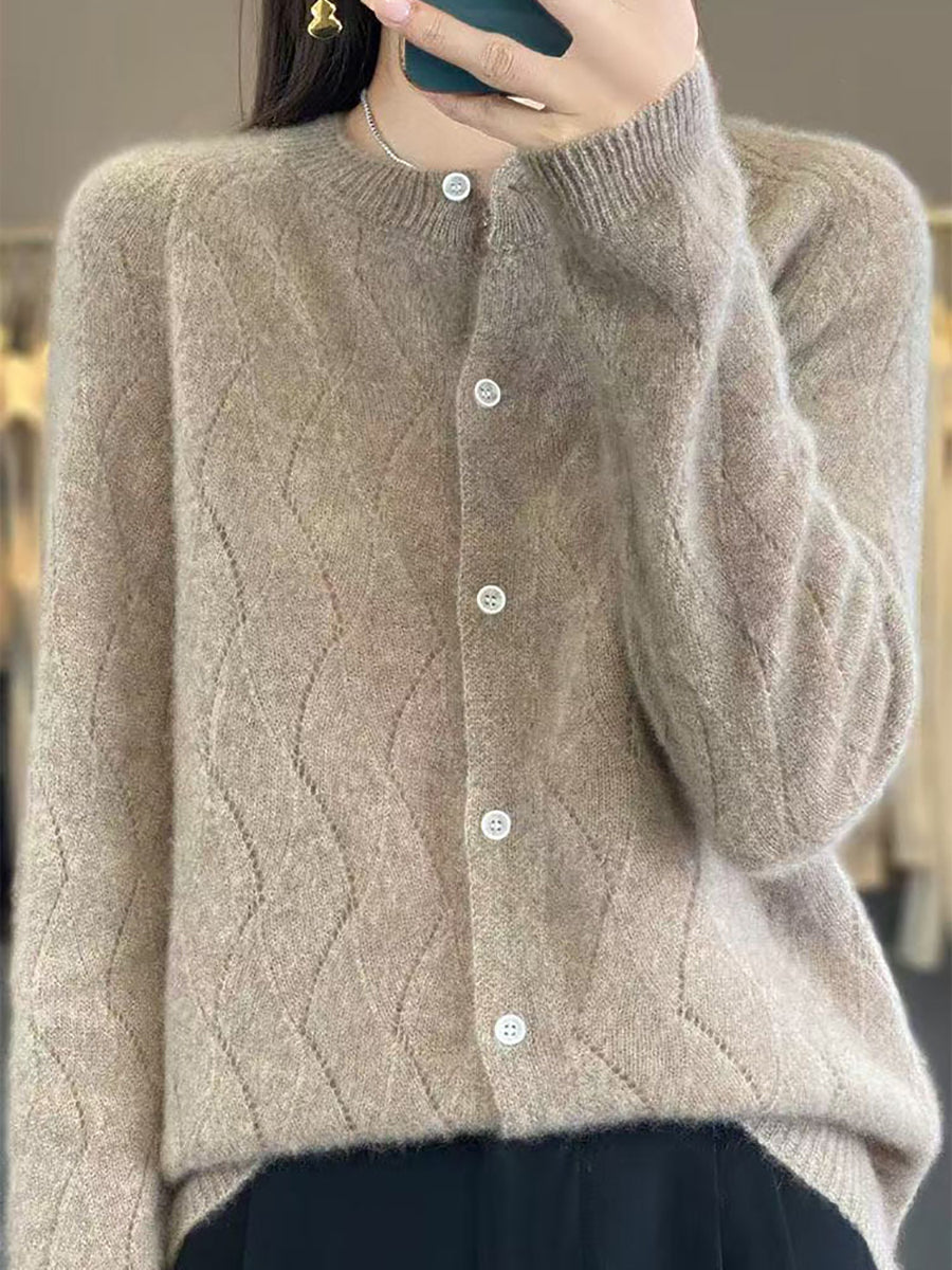 Ženski zimski pleteni kardigan s O-izrezom u čistoj boji