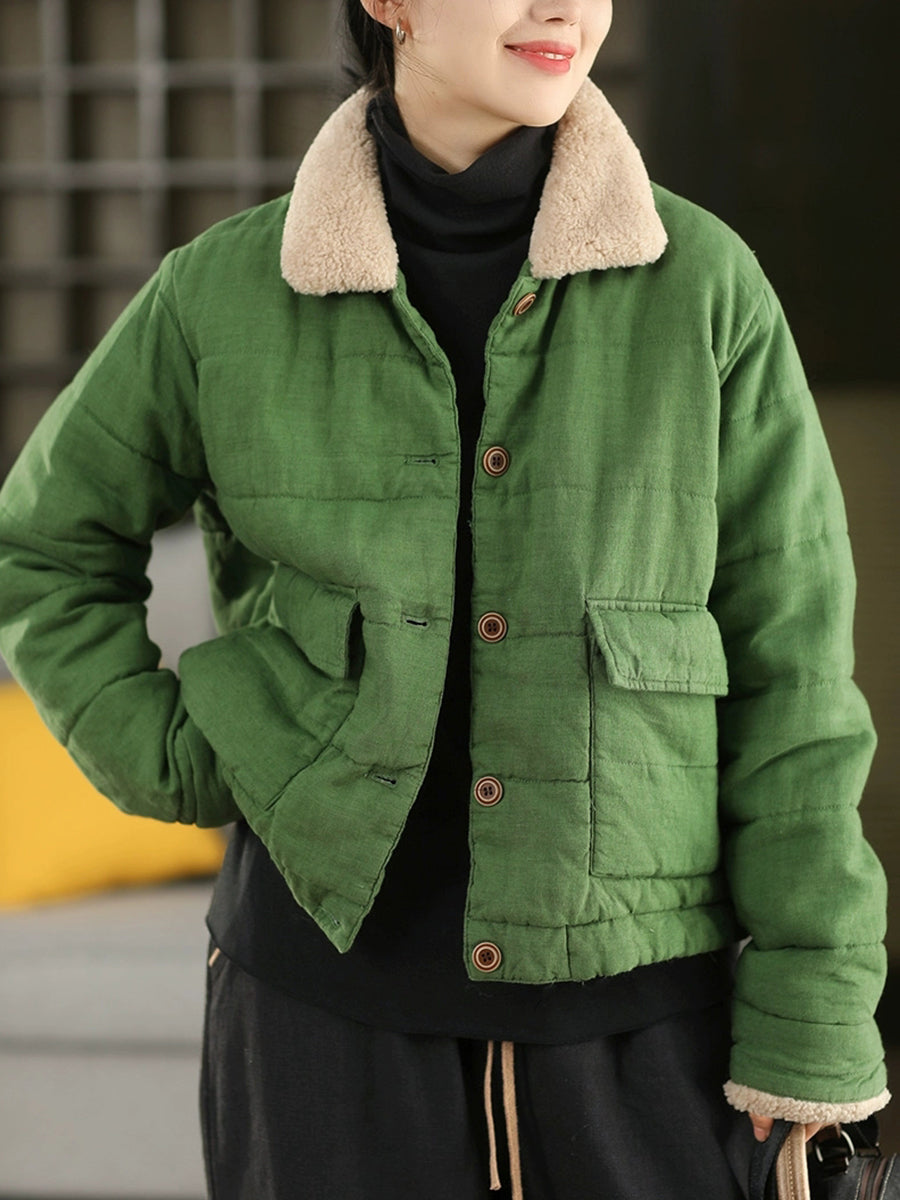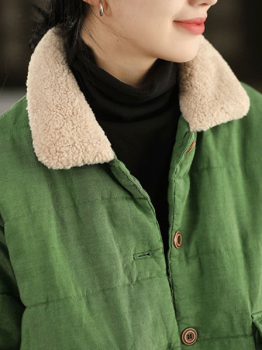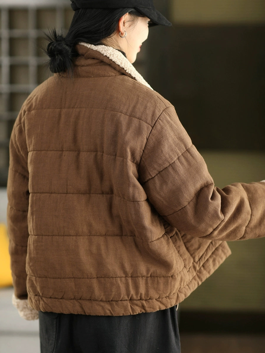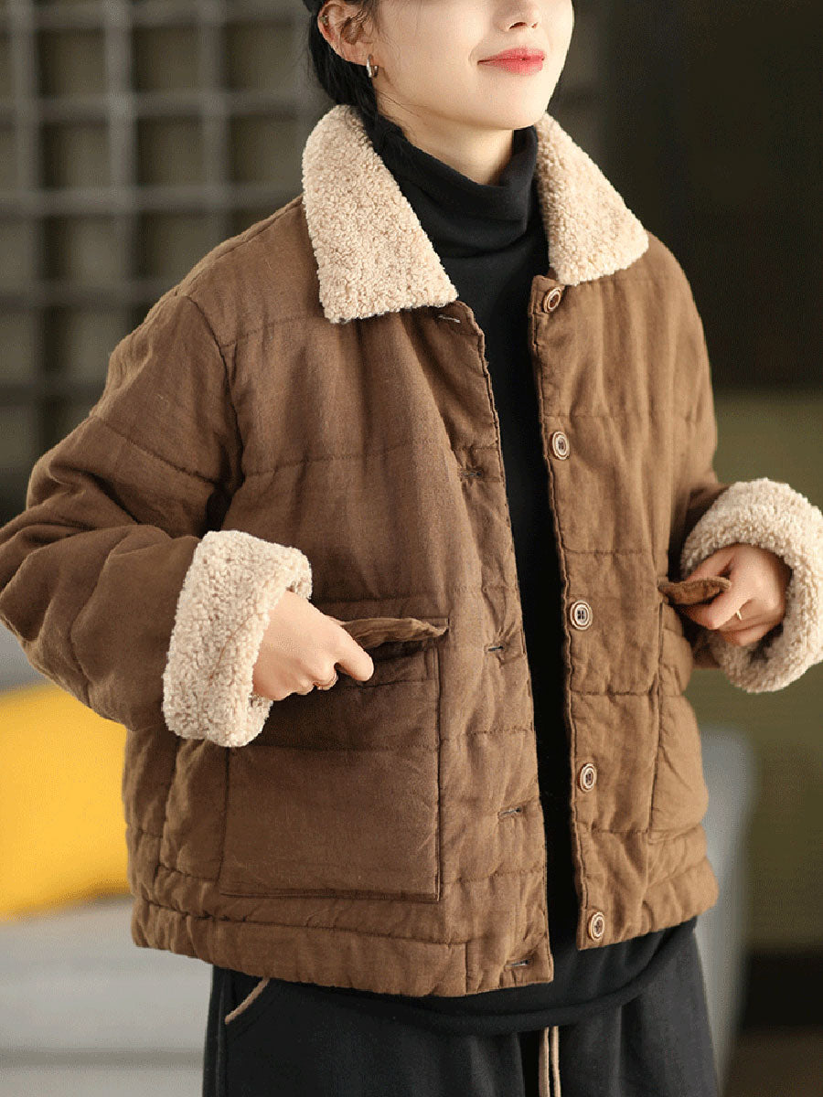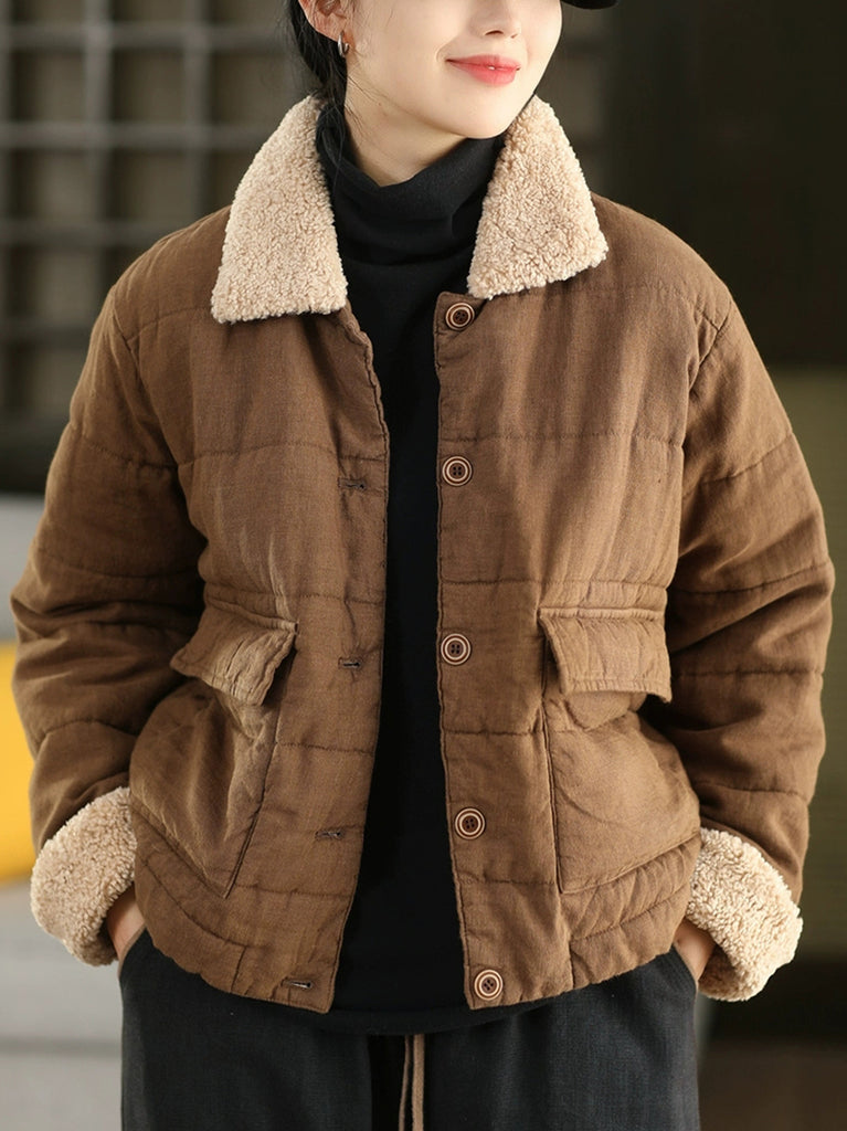 Ženski zimski retro kaput od 100% lanenog flisa s uzorkom