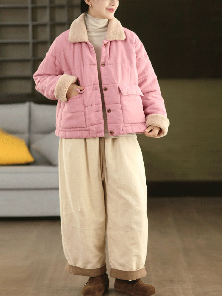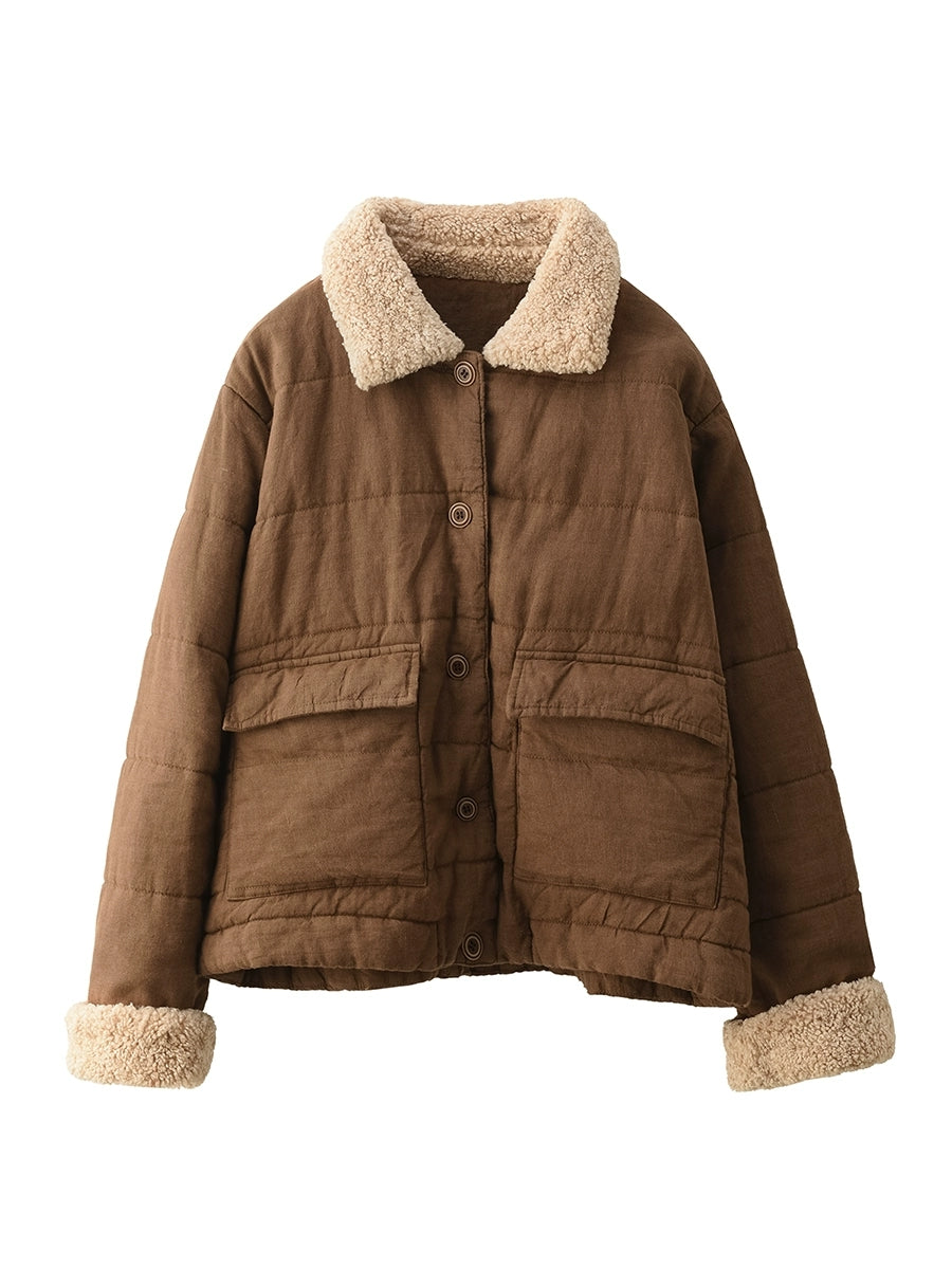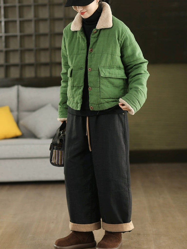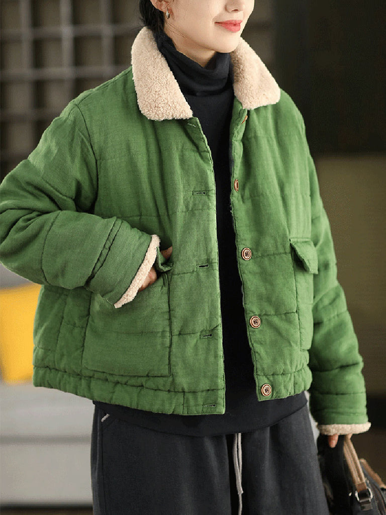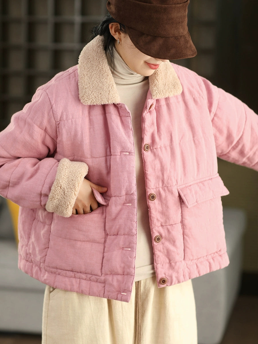 Ženski zimski retro kaput od 100% lanenog flisa s uzorkom