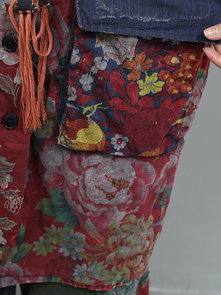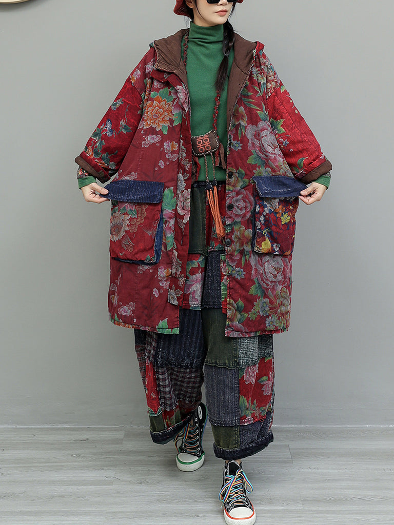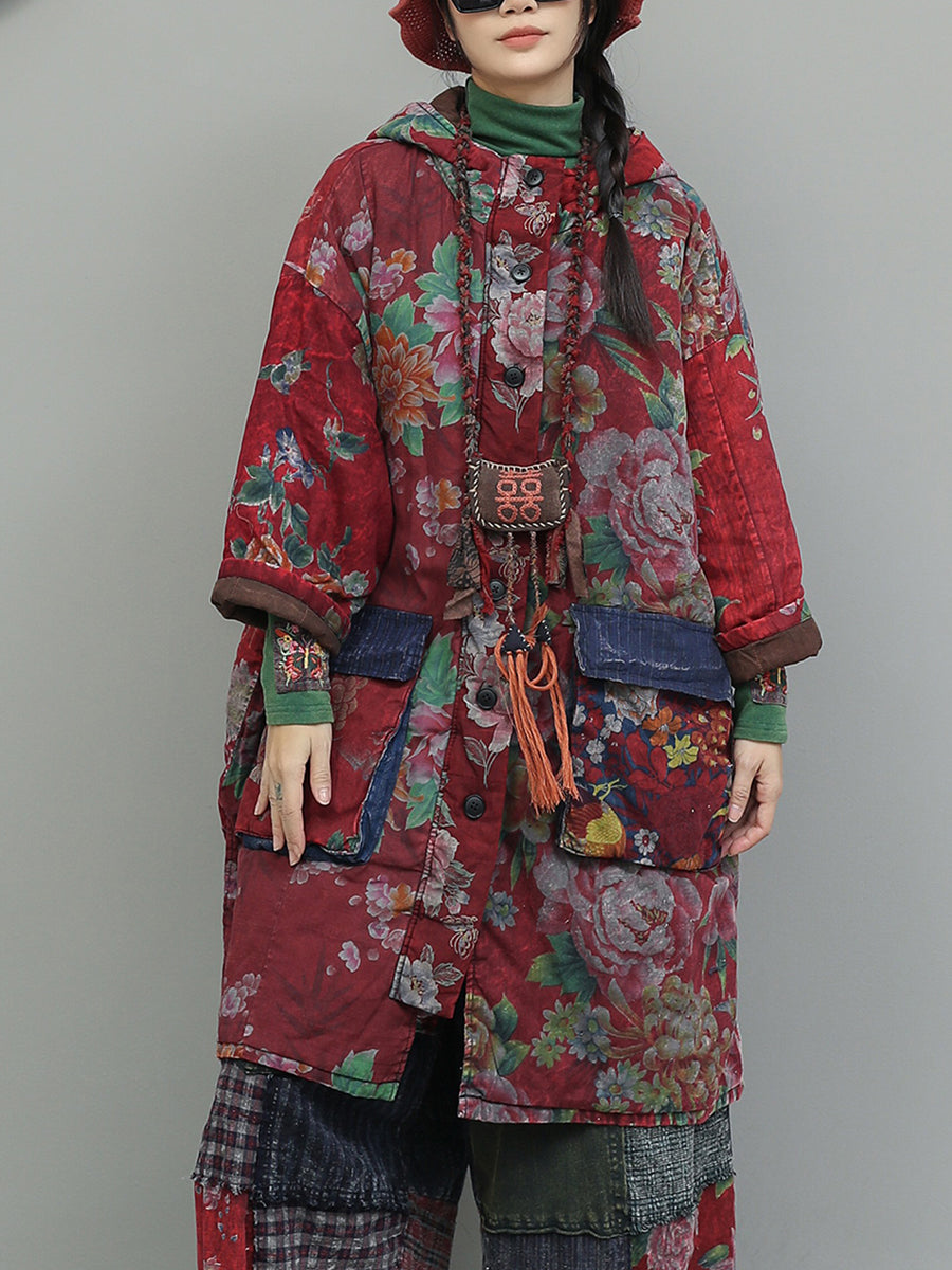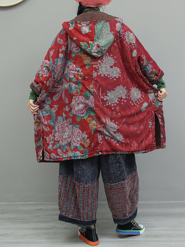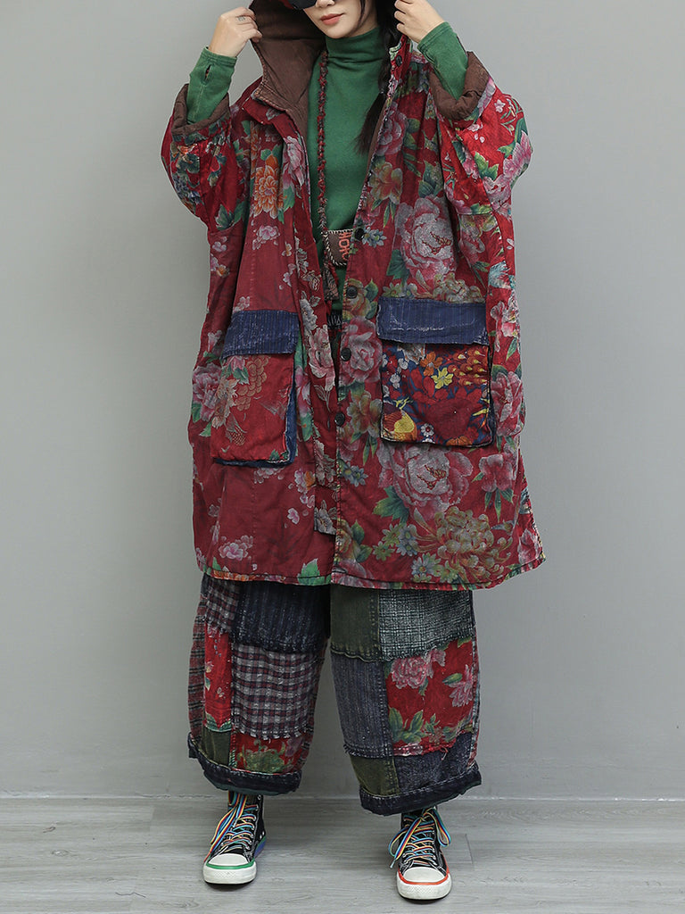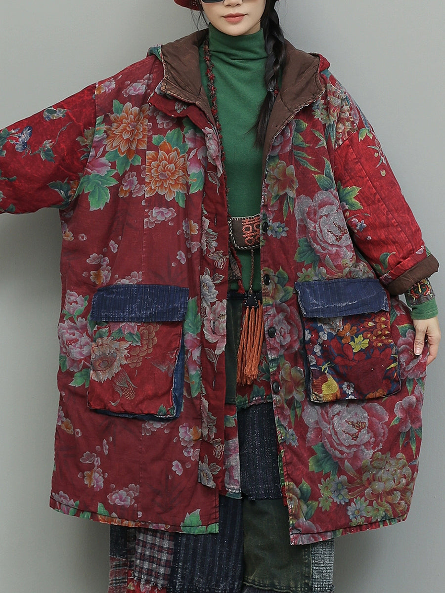 Ženski zimski retro pamučni kaput s cvjetnim uzorkom