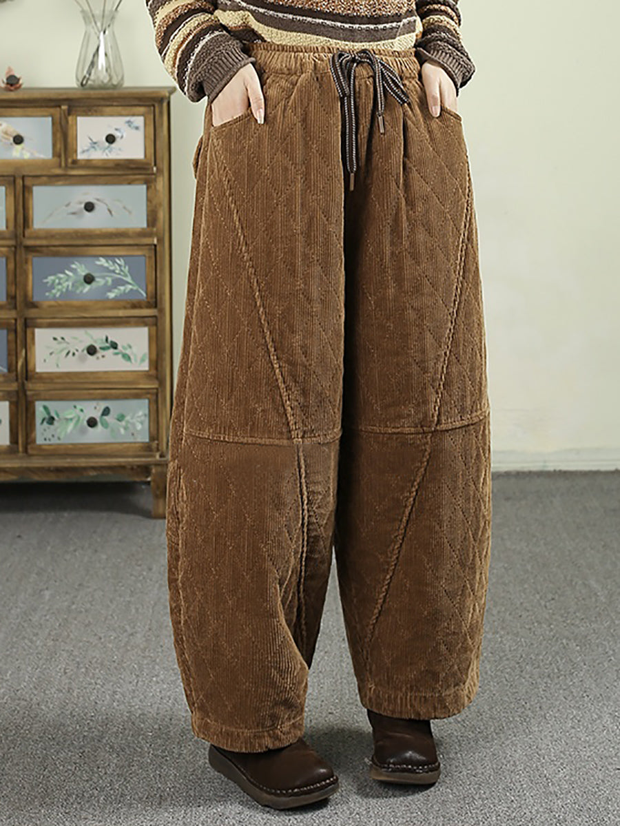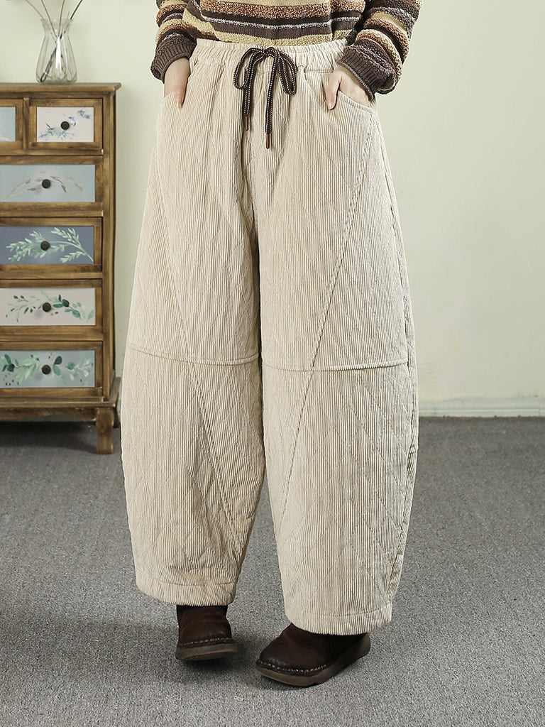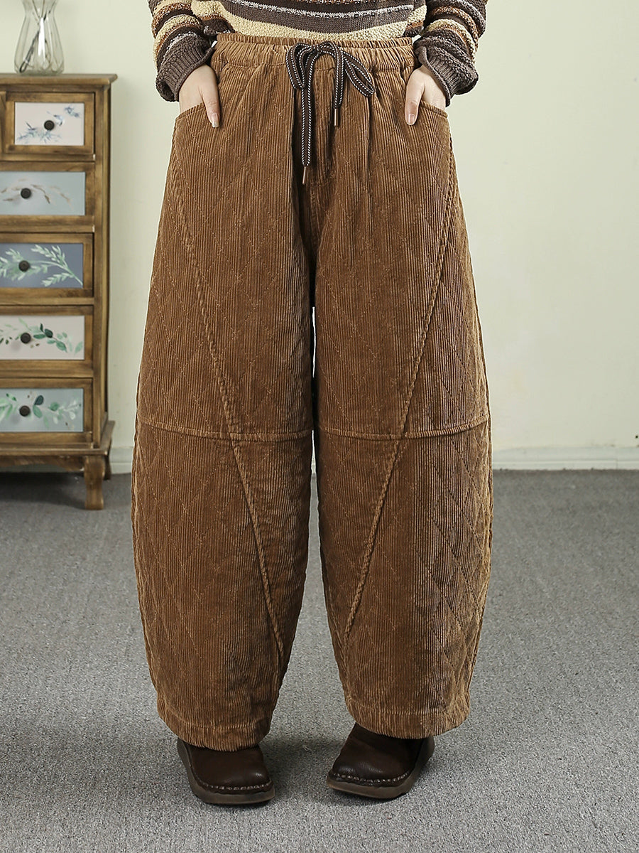 Ženske zimske retro harem hlače od čistog korduroja s podstavom