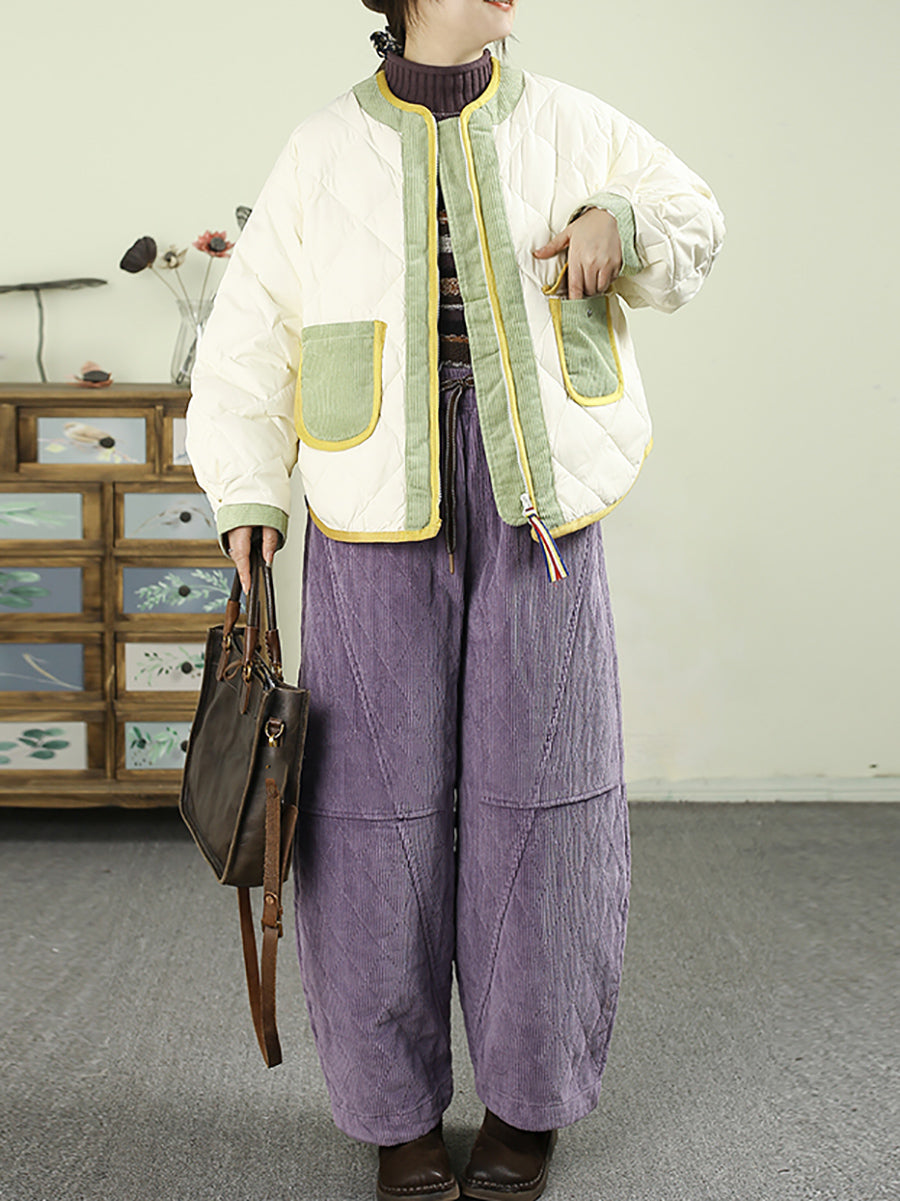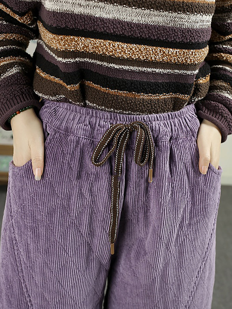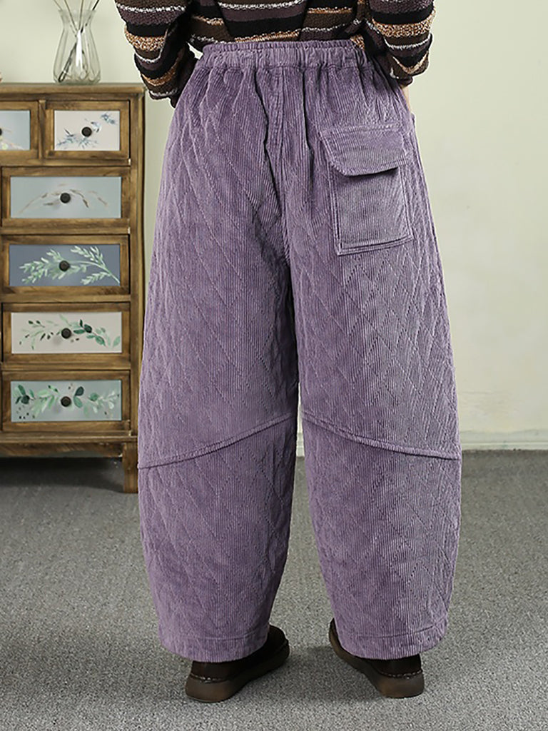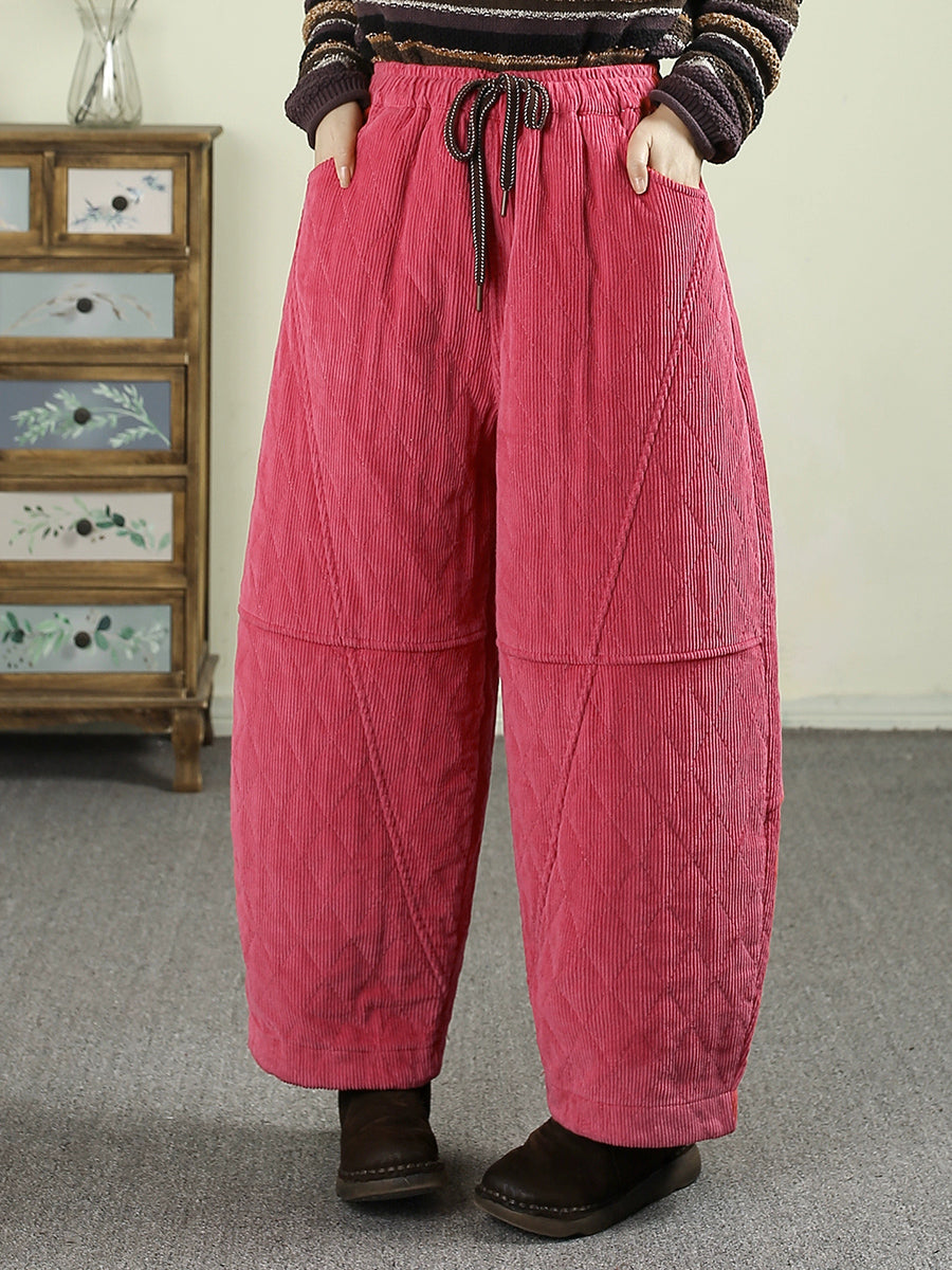 Ženske zimske retro harem hlače od čistog korduroja s podstavom