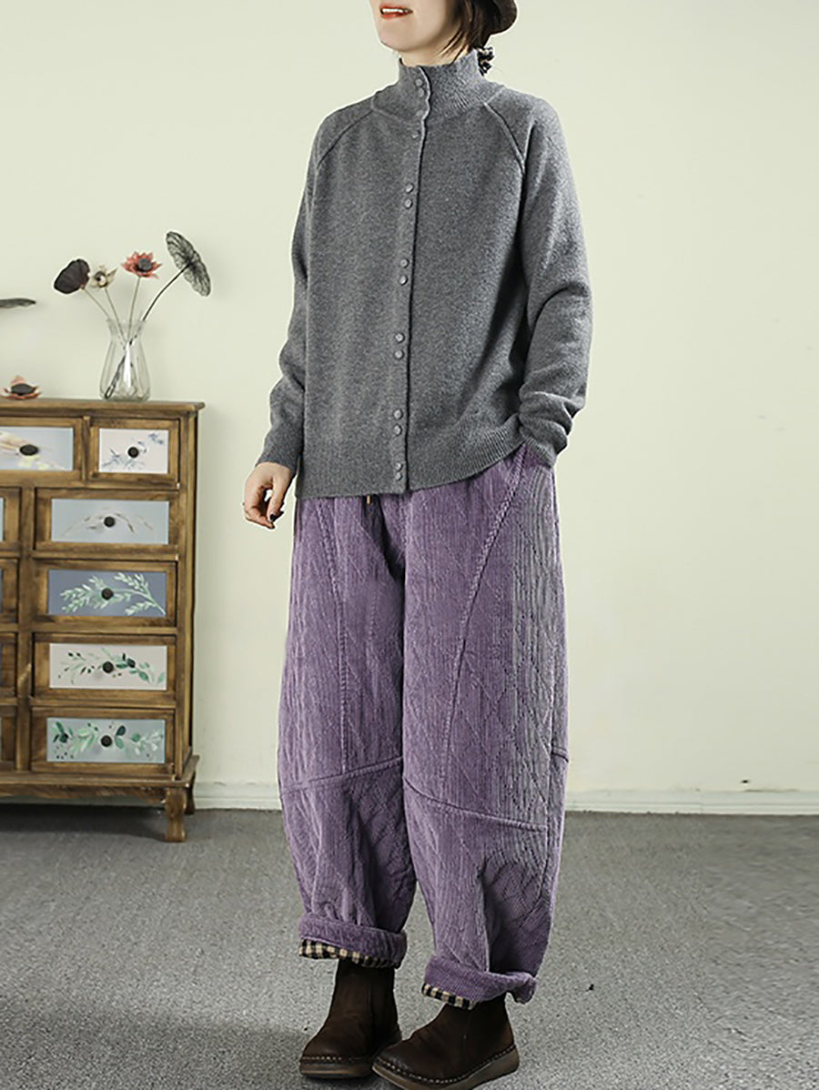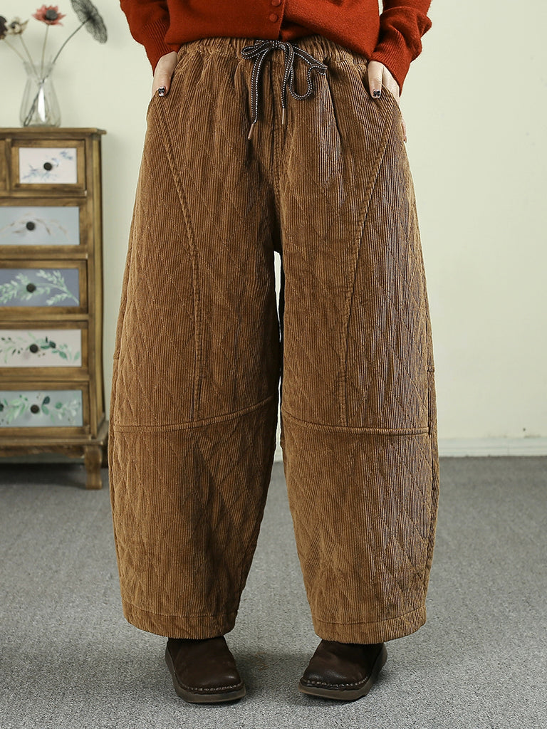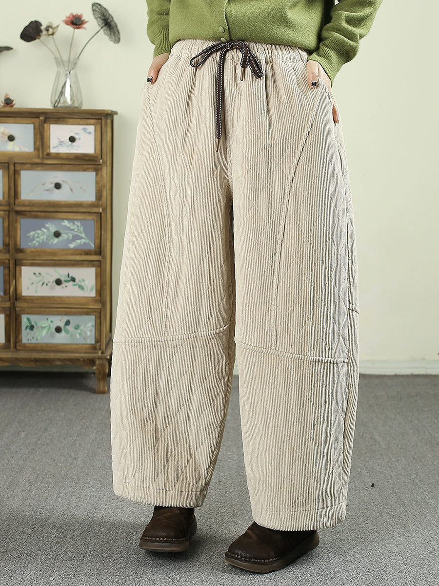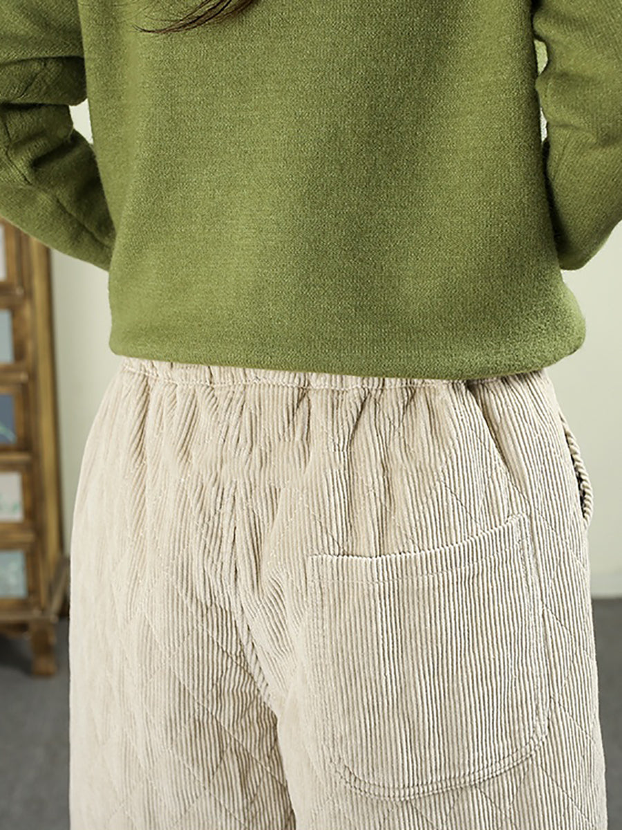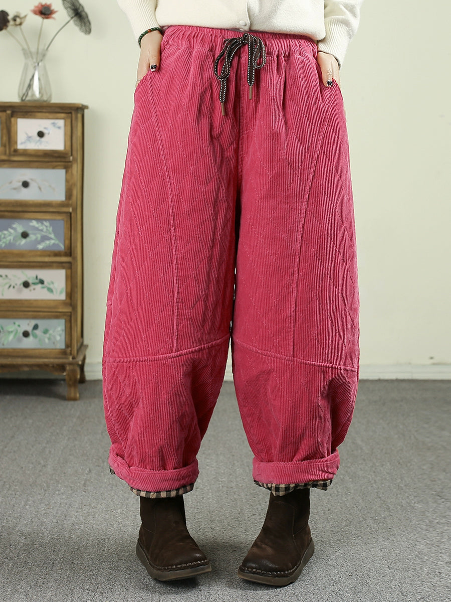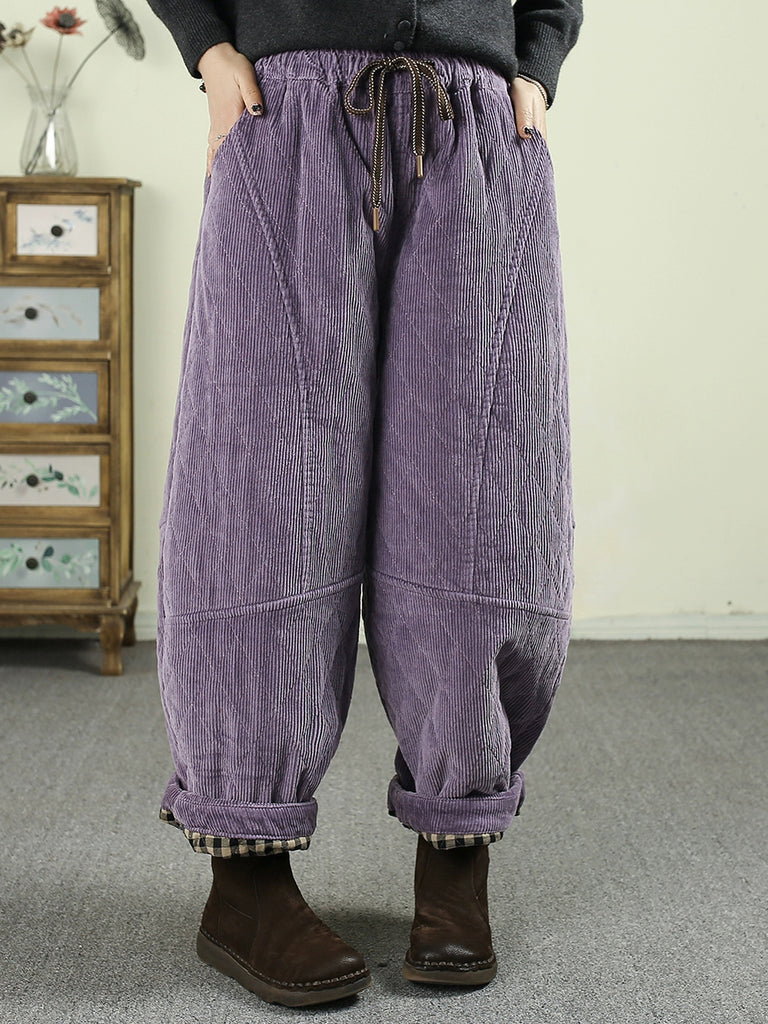 Ženske zimske retro harem hlače od čistog korduroja s podstavom