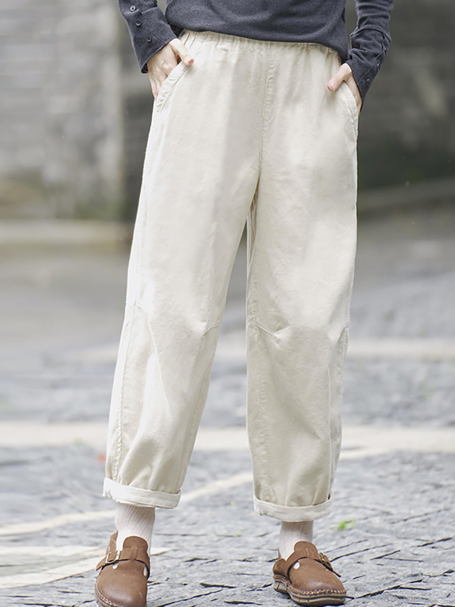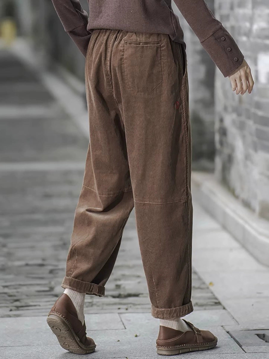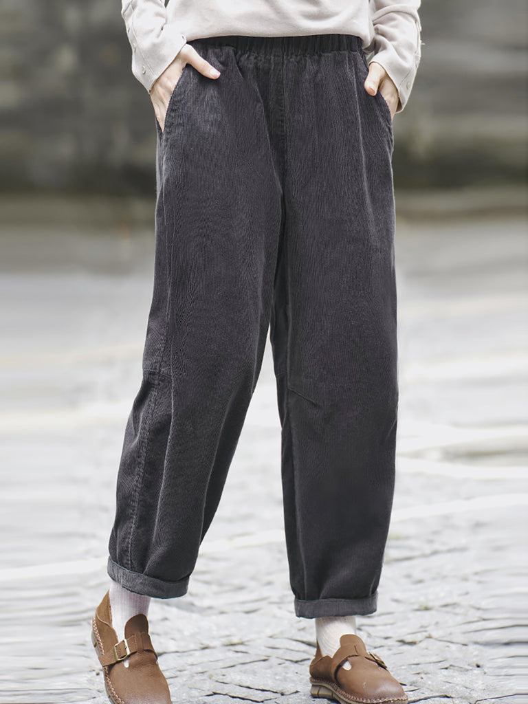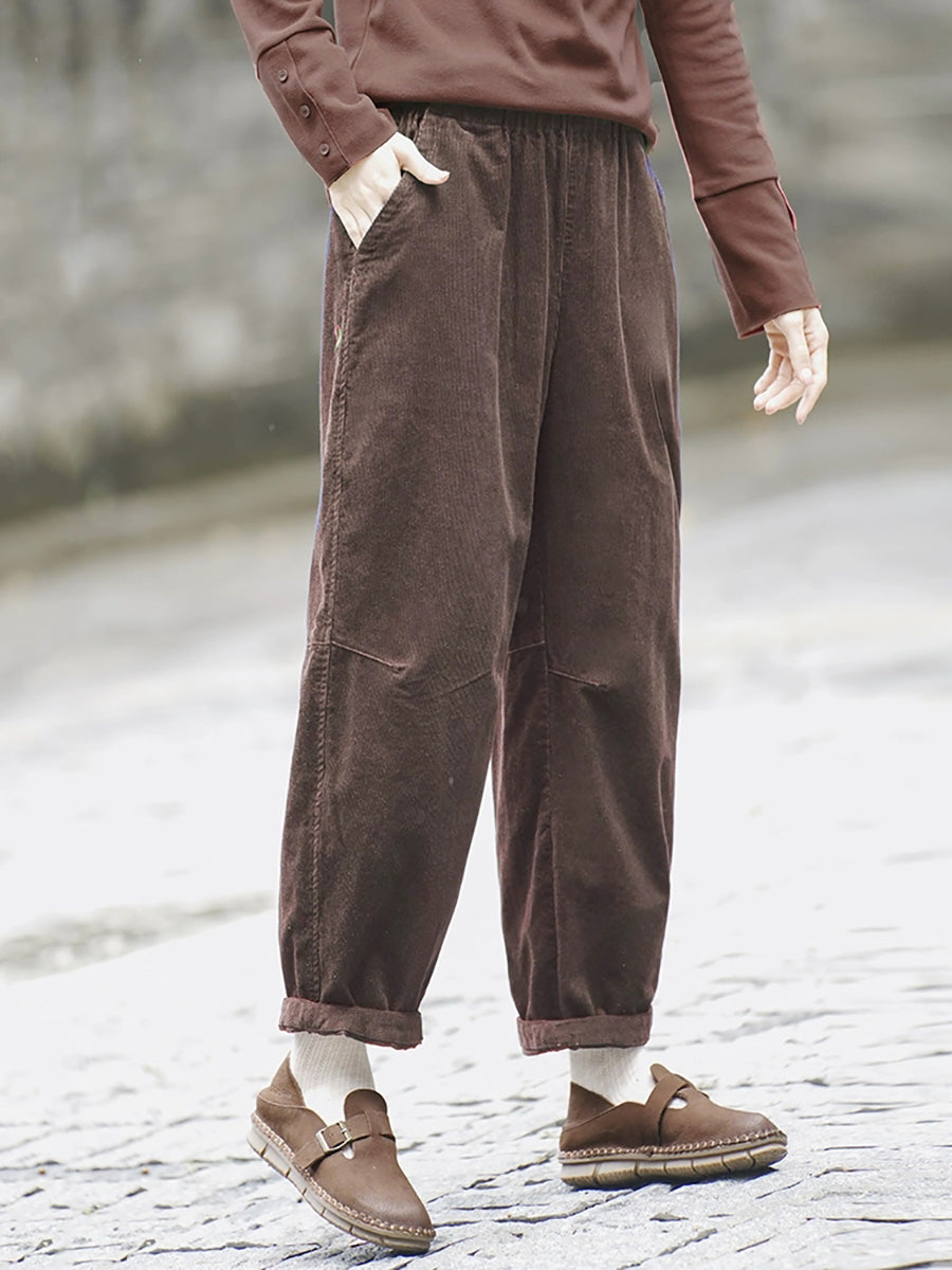 Ženske zimske retro harem hlače od korduroja u čistoj boji