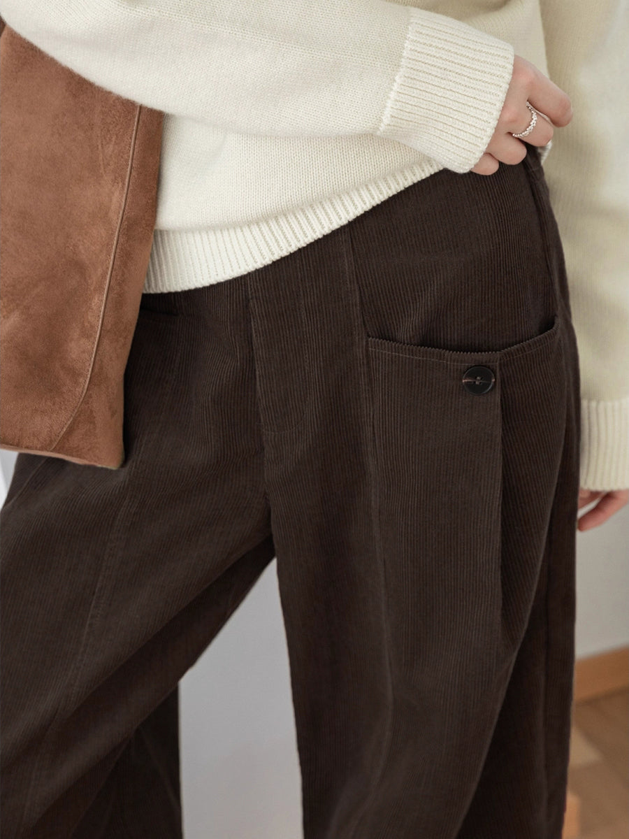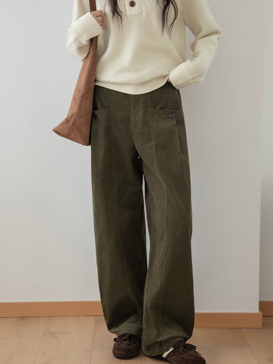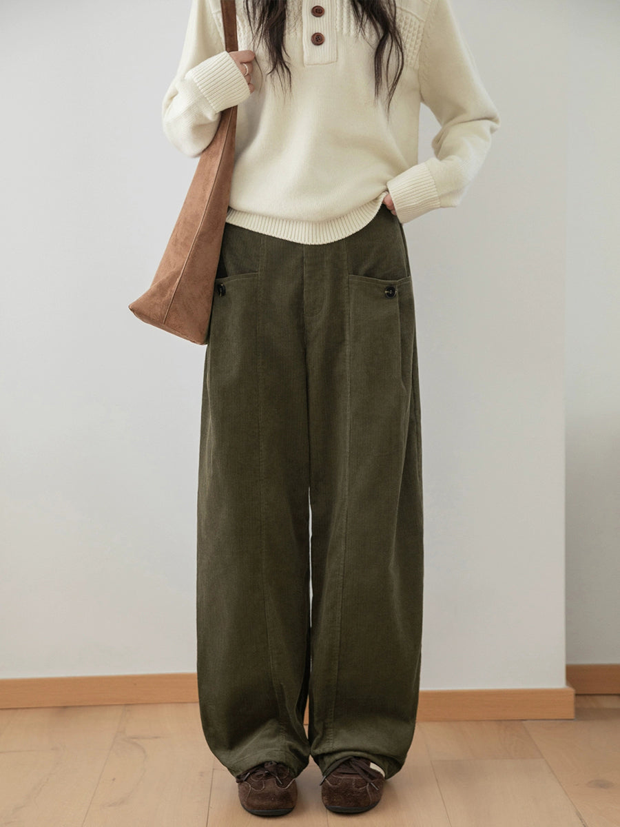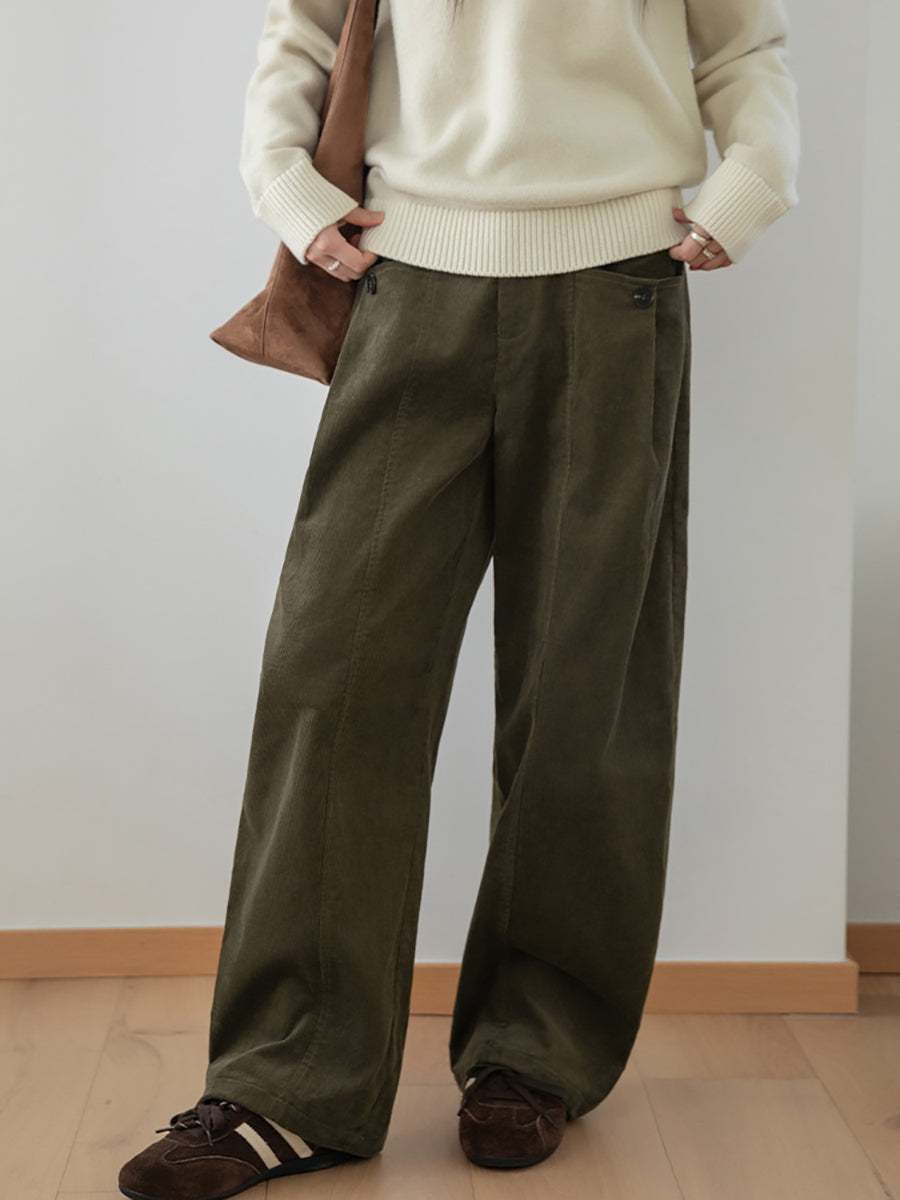 Ženske zimske retro korduro hlače širokih nogavica od čistog korduroja