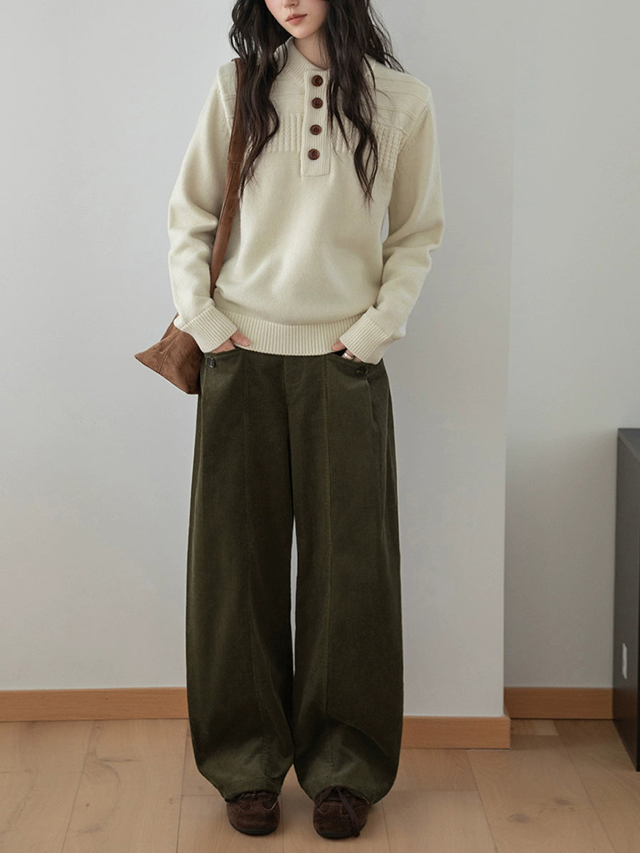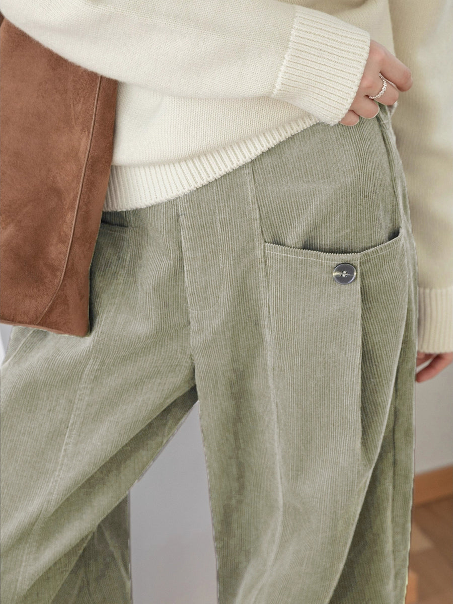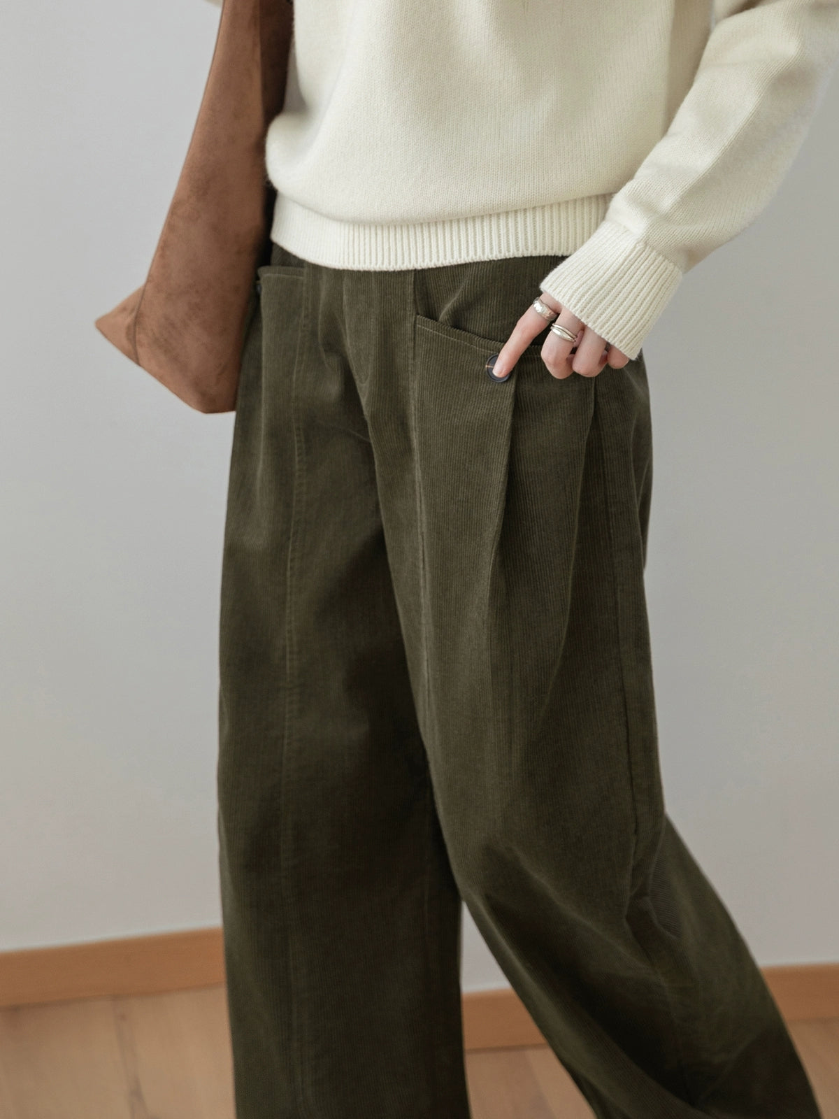 Ženske zimske retro korduro hlače širokih nogavica od čistog korduroja