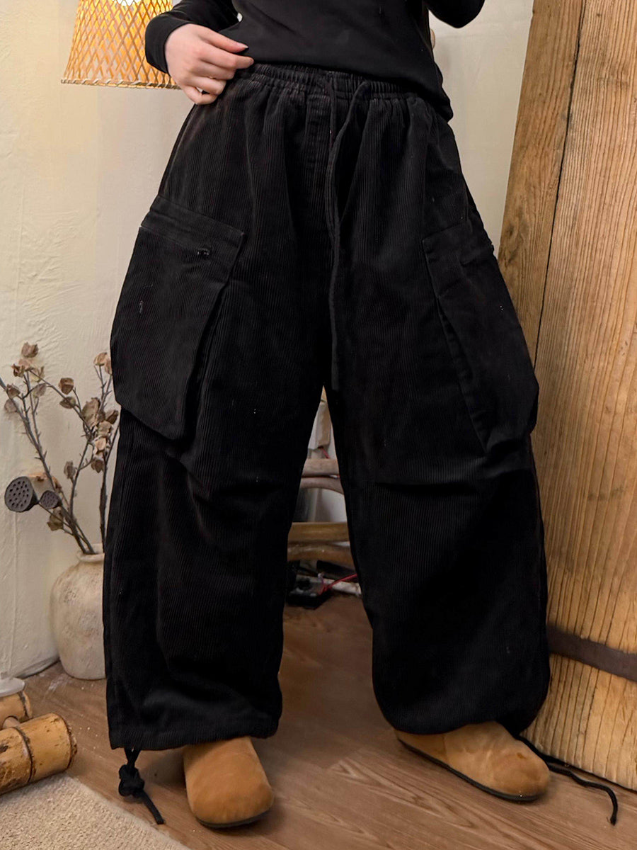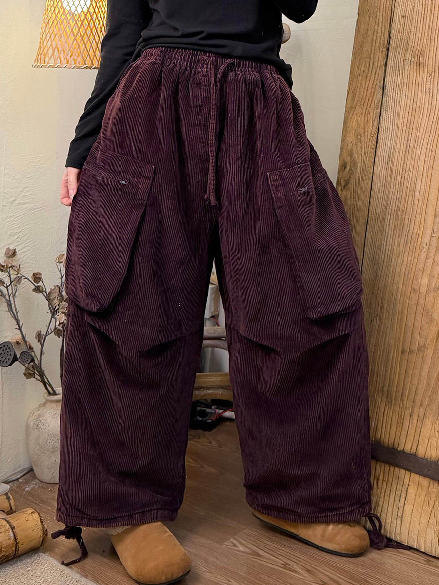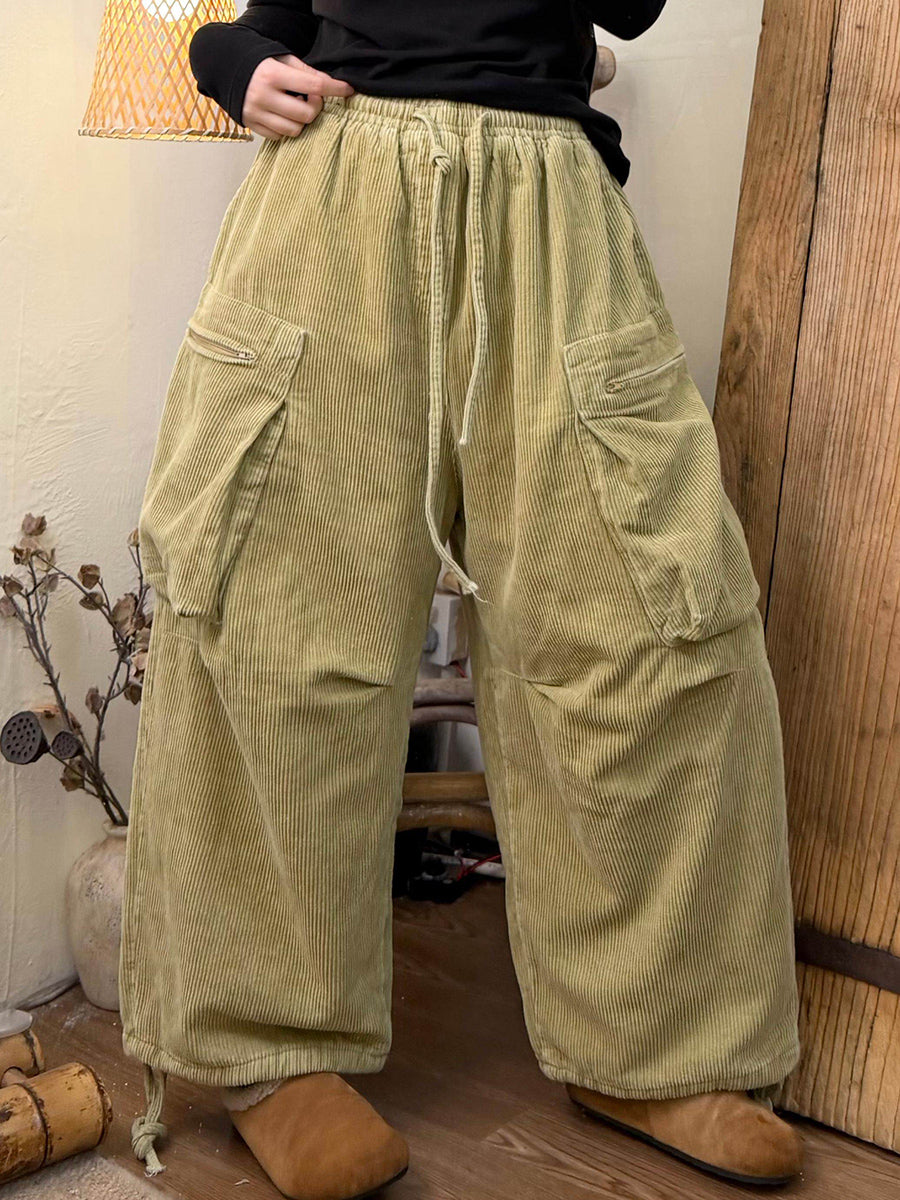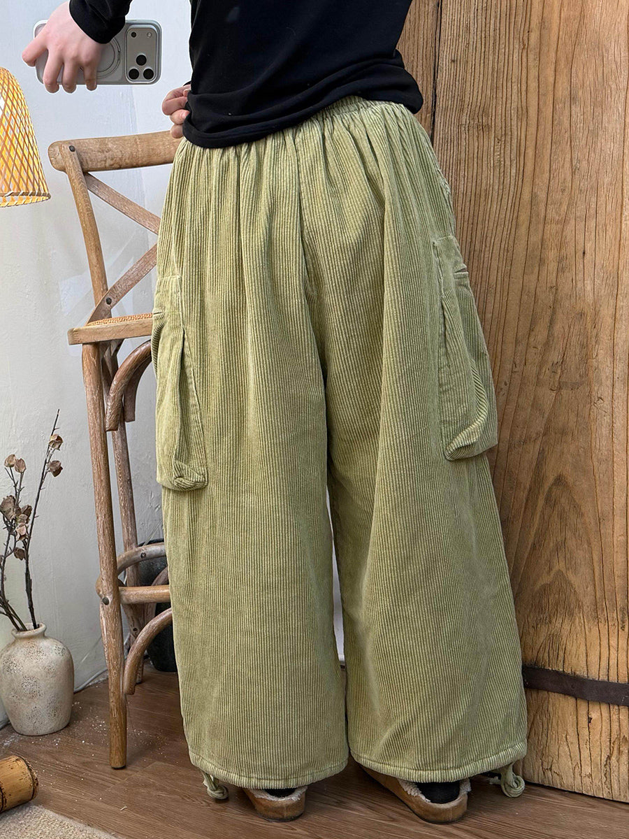 Ženske zimske retro korduro hlače širokih nogavica od čistog korduroja