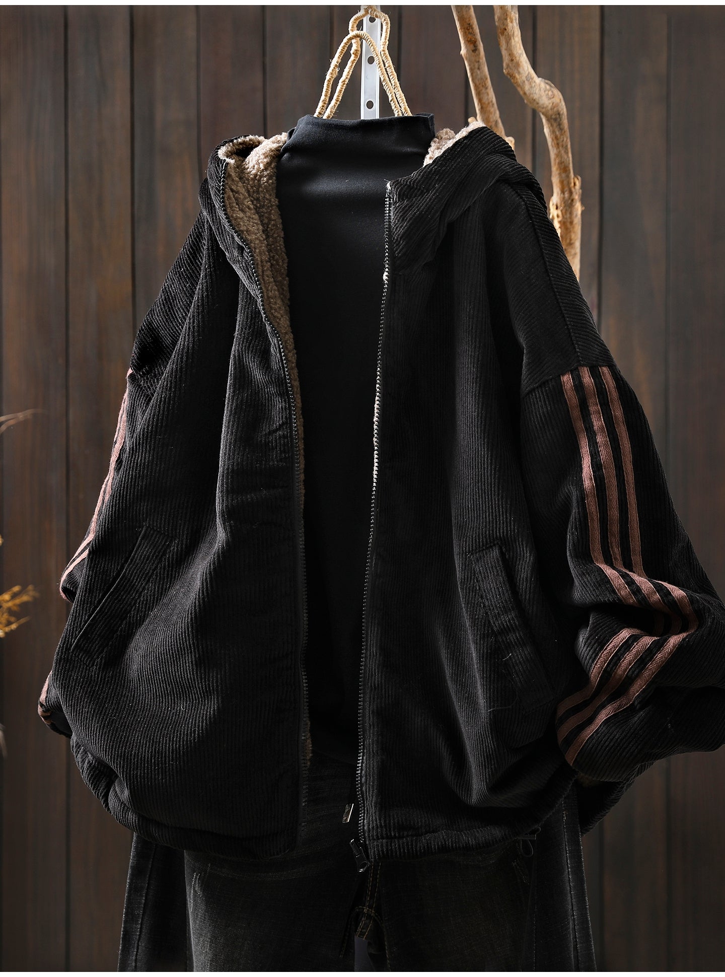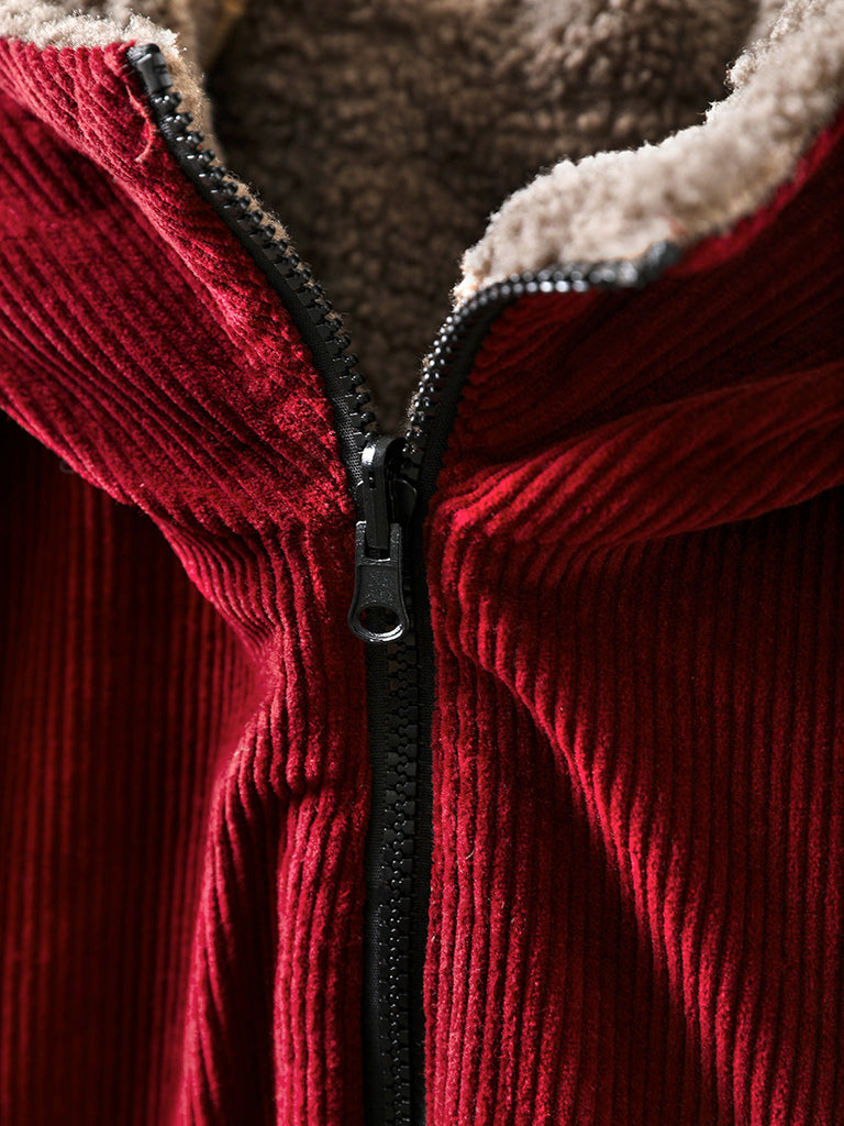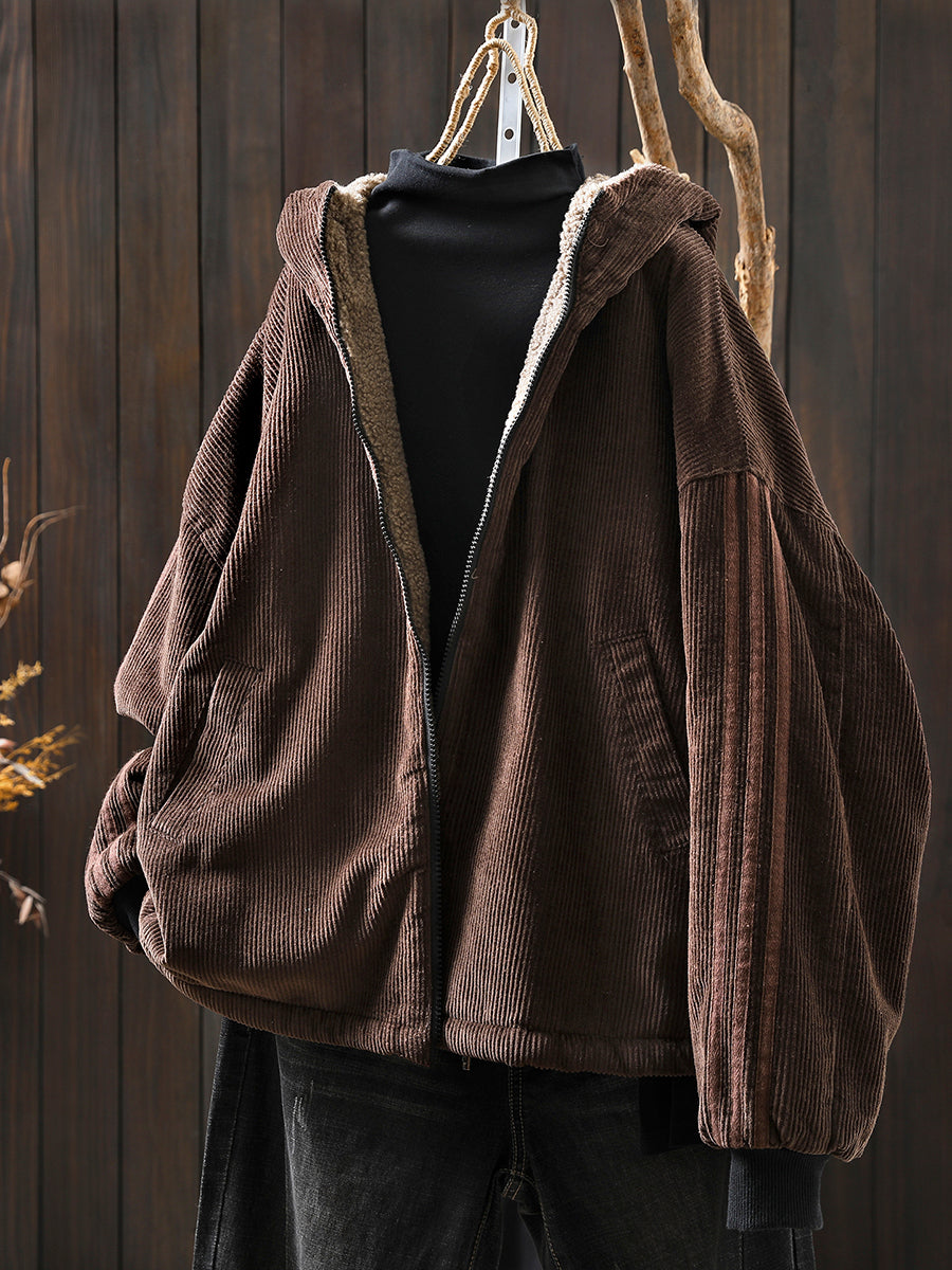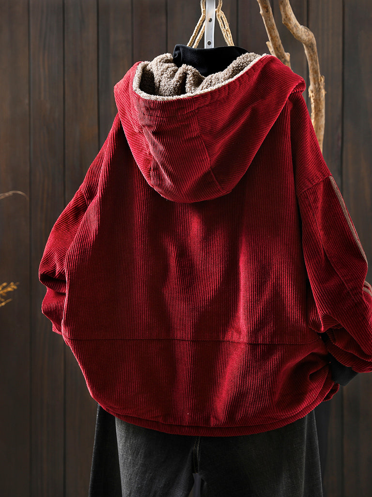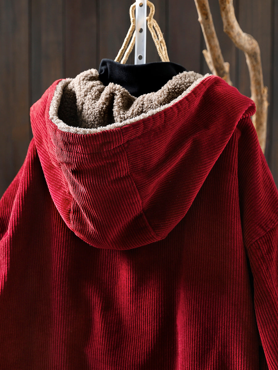 Ženski zimski retro kaput s kapuljačom od korduroja, čistog flisa