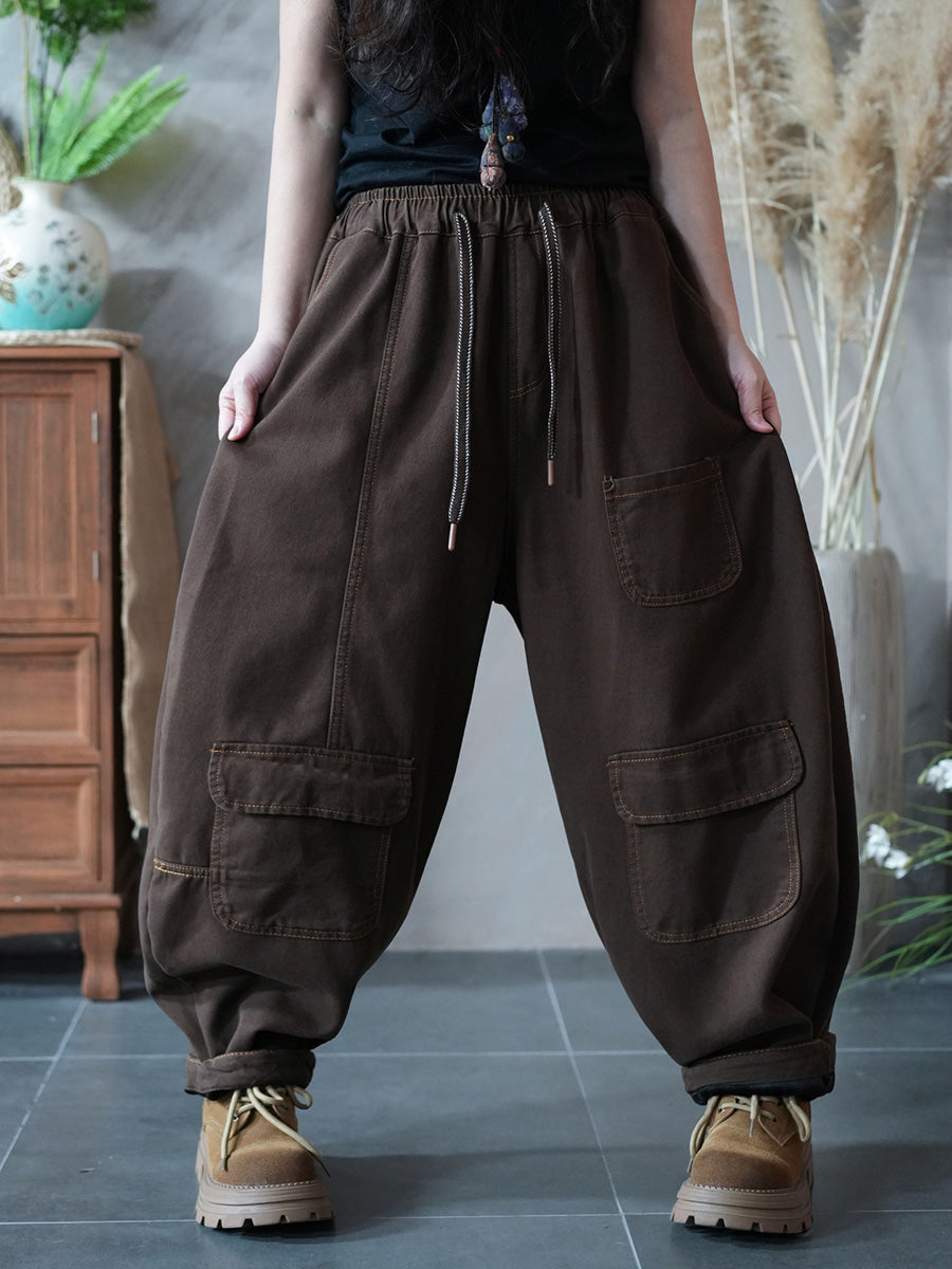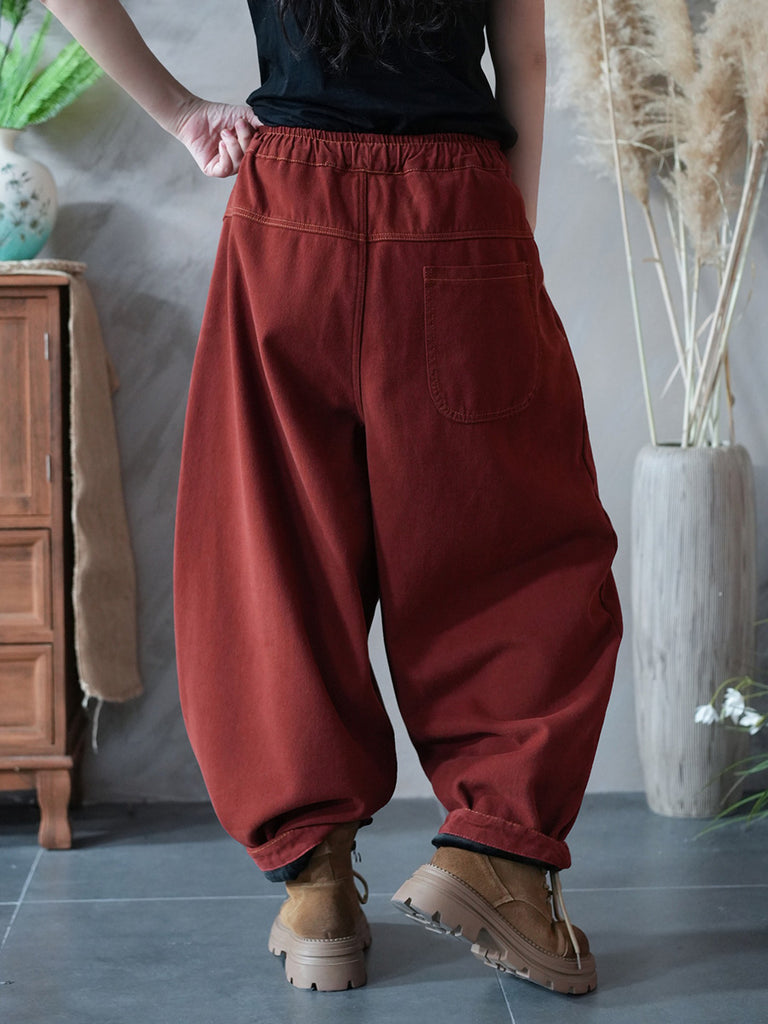 Ženske zimske retro harem hlače s džepovima u čistoj boji