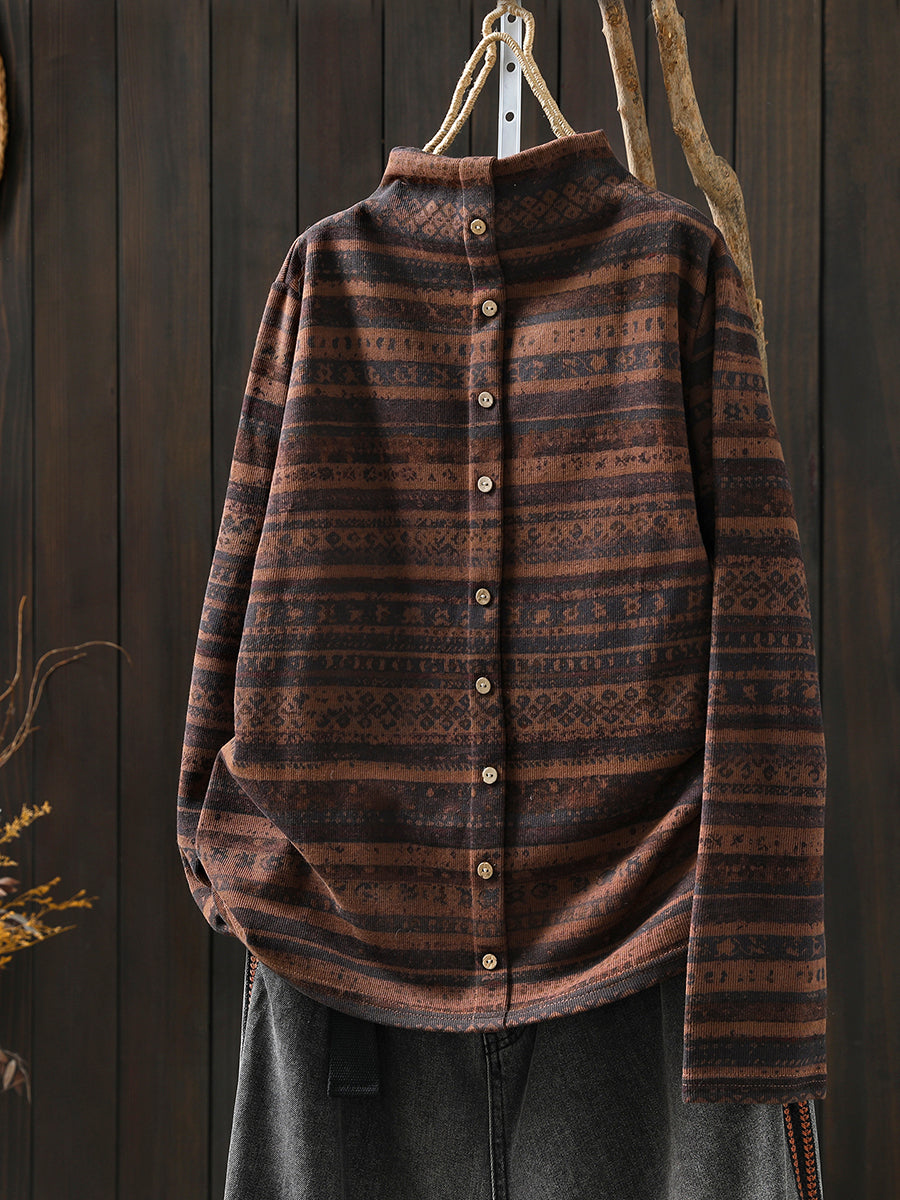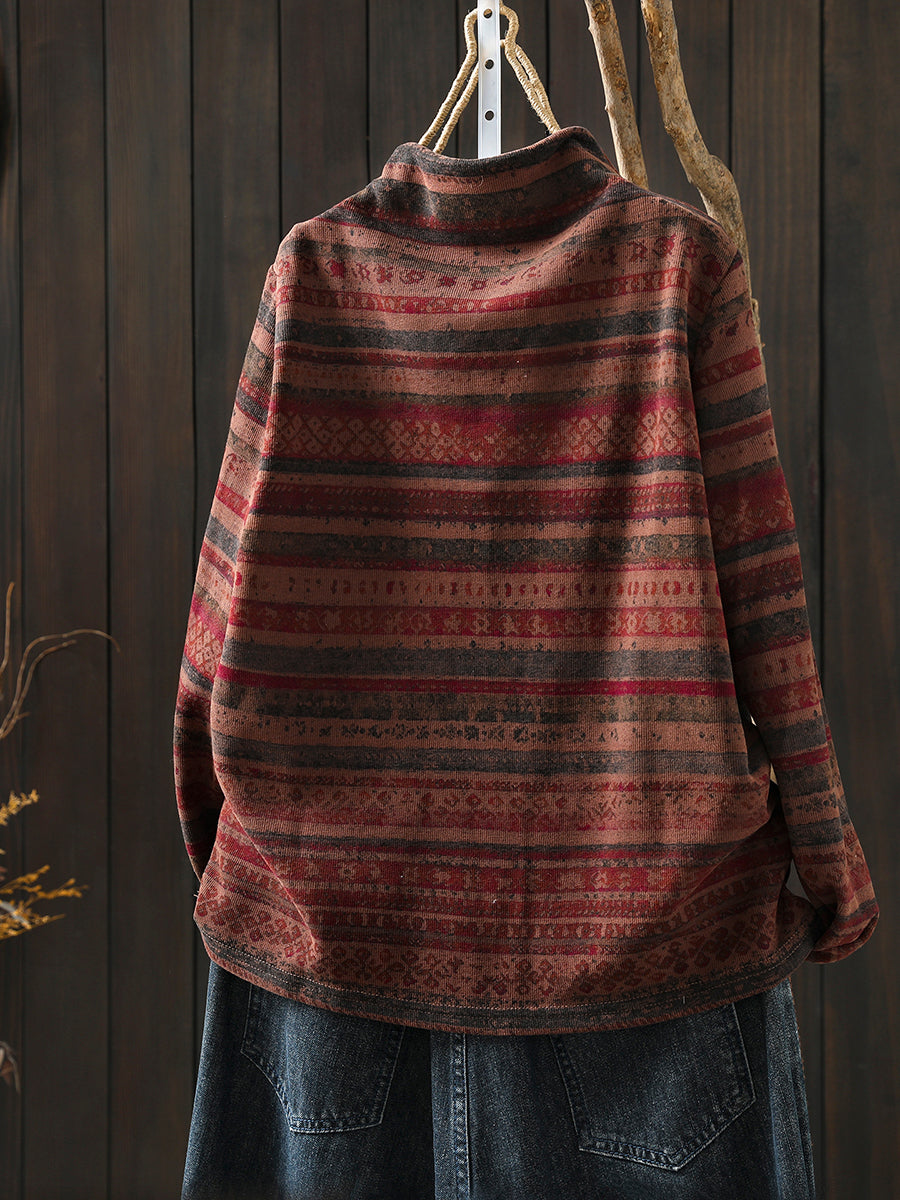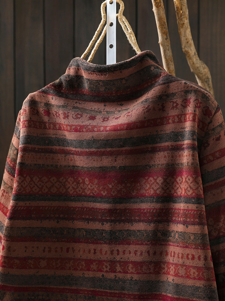Ženska zimska retro prugasta bluza s polu-rolkom