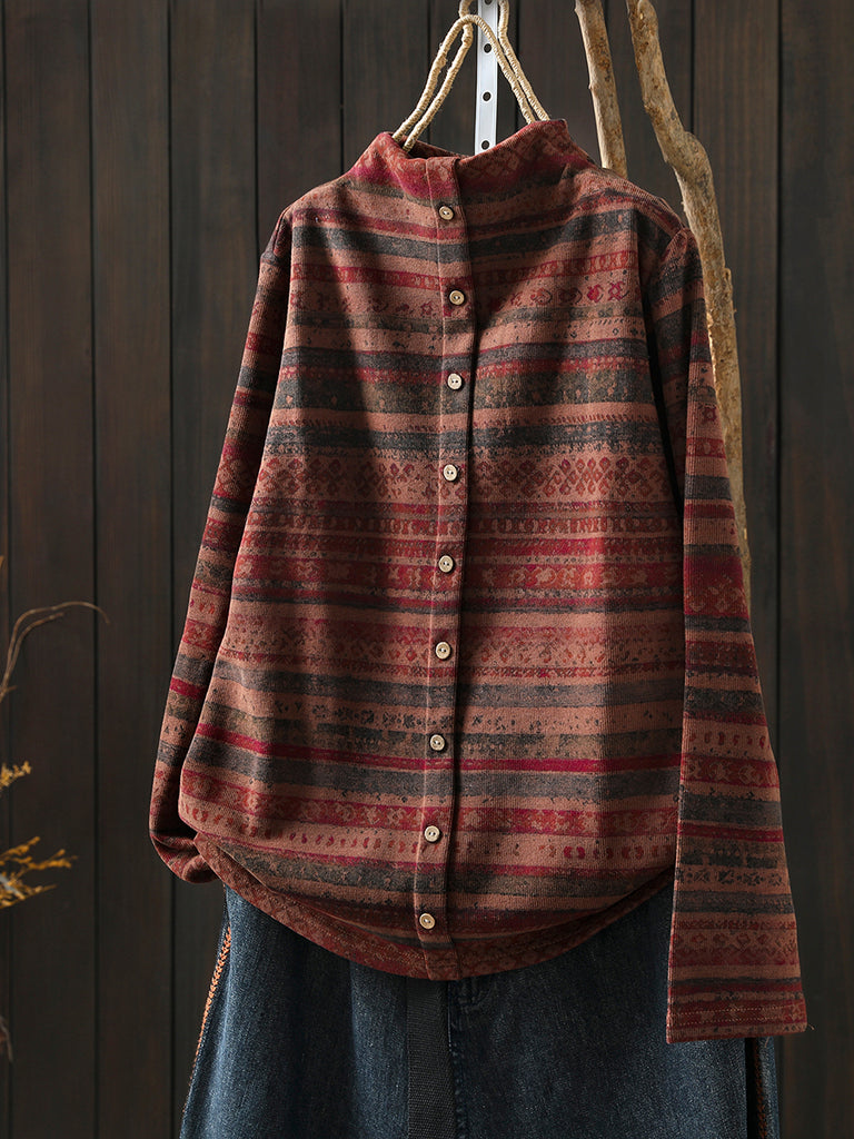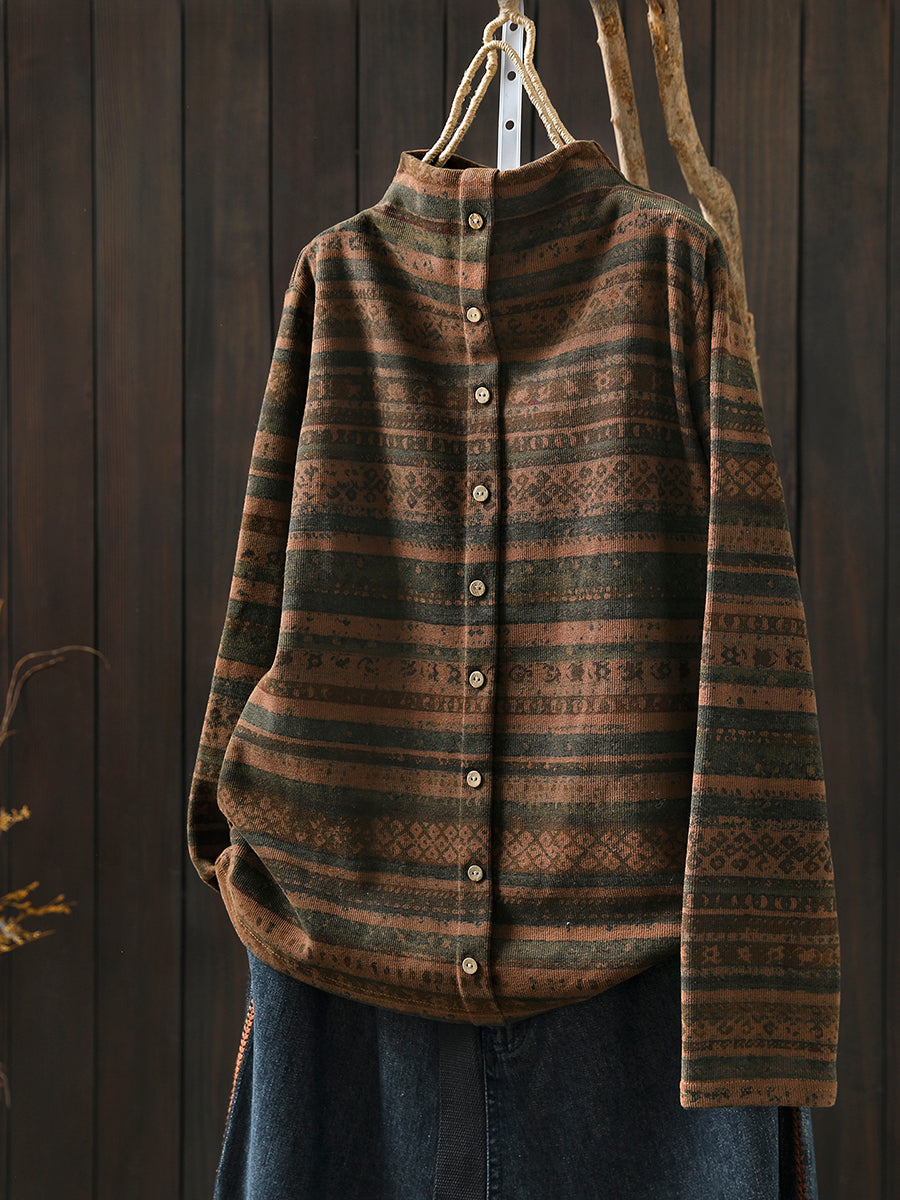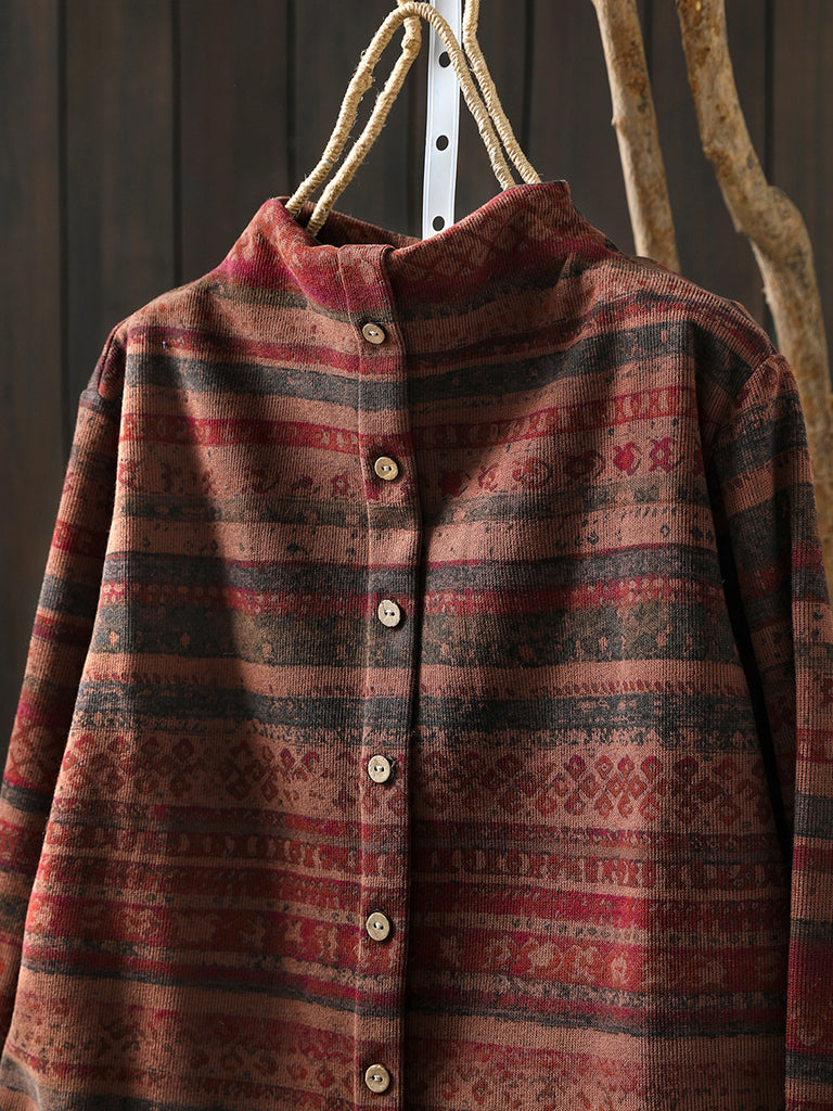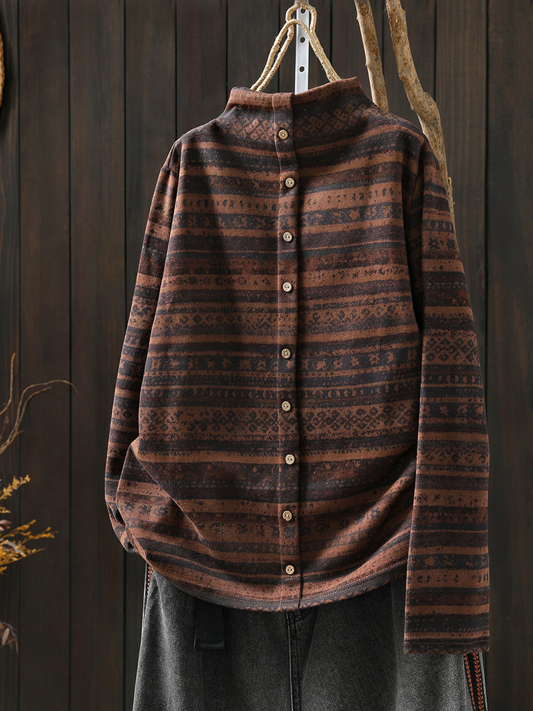 Ženska zimska retro prugasta bluza s polu-rolkom