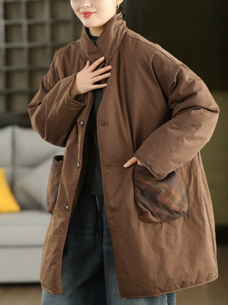 Ženski zimski dvostrani kaput od 100% pamuka s podstavom