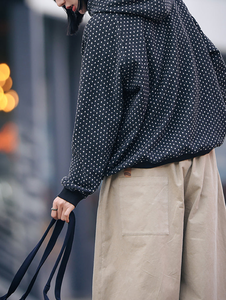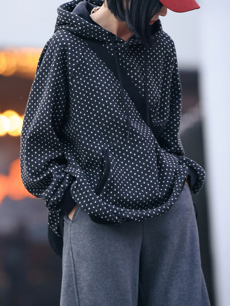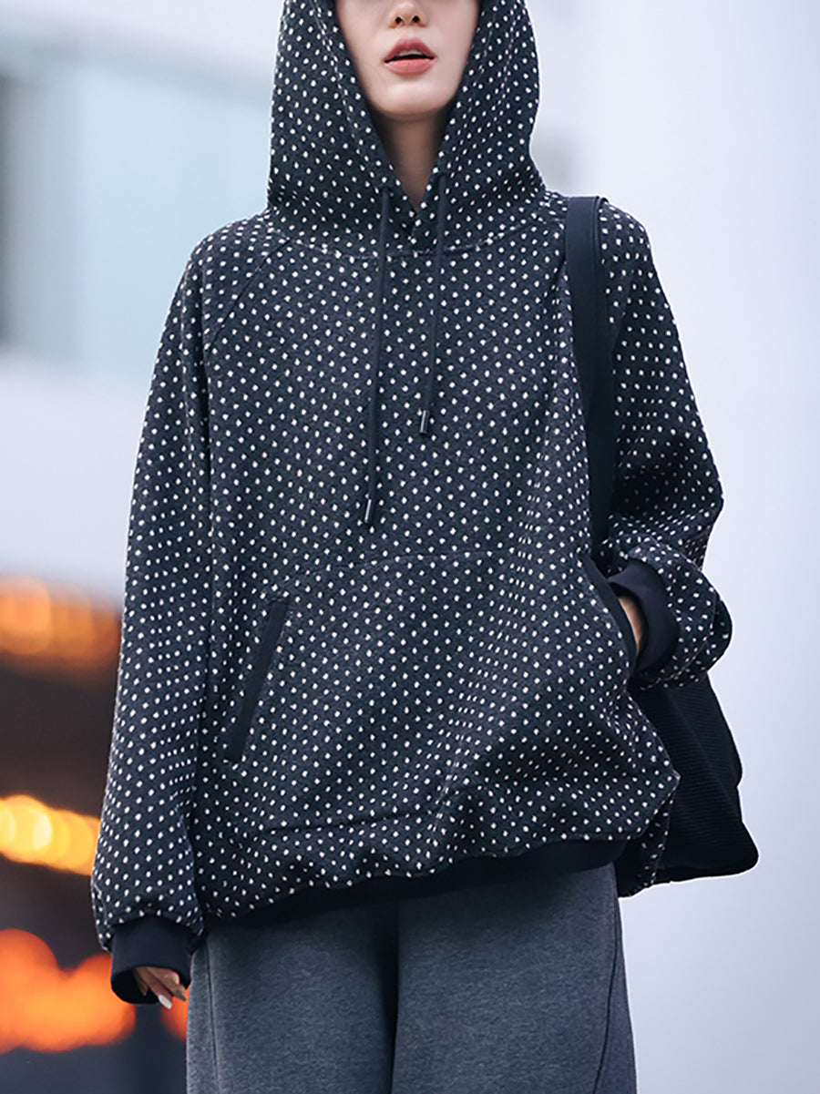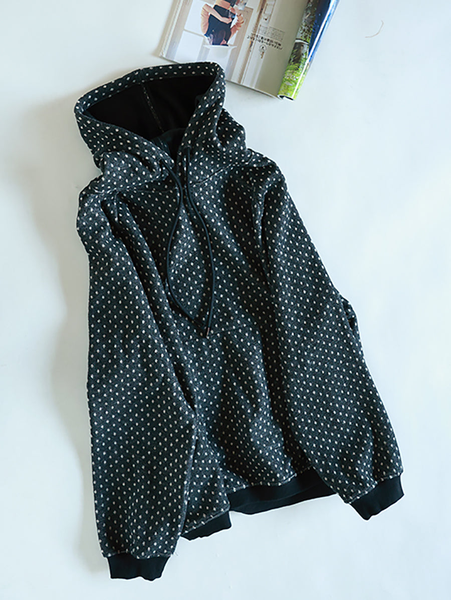 Izrađena od pamuka, ova majica s kapuljačom ima cvjetni uzorak i ovratnik s kapuljačom. Dizajnirana s punim raglan rukavima u retro stilu, idealna je za jesensko i zimsko nošenje. Podstava od flisa osigurava dodatnu toplinu i udobnost tijekom hladnijih godišnjih doba.