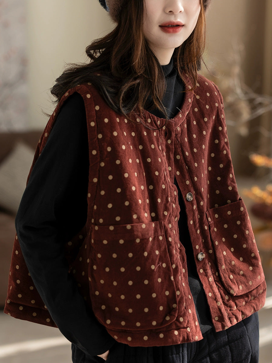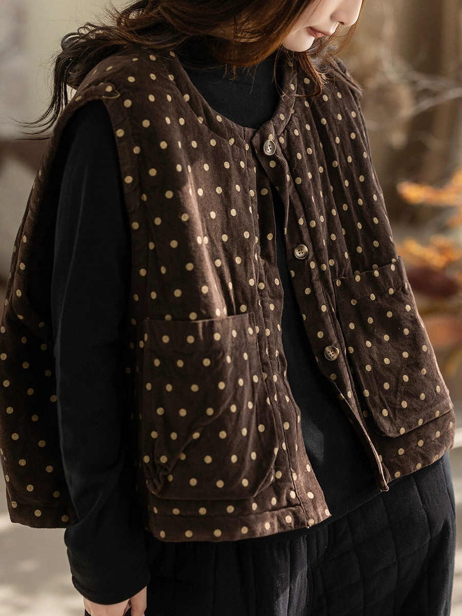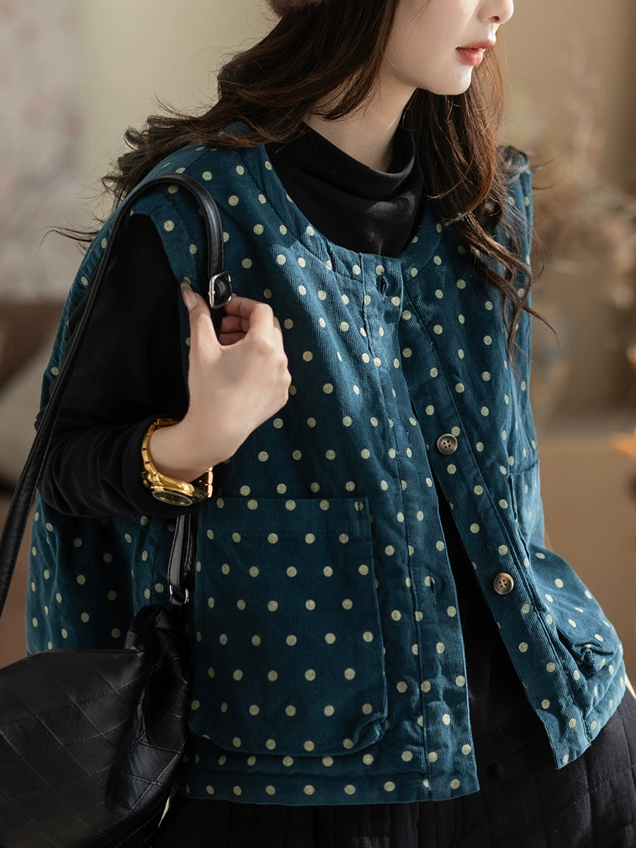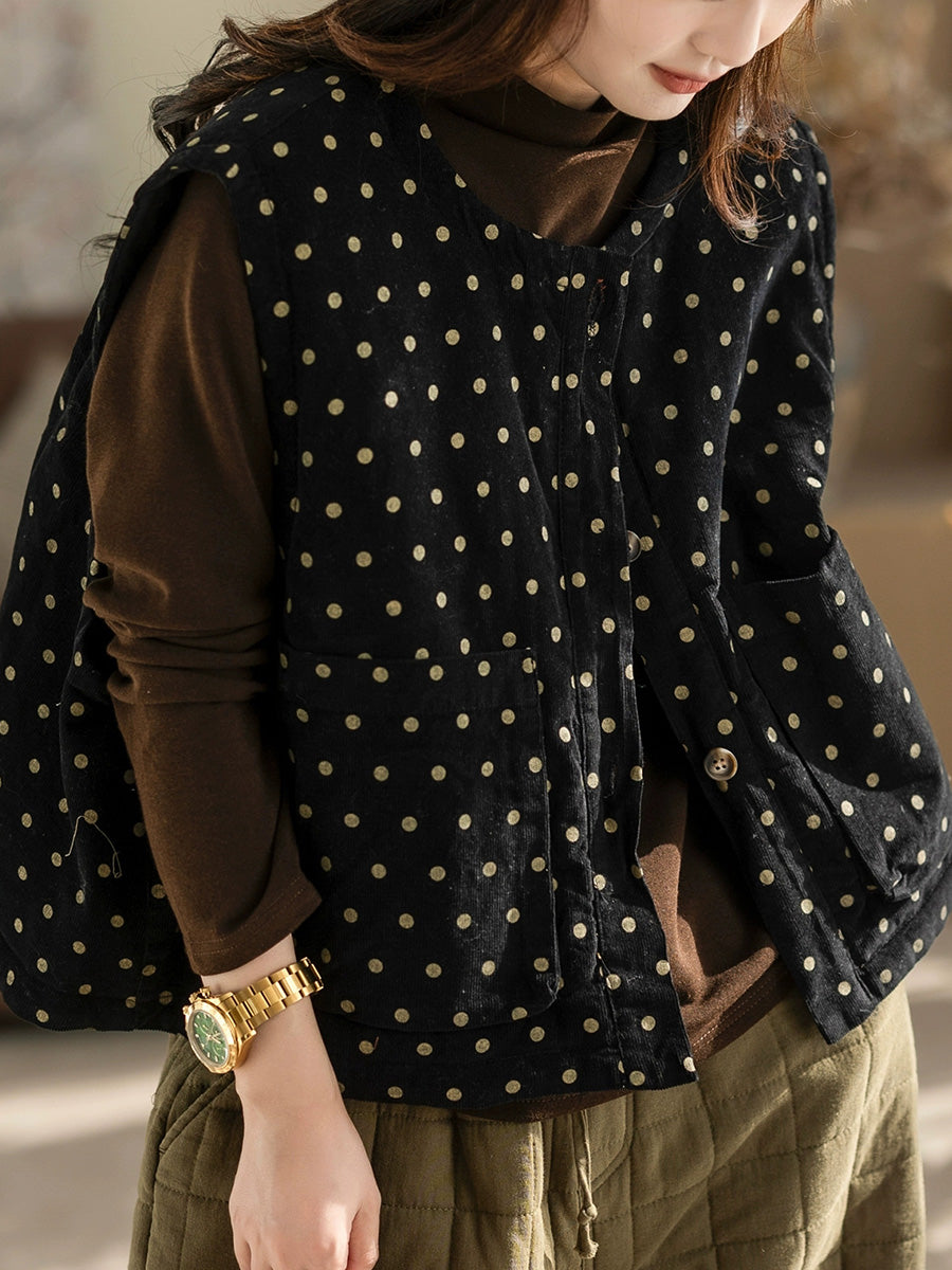 Ženski zimski vintage prsluk s O-izrezom i točkicama
