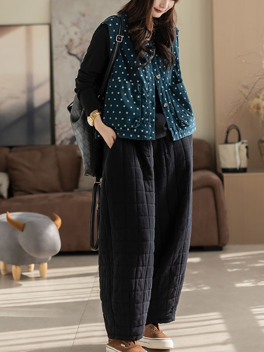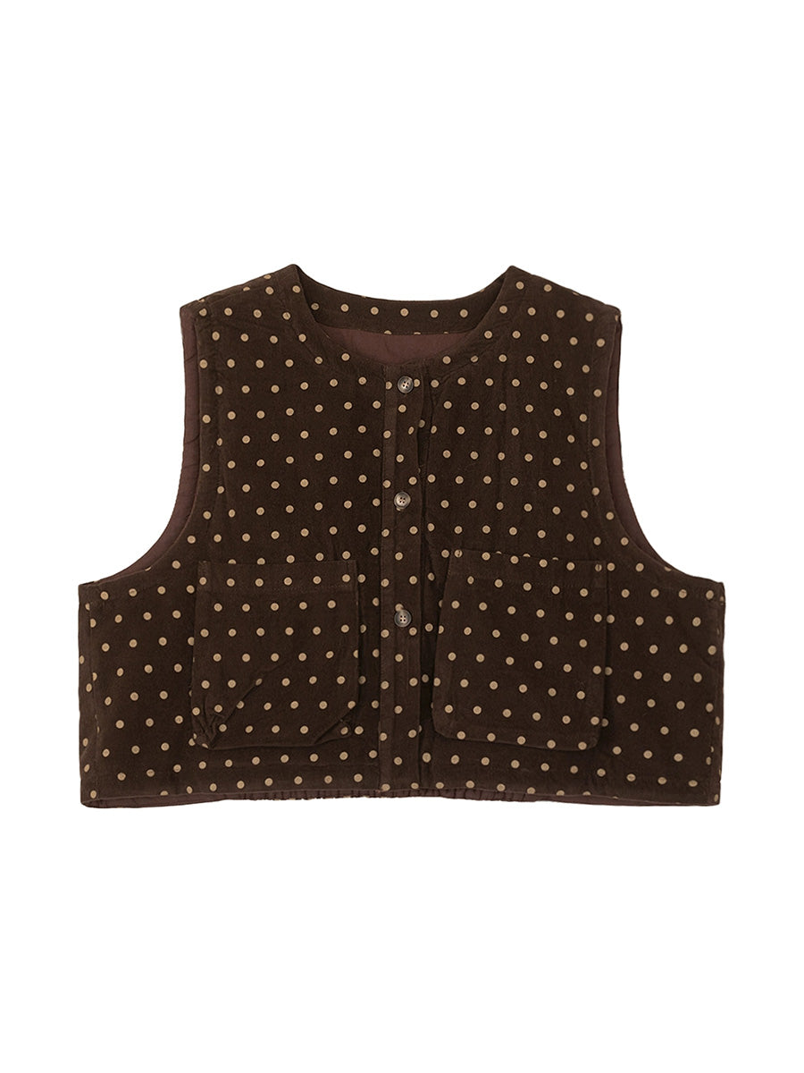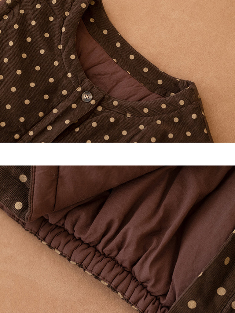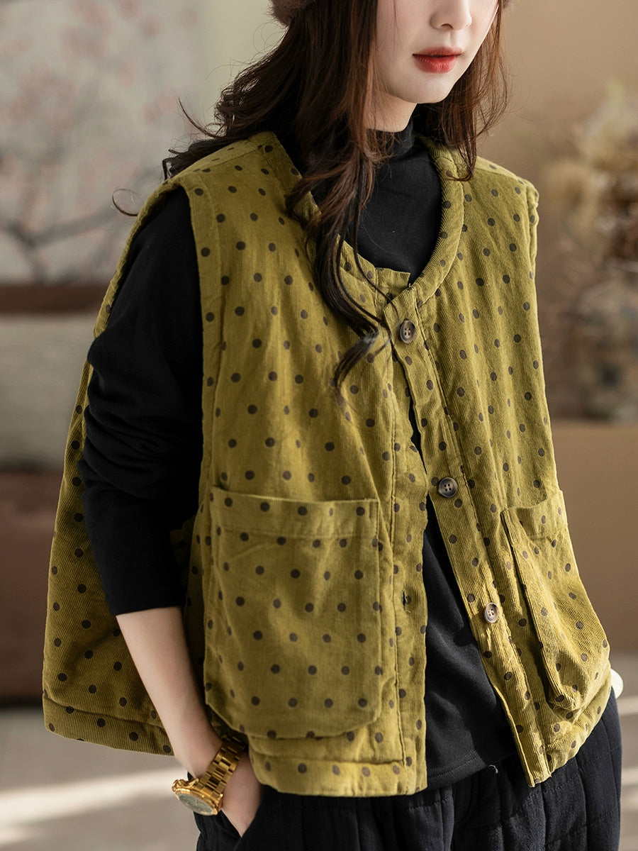 Ženski zimski vintage prsluk s O-izrezom i točkicama