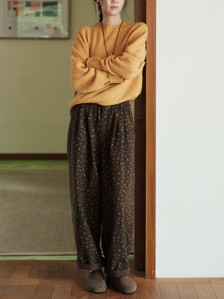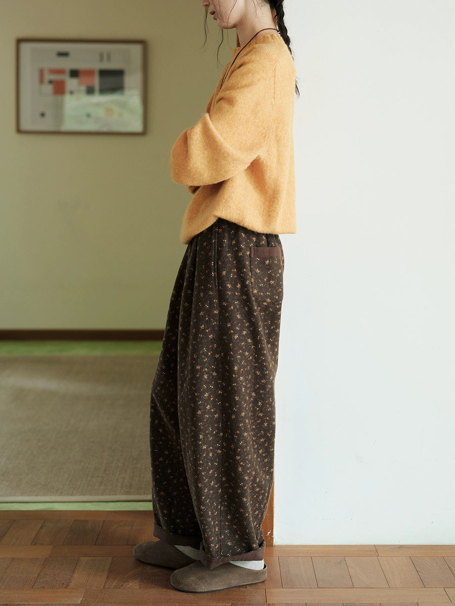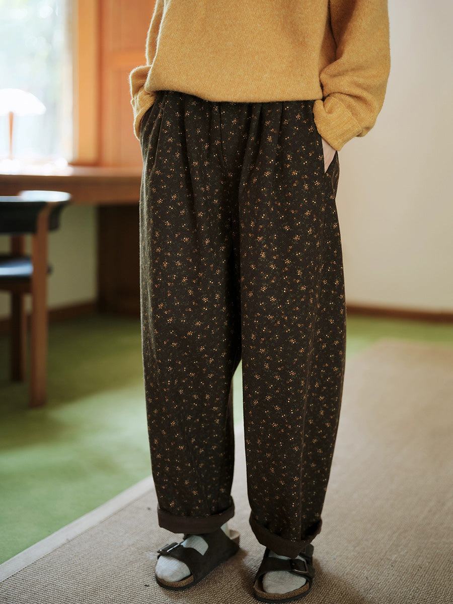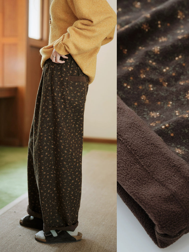 Ženske zimske vintage cvjetne harem hlače s flis podstavom