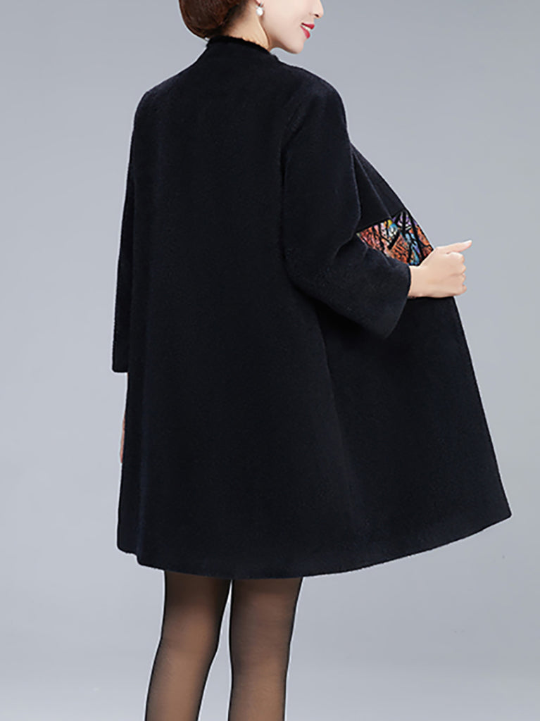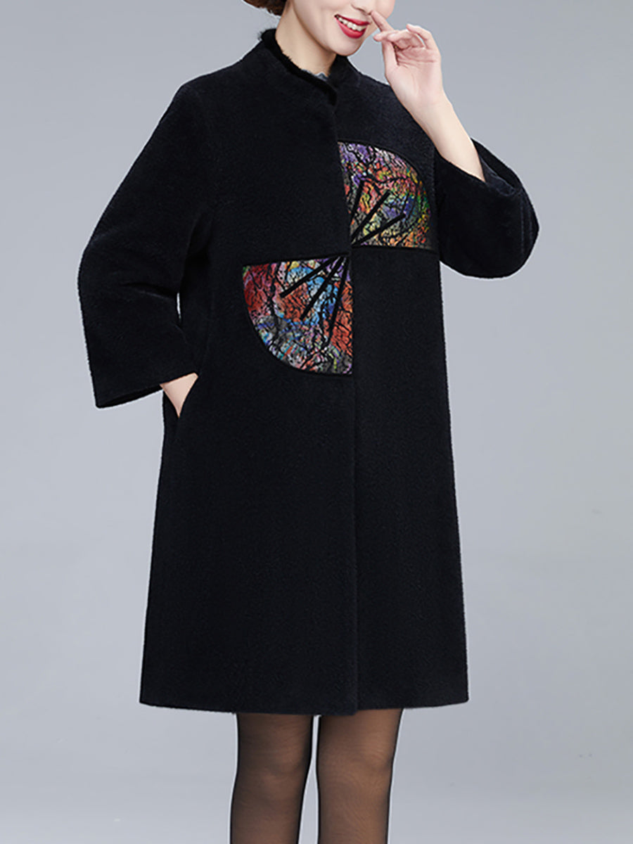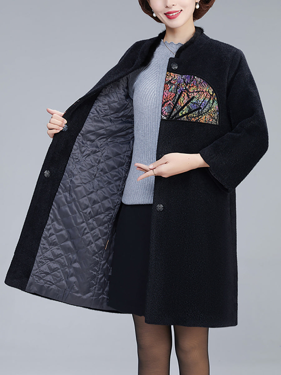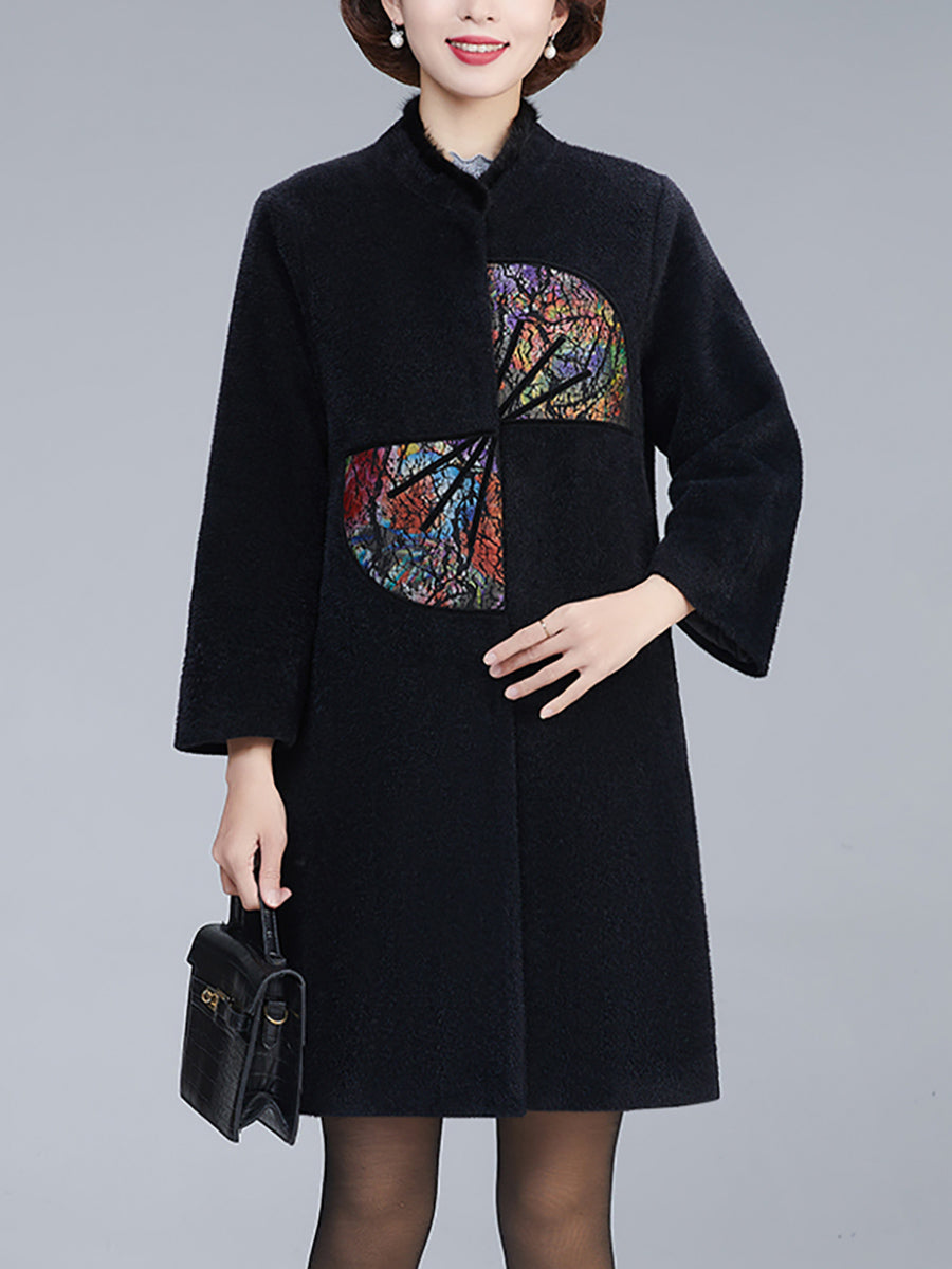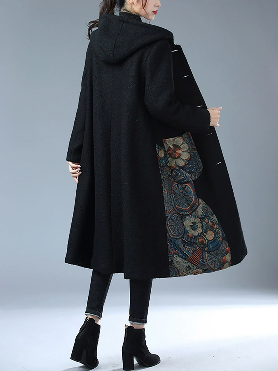 Ženski zimski kaput s kapuljačom i vintage cvjetnim zakrpama