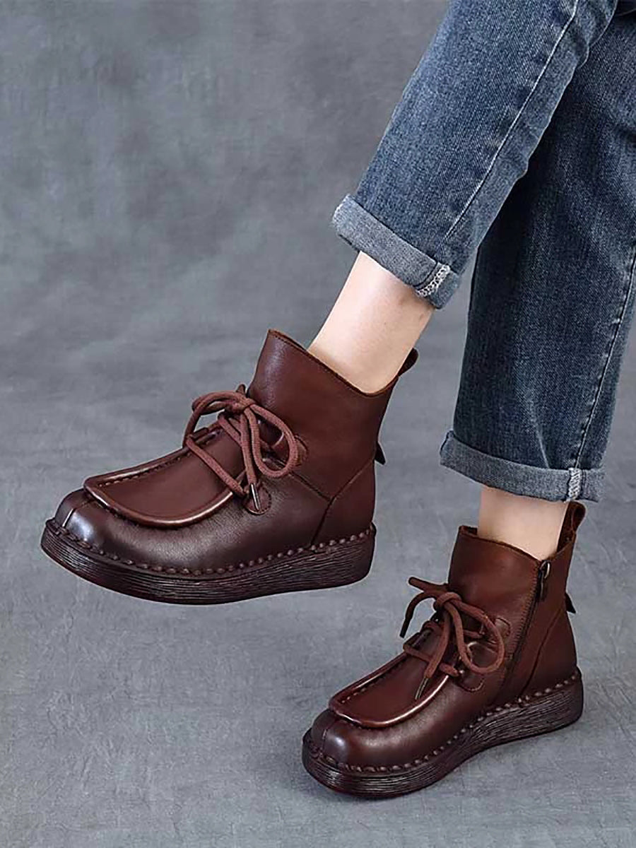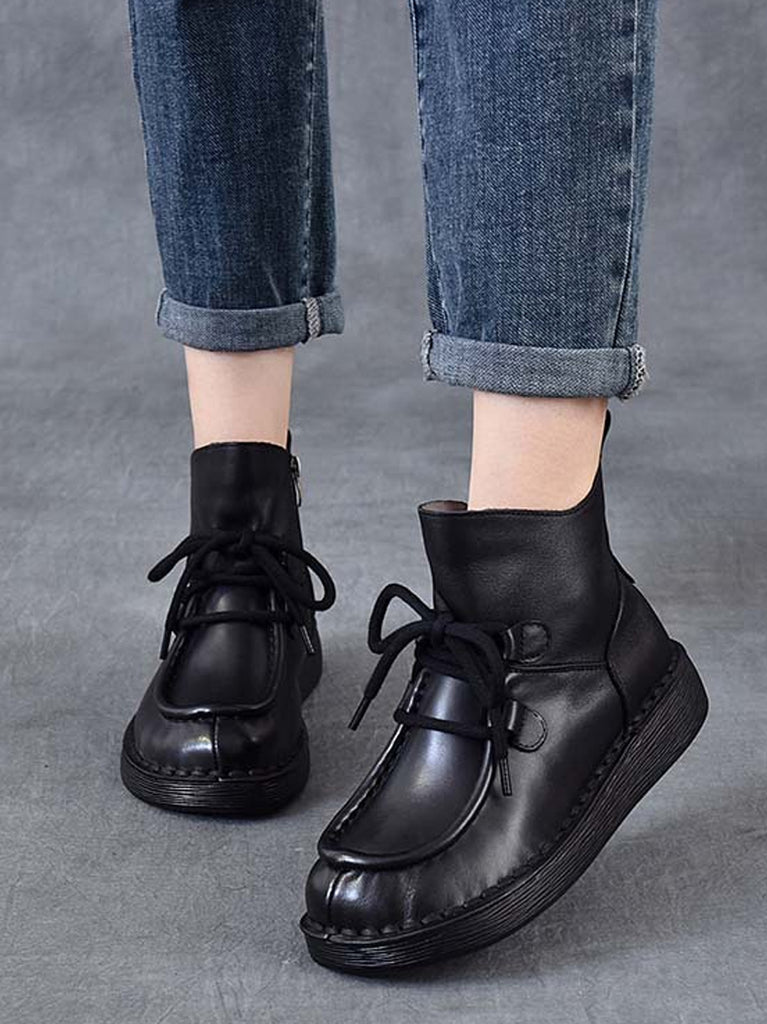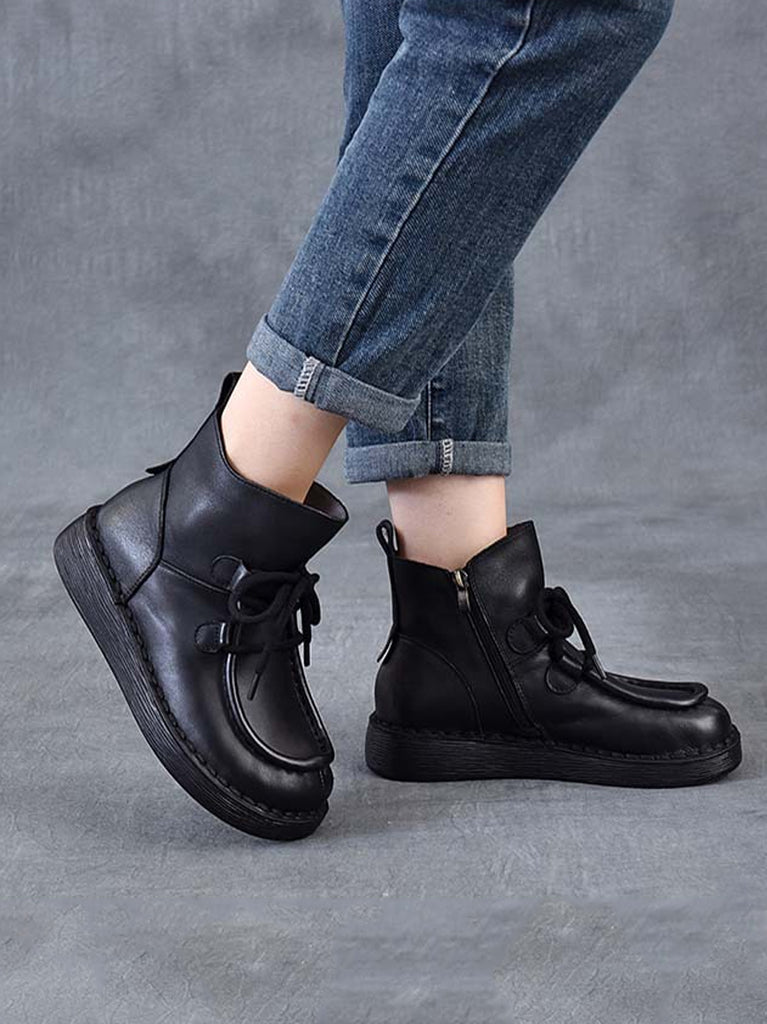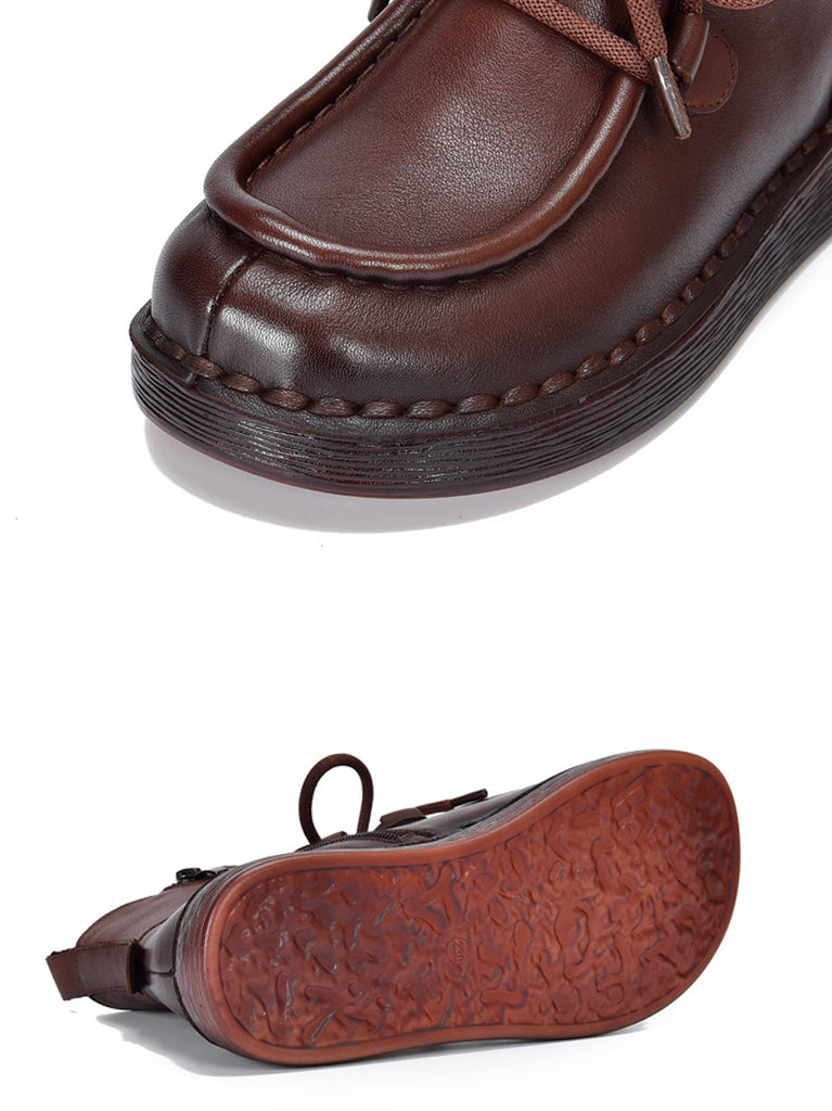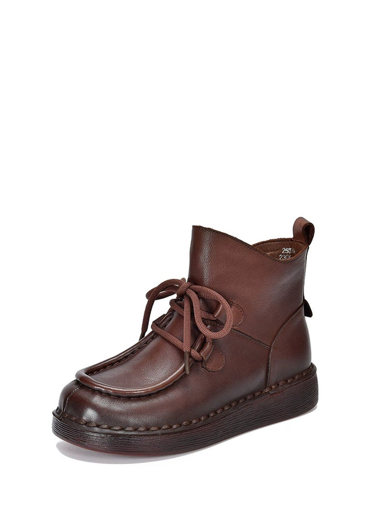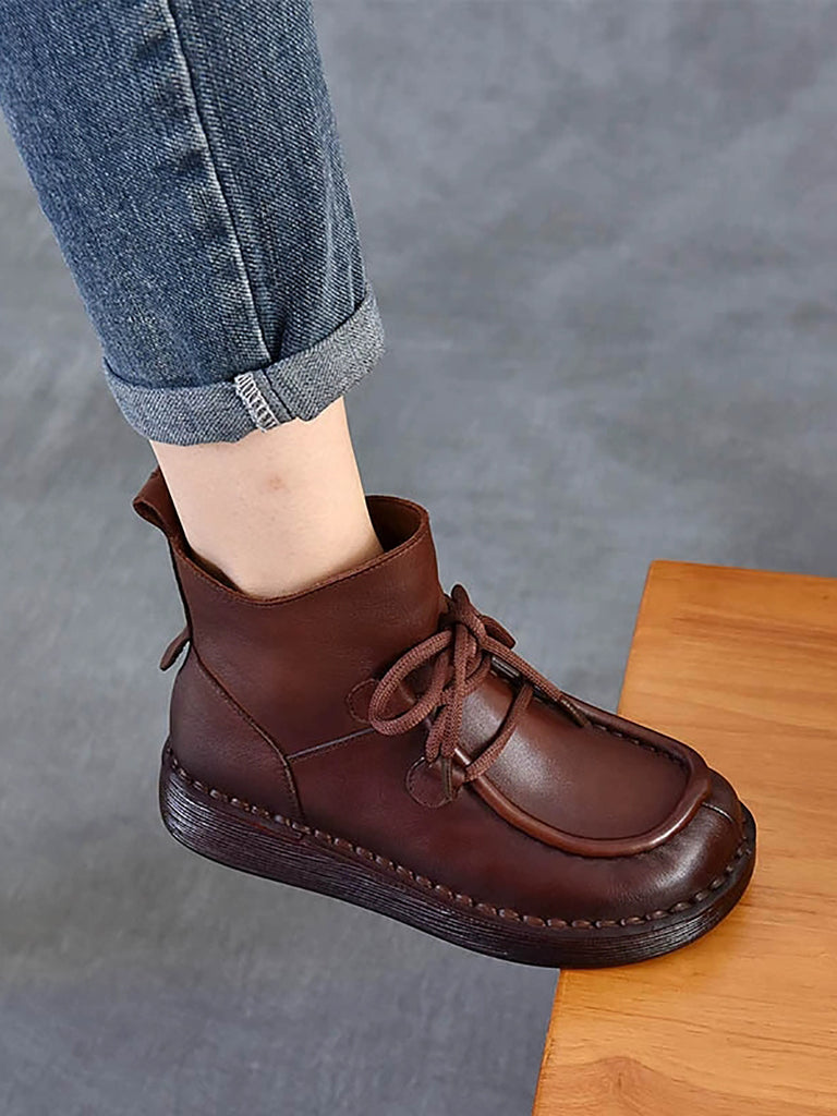 Ženske zimske vintage kožne ravne gležnjače