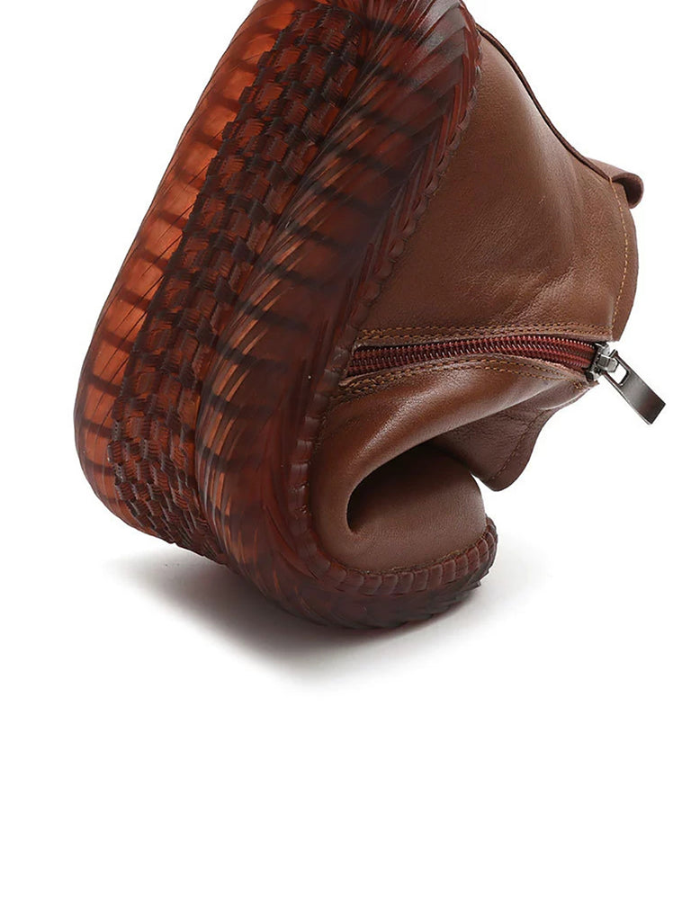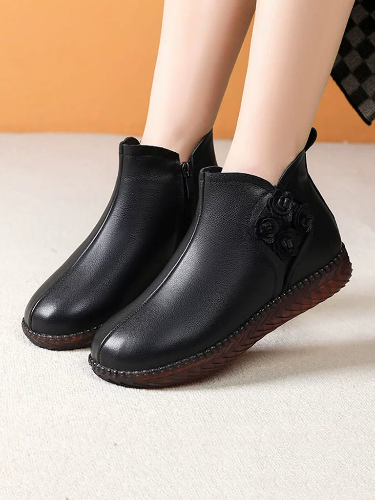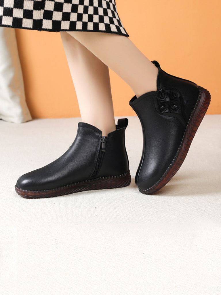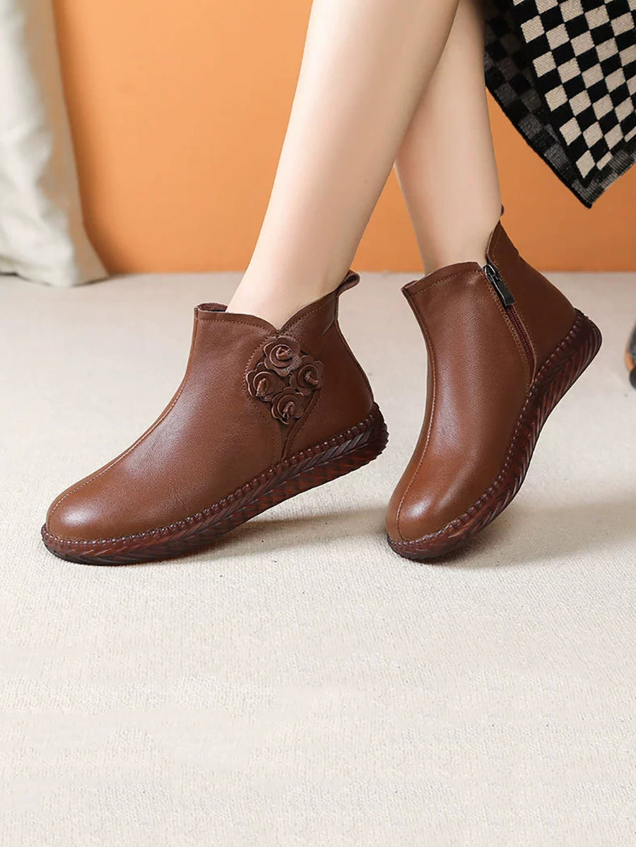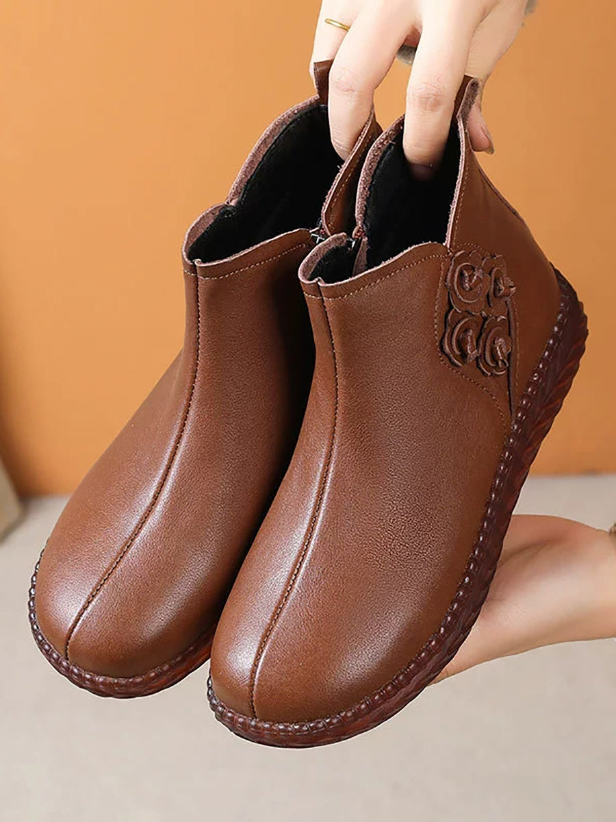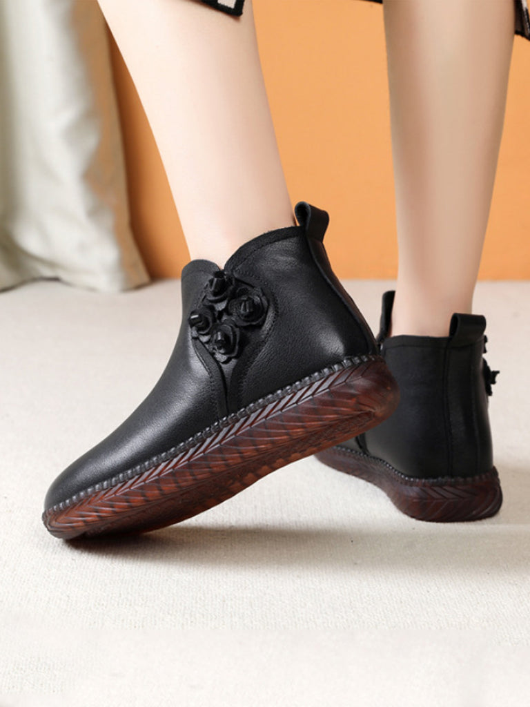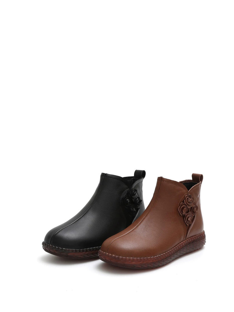 Ženske zimske vintage kožne čizme s cvjetnim uzorkom i flis podstavom